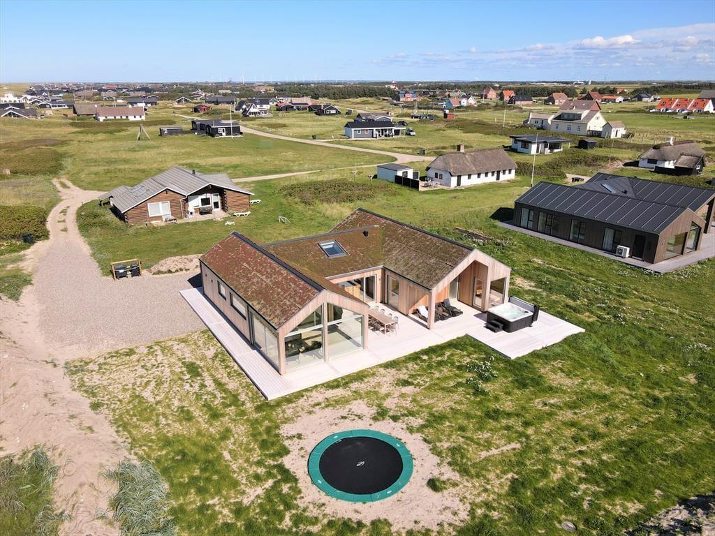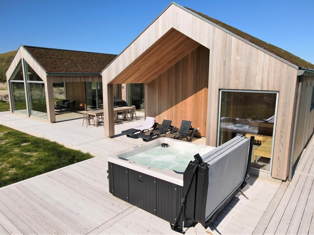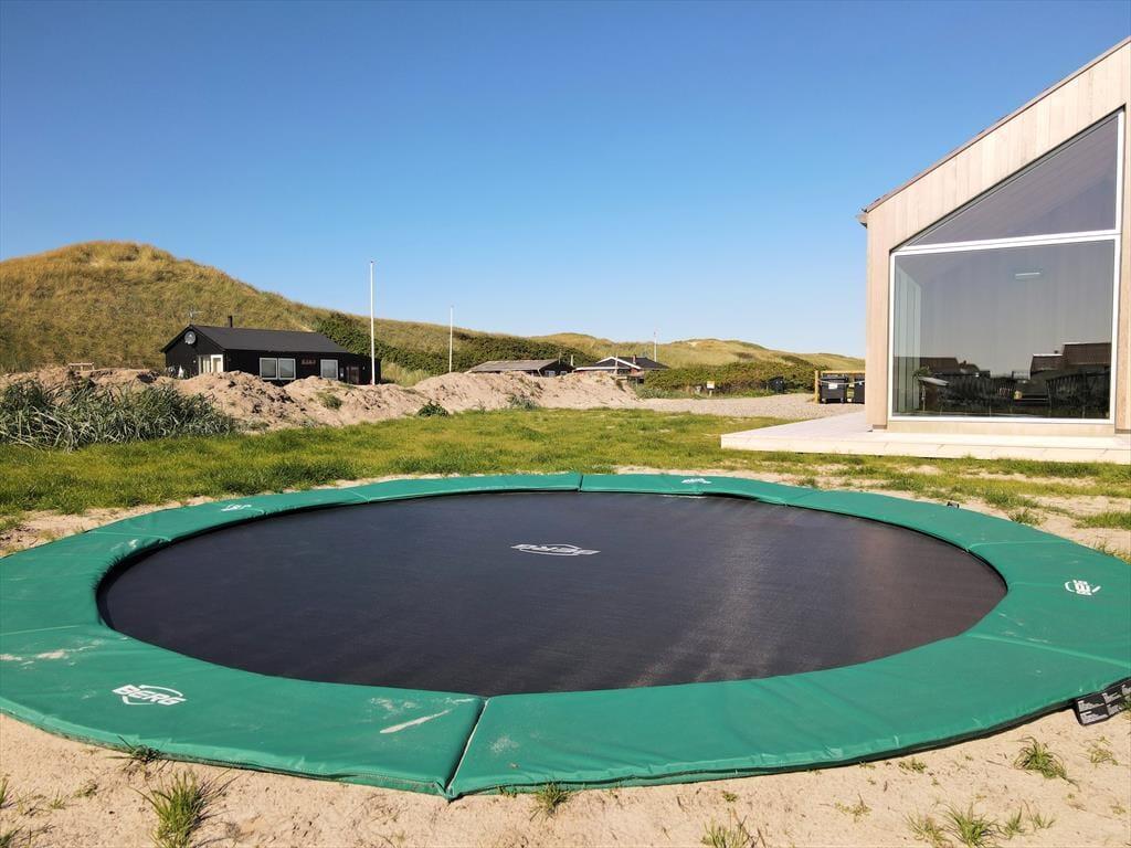 Sommerhuset har et skønt udemiljø, hvor du kan nyde udelivet fra morgen til aften. Den delvist overdækkede terrasse er udstyret med varmelampe, så du kan blive siddende ude, selv når solen går ned og temperaturen falder. Og som prikken over i’et står den udendørs spa klar til dig – perfekt til en stille formiddag med damp i luften eller en sen aften under stjernerne. I haven er der trampolin, som især familiens yngste vil sætte pris på – og det grønne område giver plads til både leg og afslapning. Her er der lagt op til lange måltider i det fri, udeliv med masser af frisk luft og tid til nærvær. Og hvad enten du kommer for at finde ro eller samle familien til aktivitet og fællesskab, får du de bedste forudsætninger netop her.