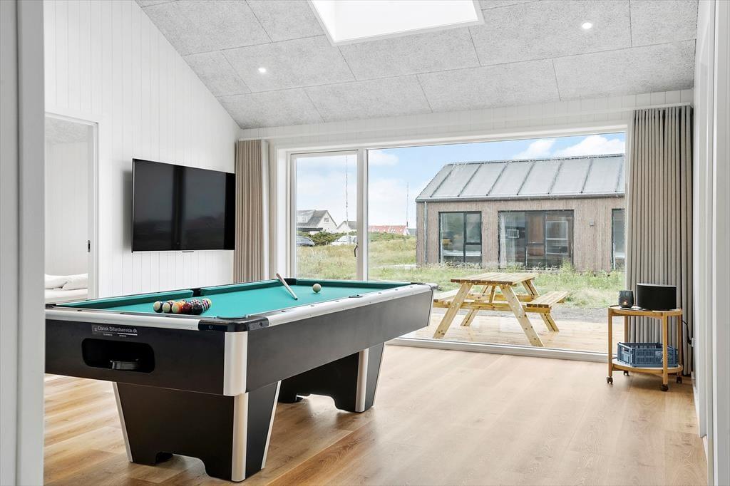 Når du træder indenfor i sommerhuset på Crownvej 14 D, bliver du mødt af en elegant og indbydende indretning med lækre kvalitetsmaterialer og sans for detaljen. Huset har en skøn opholdsafdeling, hvor stue og køkken ligger i åben forbindelse, så alle naturligt kan samles til fælles madlavning og hyggeligt samvær. Når der skal slappes af, byder saunaen på varme og velvære – og det med udsigt til terrassen, så du stadig føler dig tæt på det liv, der leves udenfor. For de mere konkurrencelystne er der mulighed for mange timers sjov i aktivitetsrummet, hvor et poolbord står klar til små turneringer og gode grin. Alt i alt et perfekt sted til ferie med både familie og venner, hvor alle kan finde plads og ro til netop deres ferieform.