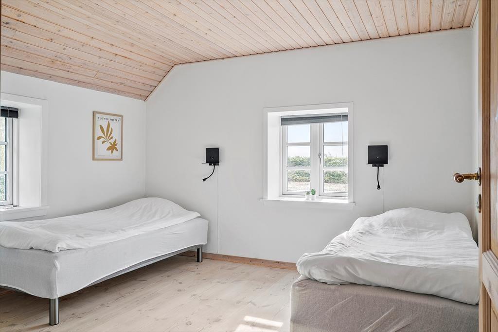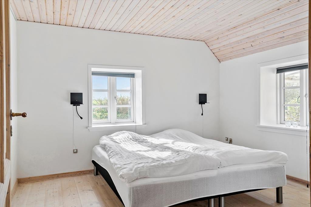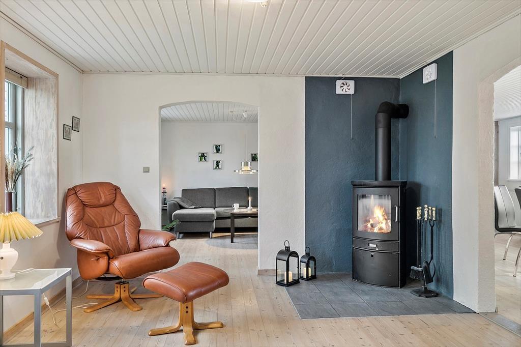 Udelivet omkring ”Simonsbjerg” er præget af fred, frihed og fantastiske kig ud over det vestjyske landskab. Haven byder på masser af plads til både leg, boldspil og afslapning, og de åbne omgivelser gør det nemt at finde en solrig plet med læ – eller måske bare et sted, hvor man kan sidde med en kop kaffe og lade tankerne vandre. Sommerhuset har flere terrasser, så du kan følge solen hele dagen eller finde skygge, hvis du har brug for det. Takket være den landlige beliggenhed er det også oplagt at tage hunden med – her er masser af luft, plads og nye dufte at gå på opdagelse i. Og med brændeovn og hyggelige kroge både ude og inde, er det nemt at skabe den helt særlige feriestemning, hvor tiden næsten står stille.