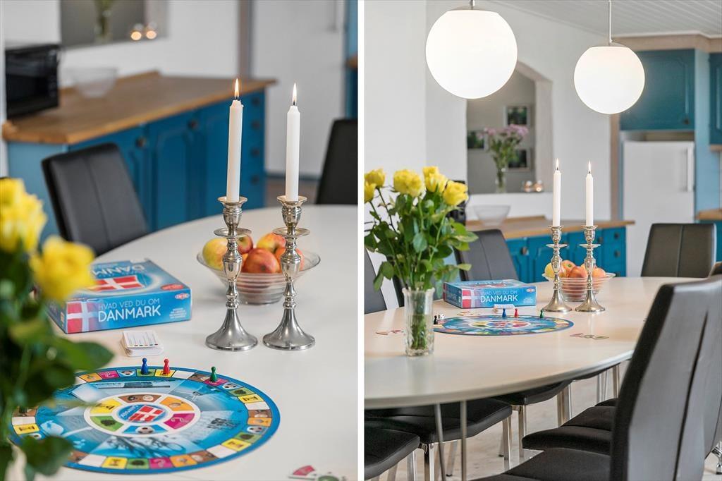 Allerede når du træder ind i ”Simonsbjerg”, fornemmer du den særlige ro og rummelighed, som præger hele huset. Det store opholdsrum med brændeovn, spiseplads og åbent køkken fungerer som et naturligt midtpunkt, hvor du kan samle familien om hyggelige måltider og lange aftener med snak og spil. De varme træmaterialer og store vinduespartier skaber en lys og venlig atmosfære – og lader dig samtidig nyde udsigten over landskabet og vandet fra sofaen. I husets aktivitetsrum kan du udfordre dine rejsefæller til en runde bordtennis, og hvis du rejser med børn, er det en perfekt mulighed for at brænde lidt energi af, mens de voksne tager sig en velfortjent pause. Der er kælet for detaljerne og tænkt på både fællesskab og privatliv, så alle kan finde deres favoritplads – uanset årstid.