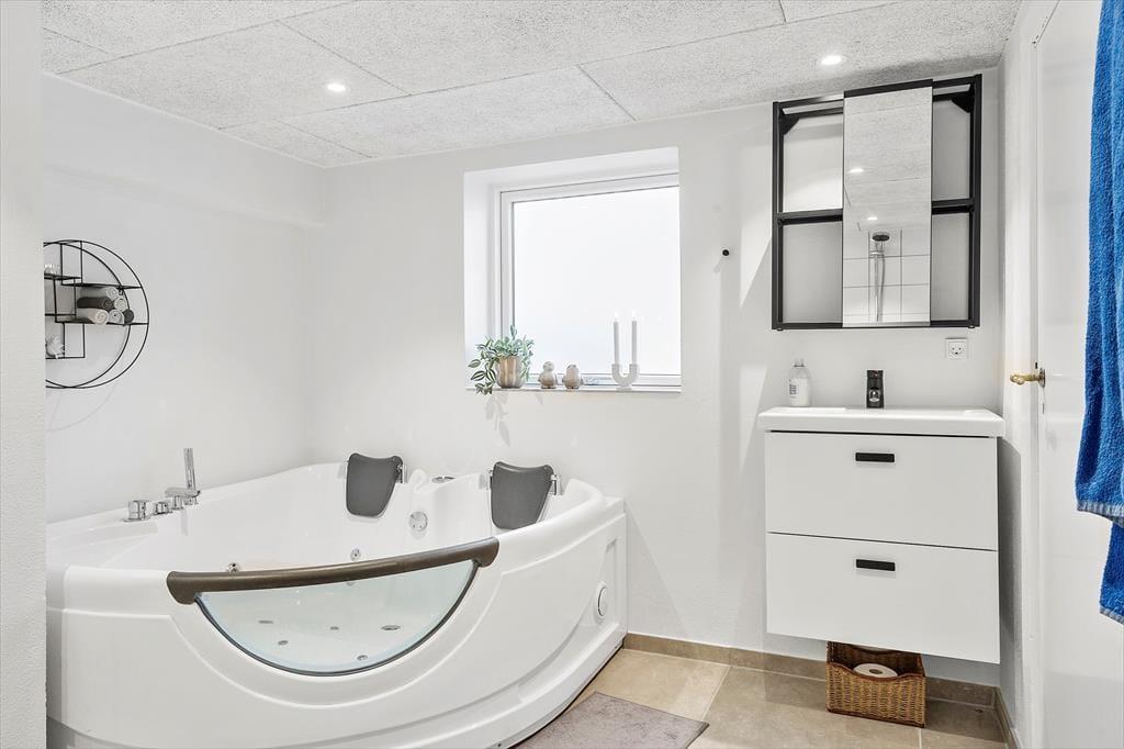 På Strandvejen 53 i Vrist kan du holde ferie i ægte sommerhusstil med masser af hygge, afslapning og aktiviteter. Sommerhuset kombinerer den klassiske charme med moderne faciliteter som spa og aktivitetsrum – og så ligger det kun få minutters gang fra Vesterhavet. Her er det nemt at koble af og lade roen indfinde sig, både for store og små.
