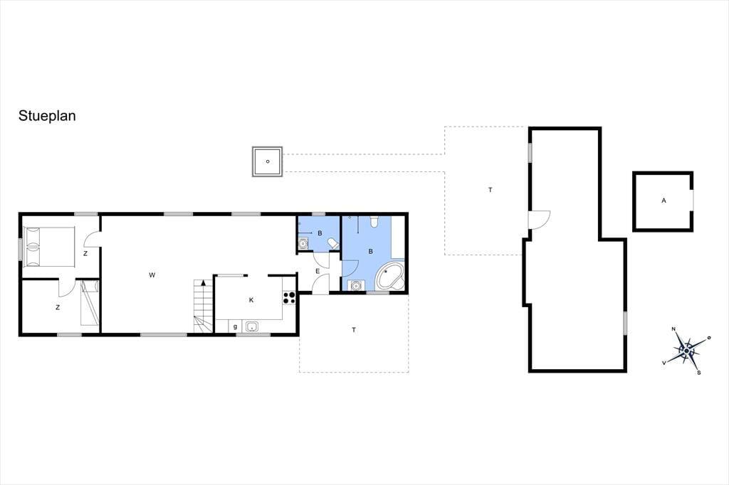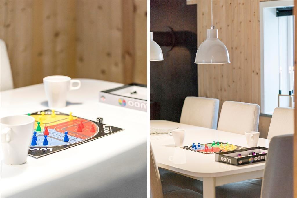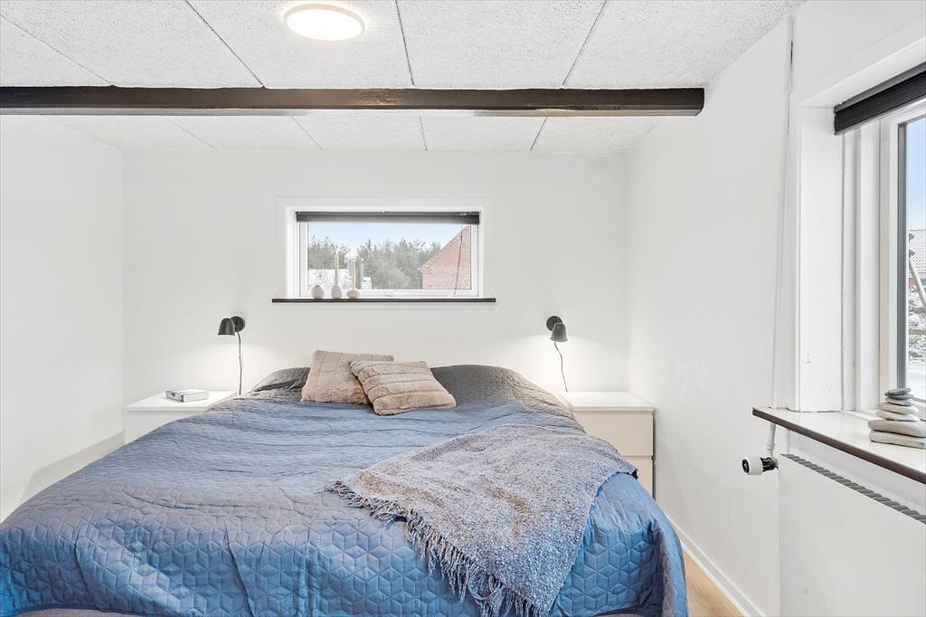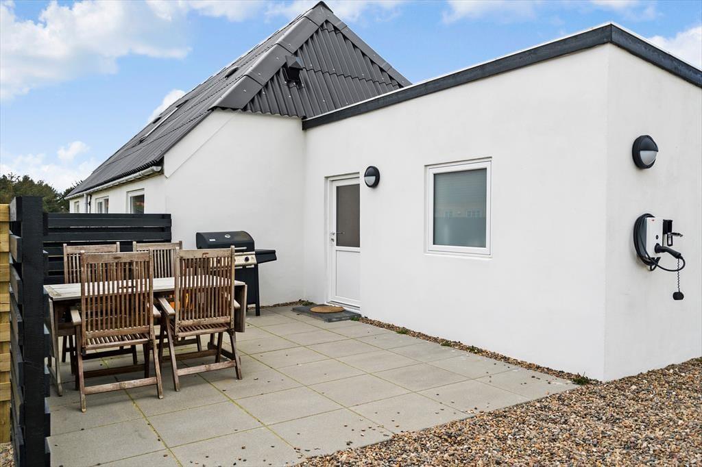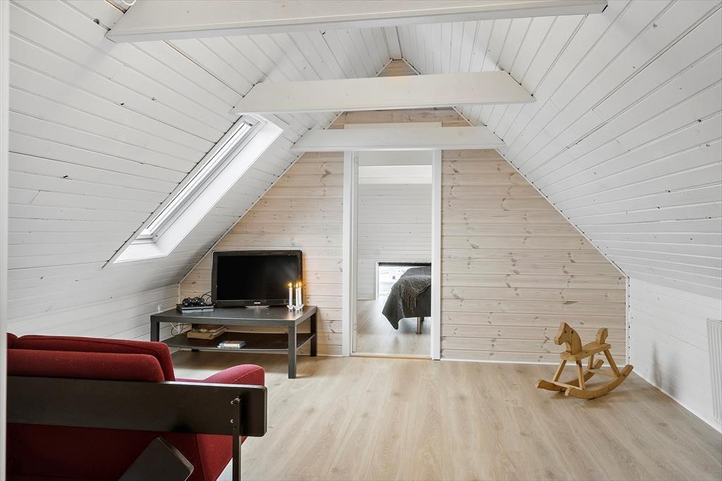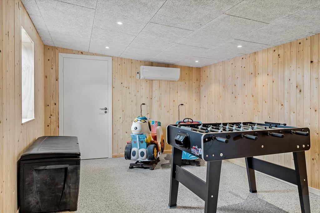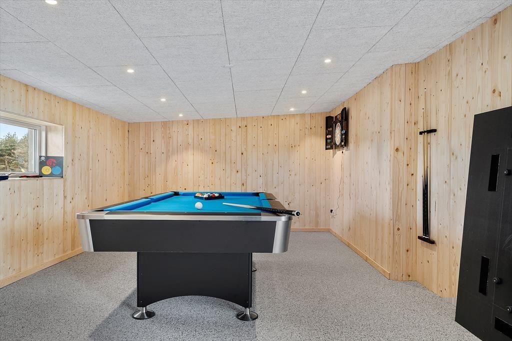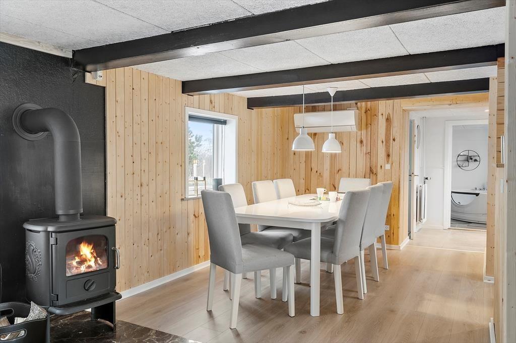 Når du træder ind i sommerhuset, bliver du mødt af varme materialer og en stemning, der indbyder til nærvær og ferie i dit eget tempo. I stuen står brændeovnen klar til at sprede varme og hygge, når vinden suser udenfor – og det er det oplagte sted at samles efter en lang dag i naturen. Køkken og stue ligger i åben forbindelse, så I kan være sammen om både madlavning og gode samtaler. Derudover byder huset på et indendørs spabad, hvor du kan slappe af i det varme vand og lade skuldrene sænke sig. Som prikken over i’et er der et separat aktivitetsrum i udhuset med både pool, bordtennis og dart – perfekt til venskabelige turneringer og sjov for alle aldre.