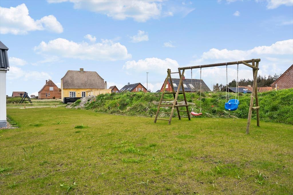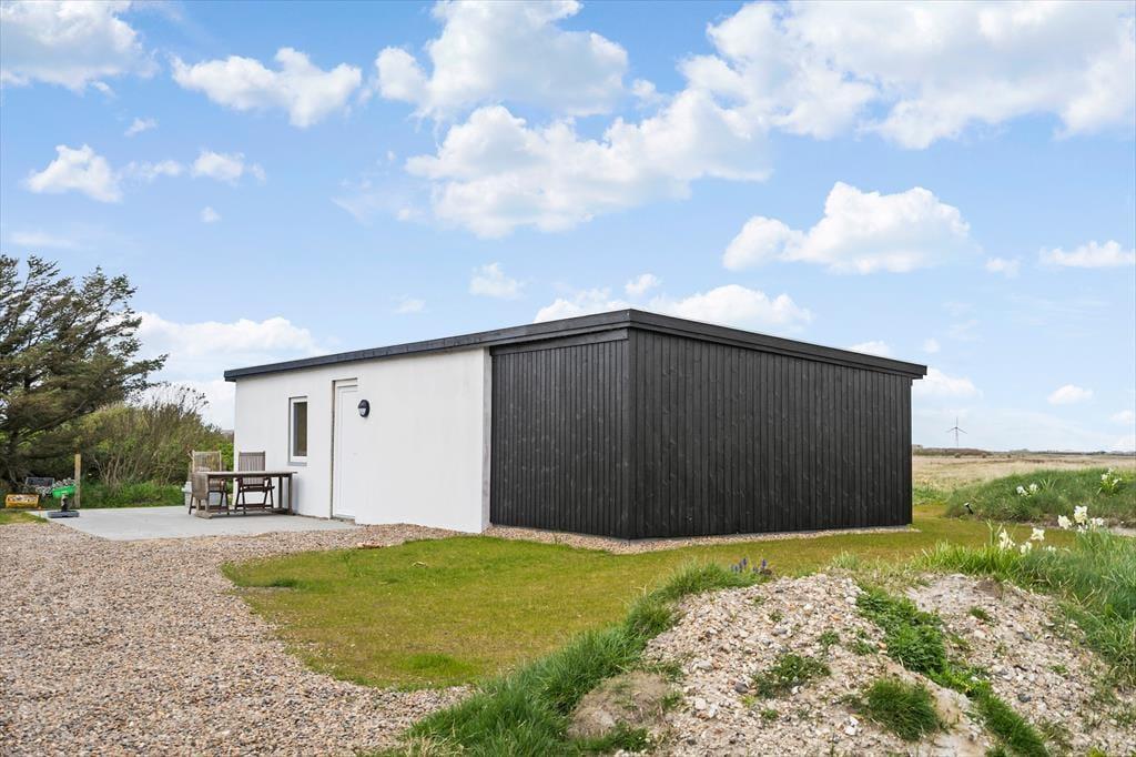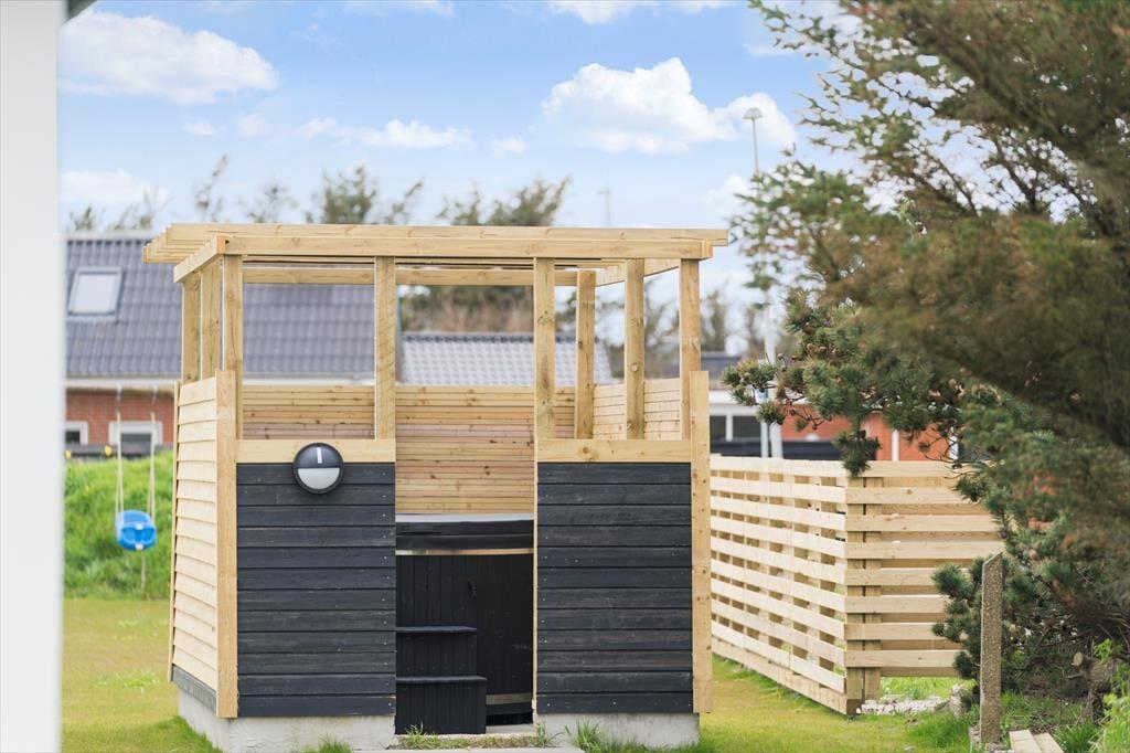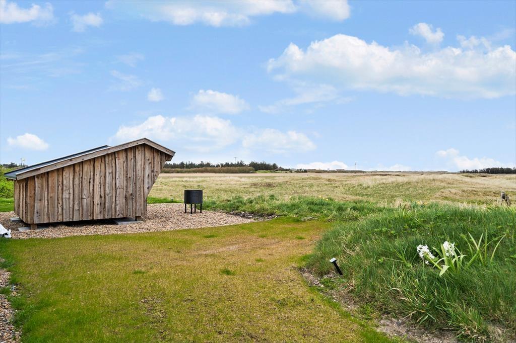 Sommerhuset har en dejlig, privat have med flere unikke oplevelser. I det ene hjørne står et vildmarksbad, der indbyder til ren afslapning under åben himmel – måske endda med udsigt til stjernerne. Haven byder også på et hyggeligt shelter og et bålsted, som lægger op til lange aftener med snobrød og historiefortælling i flammernes skær. Du kan læne dig tilbage i en havestol, lytte til fuglene og nyde den friske luft fra Vesterhavet, mens børnene leger i det grønne. Alt sammen i private og trygge rammer, hvor ferieglæden får lov til at fylde.