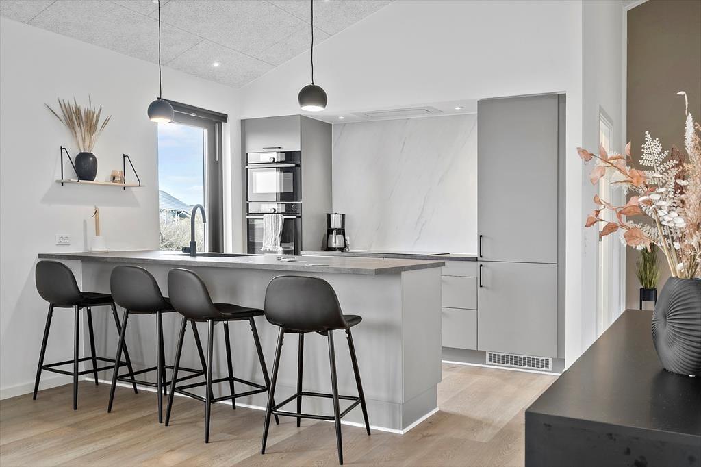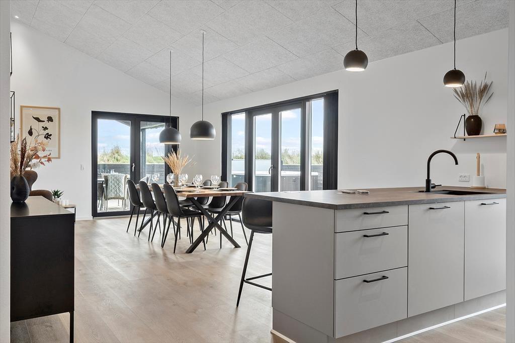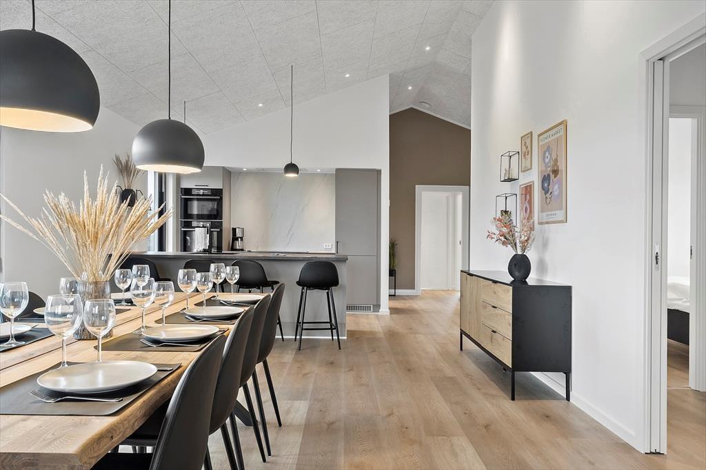 Allerede ved første skridt ind i huset fornemmer du den høje standard og de gennemtænkte detaljer. Det store opholdsrum er holdt i lyse farver og rene linjer, og indretningen emmer af luksus og feriestemning. Køkken og stue ligger i åben forbindelse, hvilket gør det nemt at samles om madlavning, samtaler og hyggelige måltider. Når det er tid til lidt sjov og konkurrence, kan I trække jer tilbage til husets aktivitetsrum, hvor både poolbord og bordtennis står klar til venskabelige dueller. Her er plads til fællesskab, men også mulighed for at finde ro – og uanset årstid er rammerne sat for kvalitetstid med dem, du holder af.