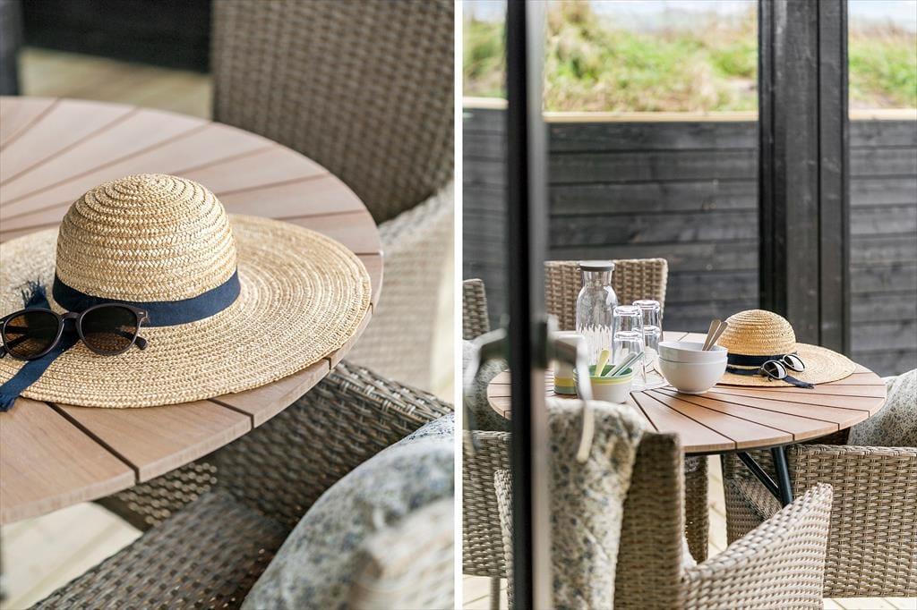 Det udendørs område er mindst lige så indbydende som huset selv. Den delvist overdækkede terrasse skaber den perfekte ramme for udeliv hele dagen – her kan du slappe af i det varme udendørs spa, tage et brusebad i det fri eller nyde morgenkaffen i solen. Børnene vil elske at tumle rundt i haven, hvor både trampolin og gyngestativ venter – og hunden kan trygt følge med og snuse til det hele. Det naturskønne område omkring Fourmivej gør det oplagt at trække vejret dybt og nyde roen. Her kan du finde en lun krog, læne dig tilbage og bare mærke, hvordan ferien for alvor begynder.