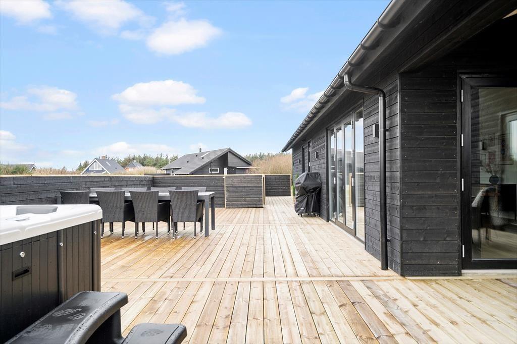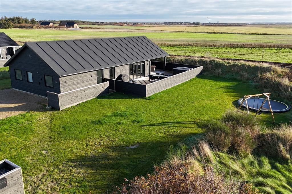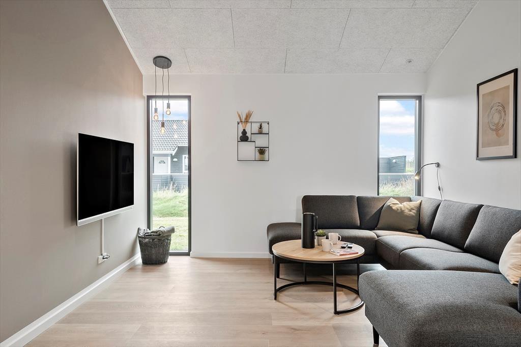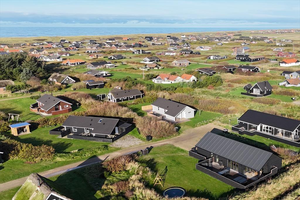 På Fourmivej 6 i Vrist finder du dette moderne og stilfulde sommerhus, hvor alt er gjort klar til en afslappende og oplevelsesrig ferie. Huset kombinerer lækre materialer, komfort og plads med adgang til både wellness og sjove aktiviteter. Her bor du i naturskønne omgivelser med kun få minutter til stranden – og samtidig i et hus, der rummer alt, hvad både børn, voksne og familiens hund har brug for på ferien.