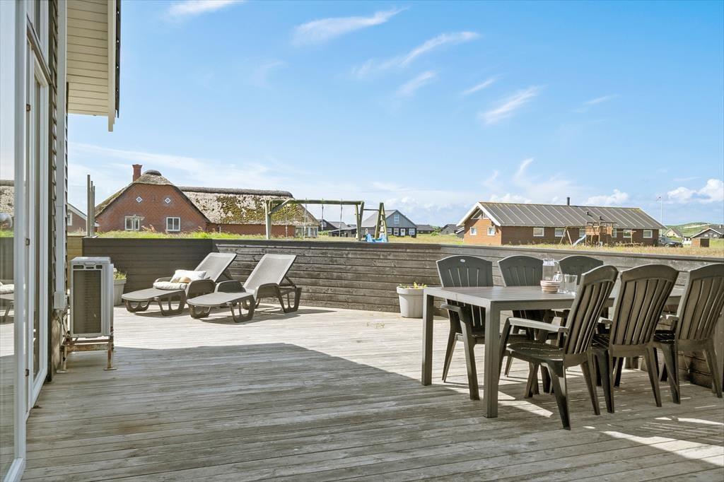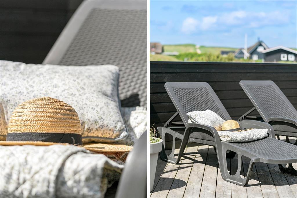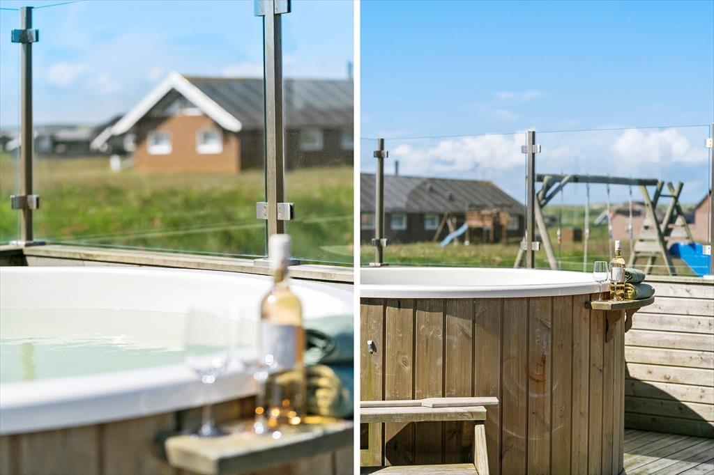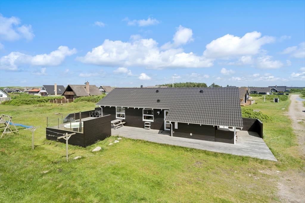 Sommerhusets lækre terrassemiljø kan hurtigt blive din foretrukne opholdsplads, når solen står højt på himlen, for det er intet mindre end herligt at sidde her med udsigt til klitter og drivende skyer. Og selv når mørket falder på, kan du blive siddende – for eksempel er det en helt særlig oplevelse at sidde her i vildmarksbadet, mens roen falder over sommerhusområdet, og stjernerne begynder at titte frem i det høje. På naturgrunden er der legestativ med gynger og rutsjebane, og der er god plads til at løbe og lege. Så mens børnene underholder sig selv, kan de voksne måske lige nå en ekstra kop kaffe, inden det er tid til at udforske Vrist og omegn.