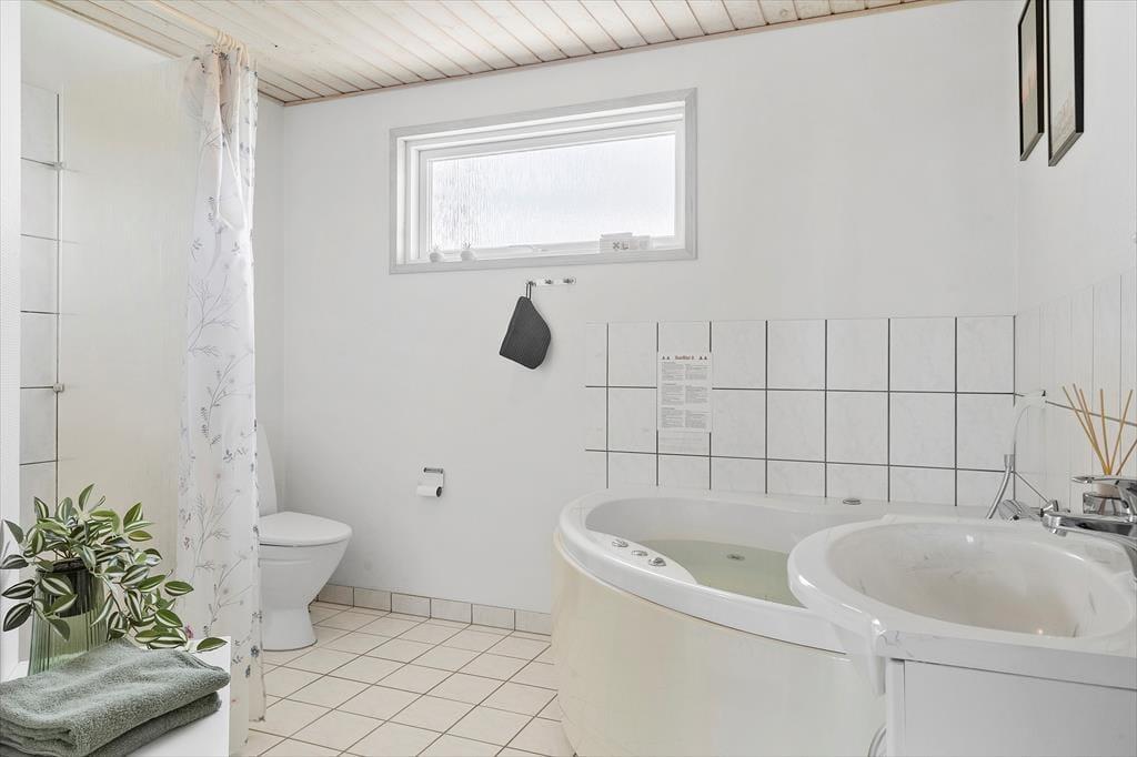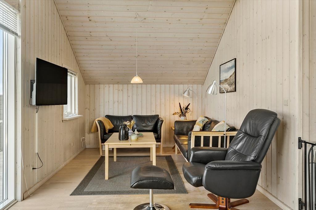 Når du holder ferie i et sommerhus, der har spa og sauna inden døre – plus et vildmarksbad lige udenfor på terrassen – kan du fylde dagene med al den wellness og afslapning, du drømmer om. Men der er også meget andet at lave i huset: Spisebordet kan omdannes til bordtennisbord, hvis du vil udfordre familien i det sjove boldspil, og der er også mulighed for at dyste i dart såvel som at game på spillekonsollen på hemsen. Om natten fungerer den hyggelige hems som et godt supplement til husets tre soveværelser, mens den flotte stue med integreret køkken formentlig er der, hvor de fleste af dagens vågne timer kommer til at udspille sig.