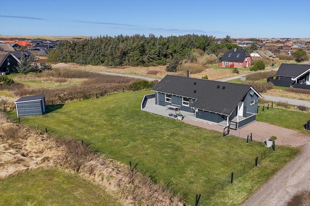 Med kun 300 meter til stranden er Vesterhavet aldrig langt væk. En morgengåtur i vandkanten, en frisk dukkert eller en solrig eftermiddag i sandet – alt ligger lige for dine fødder. Fourmivej er en stille og lukket vej, som gør området trygt og ideelt til børnefamilier og dem, der ønsker ro. Det lokale trinbræt i Vrist gør det nemt at hoppe på toget og tage på udflugt – måske til Lemvig med havnestemning og caféer eller til Thyborøn, hvor Kystcentret og JyllandsAkvariet byder på spændende oplevelser for hele familien. Du kan også besøge Bovbjerg Fyr og tage en tur ud i det åbne landskab eller gå en stille runde omkring Ferring Sø. Alt i alt får du med dette sommerhus et trygt og charmerende udgangspunkt for ferien – tæt på både natur og oplevelser.