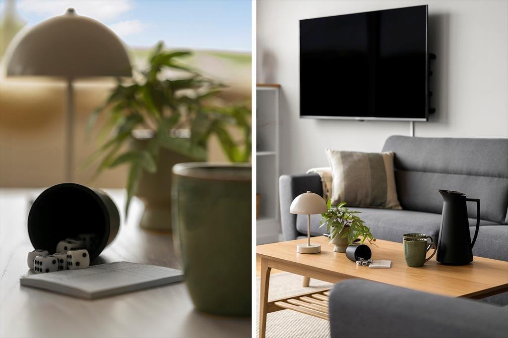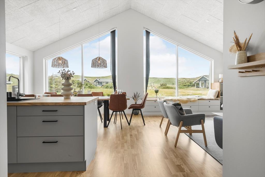 Når du træder ind i sommerhuset på Gloryvej 14 A, møder du et lyst og velindrettet hjem, hvor alt er placeret med omtanke. Indretningen er moderne og stilfuld, uden at gå på kompromis med hyggen – og der er masser af plads til både nærvær og ro. Køkken og stue ligger i åben forbindelse og udgør det naturlige samlingspunkt, hvor ferien leves med god mad, brætspil og afslappende stunder i sofaen. Uanset årstid er det skønt at kunne tænde op i brændeovnen og mærke varmen brede sig i rummet. Sommerhuset rummer også en hems, der hurtigt bliver børnenes favoritsted – en hyggelig lille oase til leg og læsning. Alt i alt får du her en feriebolig, hvor det er nemt at lande og føle sig hjemme.