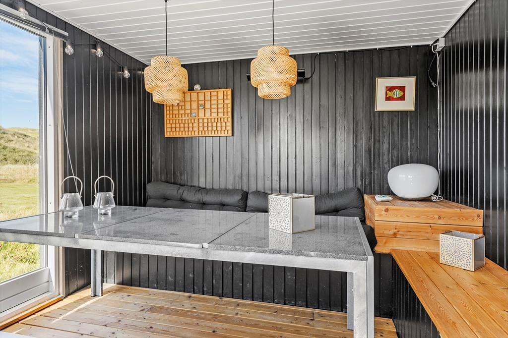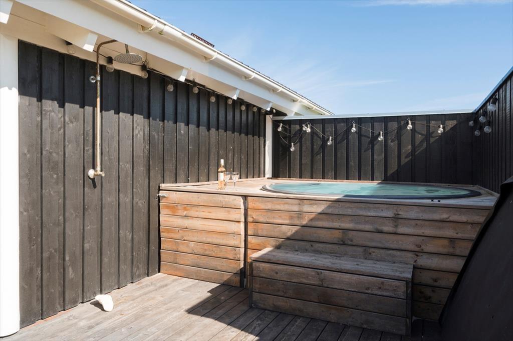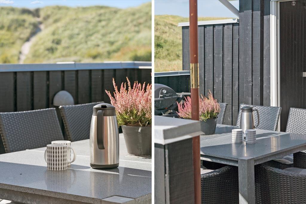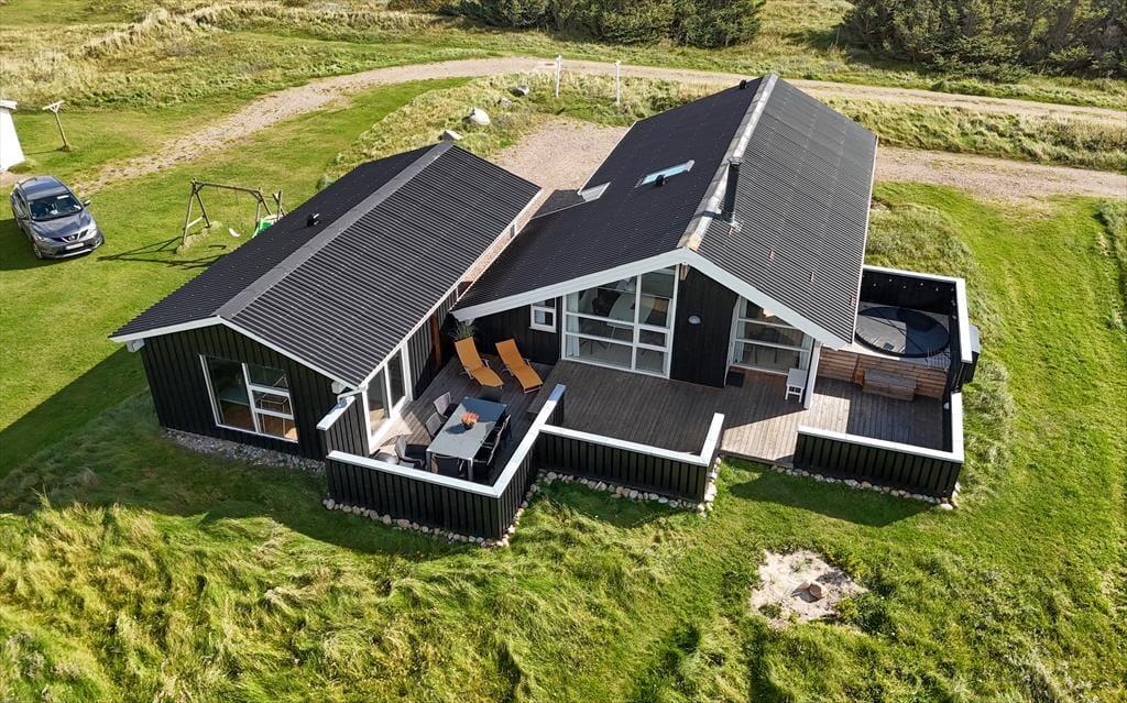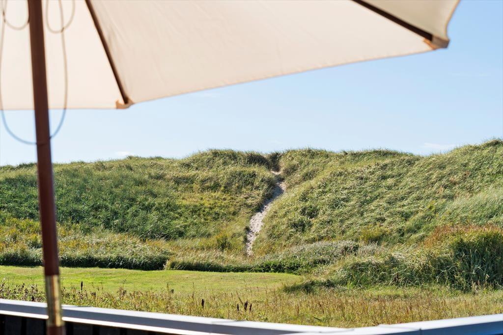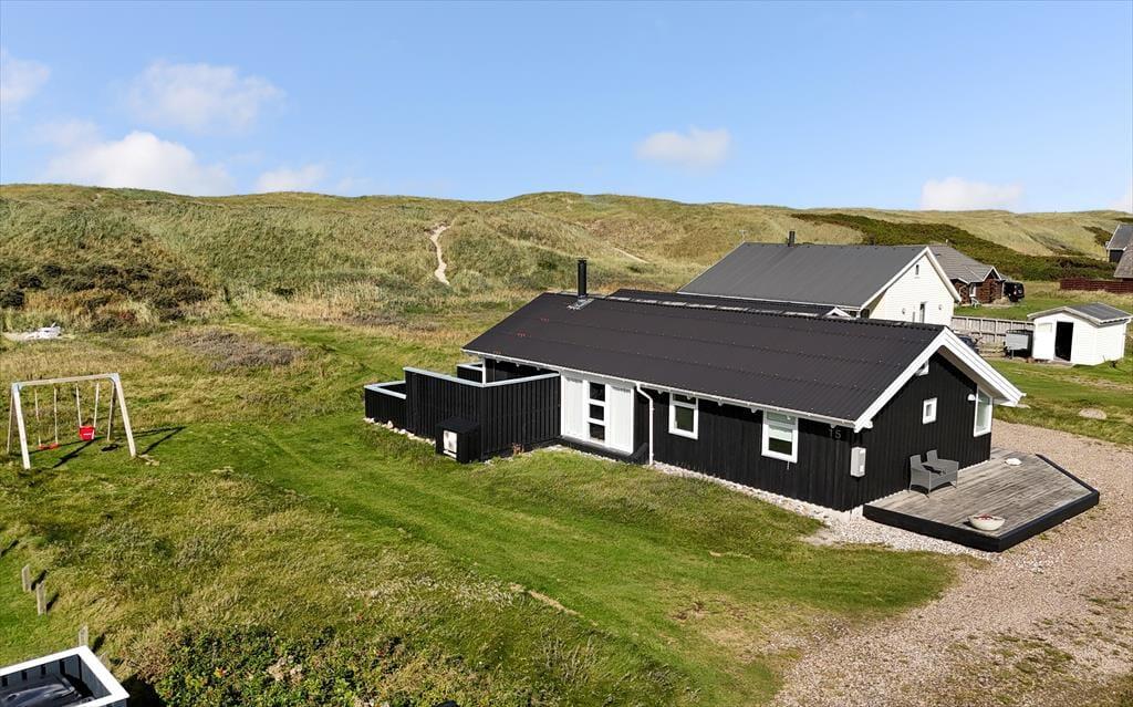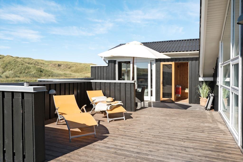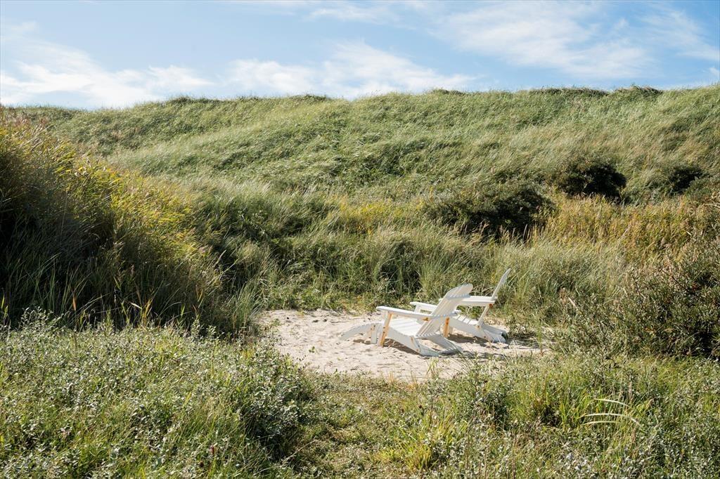 Sommerhusets beliggenhed i første klitrække giver dig nem adgang til strandlivet, og du kan hurtigt tage turen over klitterne for at nyde en forfriskende dukkert i Vesterhavet eller en gåtur langs vandkanten. Den lille private strandplet er en særlig perle, hvor du kan lægge håndklædet og nyde roen. På terrassen er der god plads til at nyde lange måltider under åben himmel, og hvis du har en god bog med, er det oplagt at finde et roligt hjørne og lade tankerne flyde frit, mens du lytter til naturens lyde omkring dig. På terrassen er der også et hyggeligt hjørne med udebruser og udespa, hvor du kan nyde den fantastisk udsigt til klitterne.