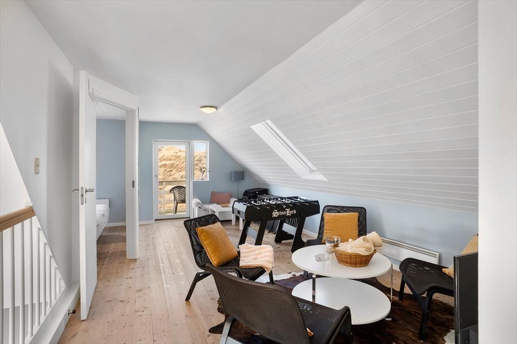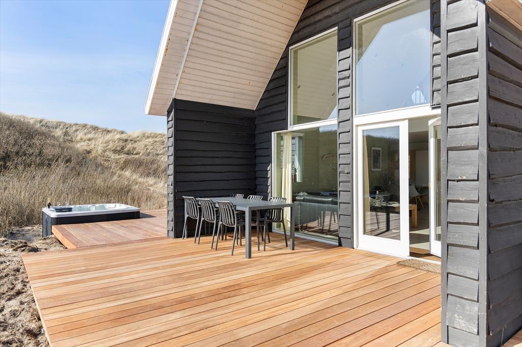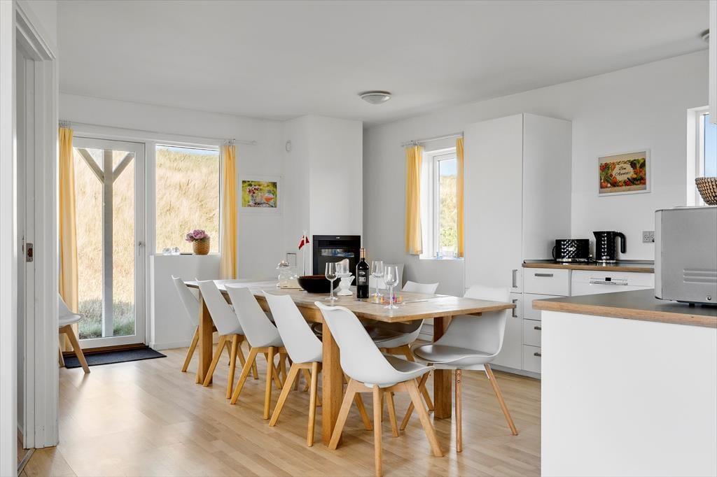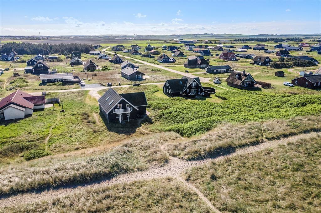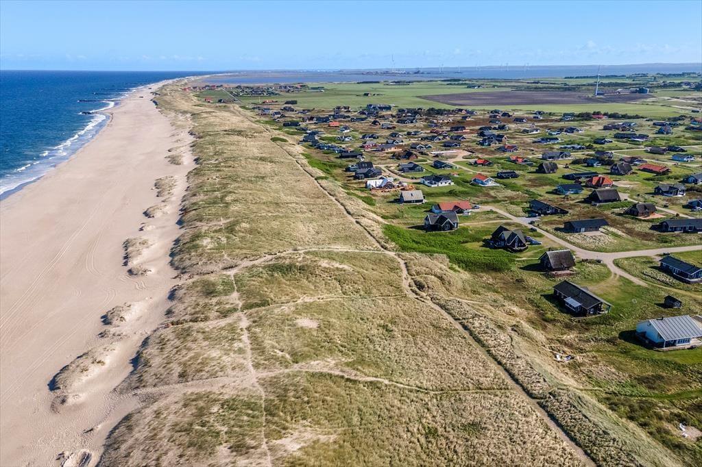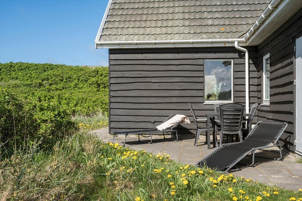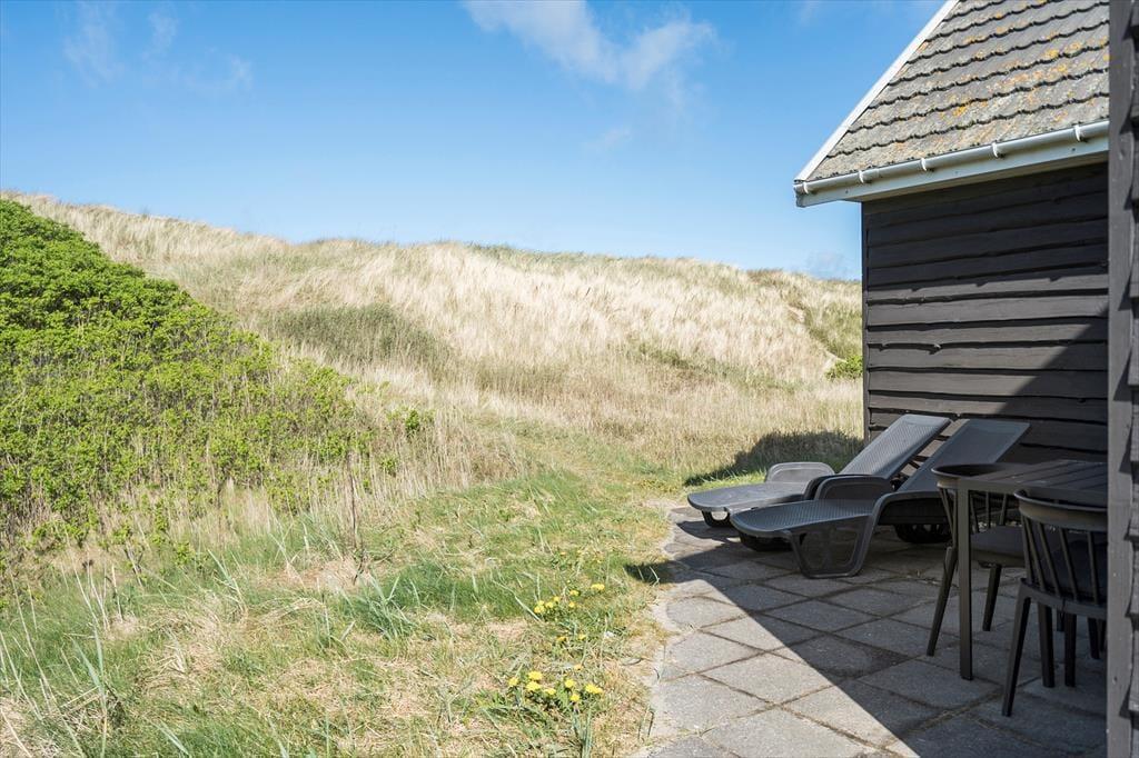 Sommerhusets beliggenhed i første klitrække gør det til en sand perle for dig, der elsker at være i naturen. Fra terrassen er der en lille sti, der fører dig direkte over klitterne og ned til stranden – så du kan begynde morgenen med en gåtur i vandkanten eller slutte dagen med solnedgang over Vesterhavet. Når solen skinner, og vinden er mild, er terrassen det perfekte sted at læne sig tilbage med en bog, et glas vin eller måske et godt måltid under åben himmel, samtidig med at du har havets brusen i baggrunden – som en konstant påmindelse om, at du er på ferie i et af Danmarks smukkeste kystområder.