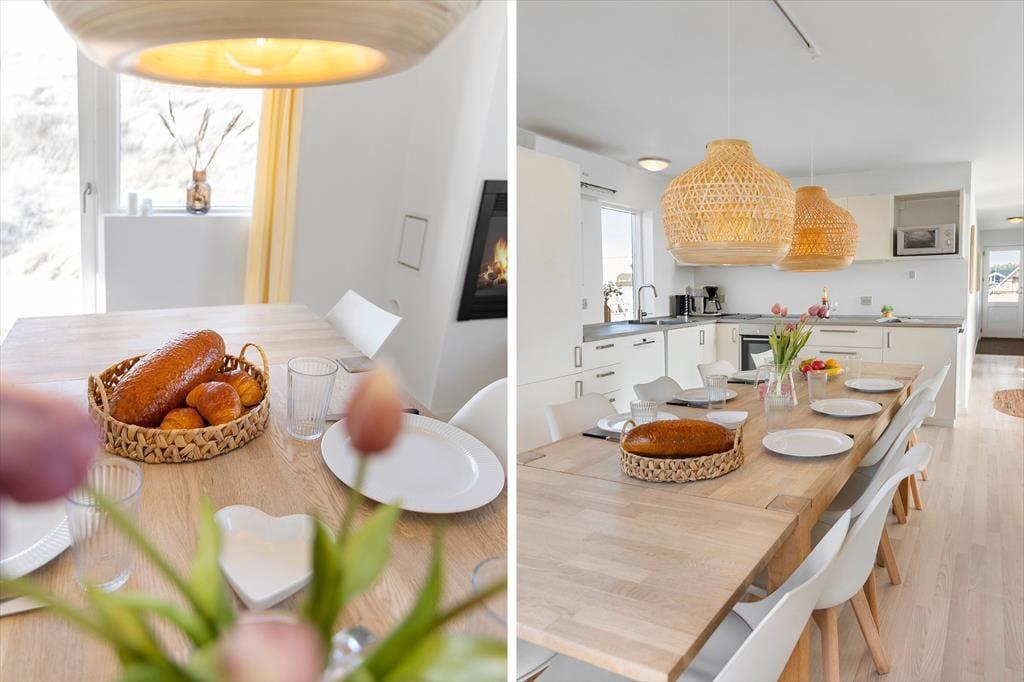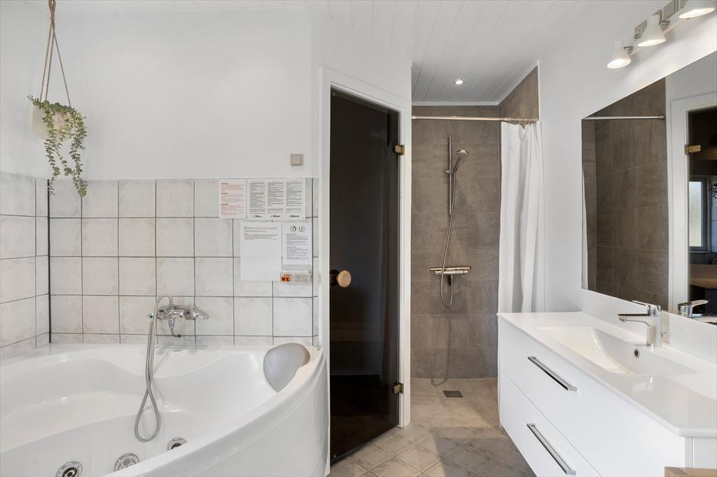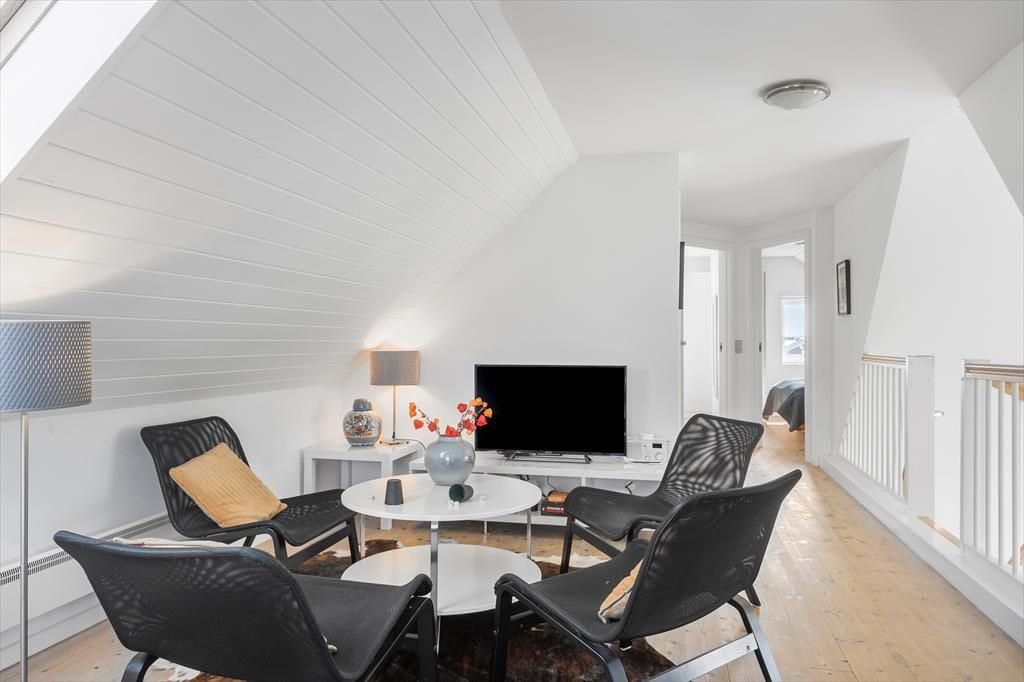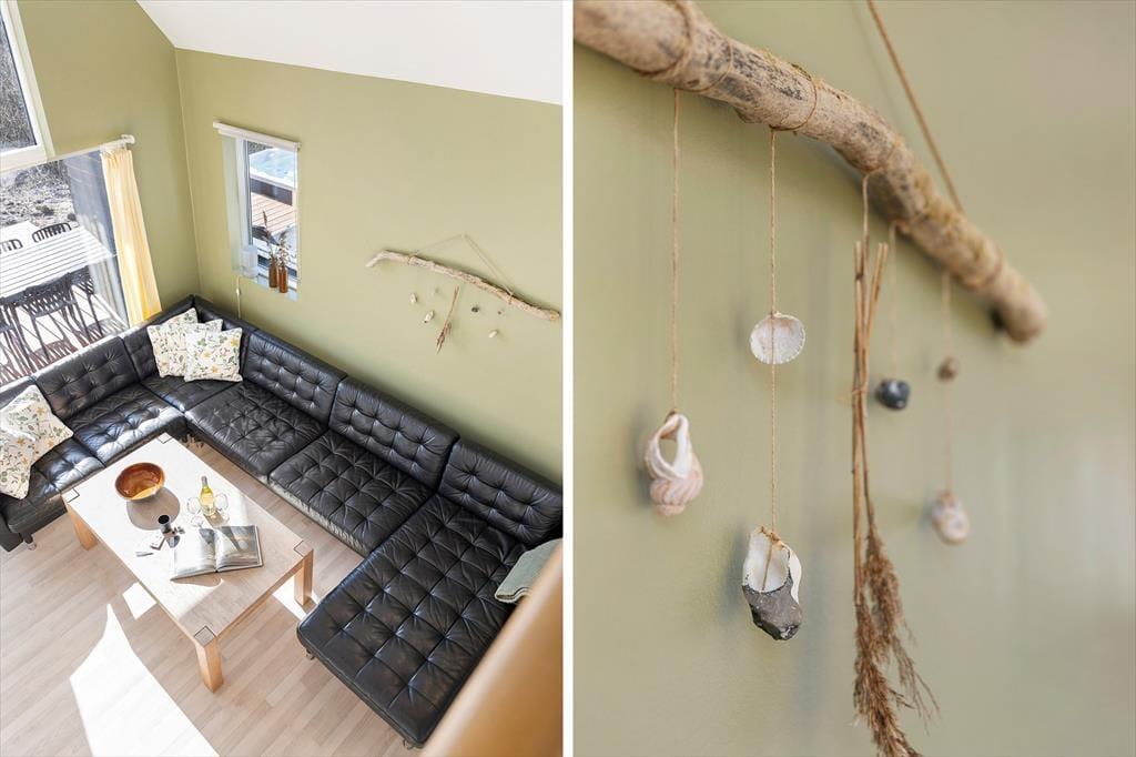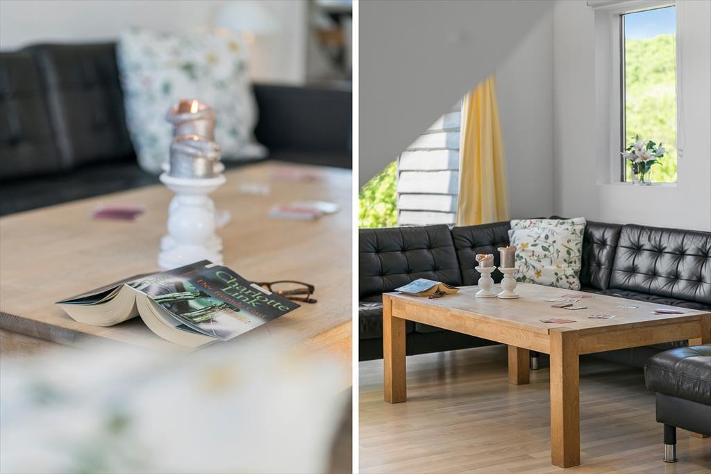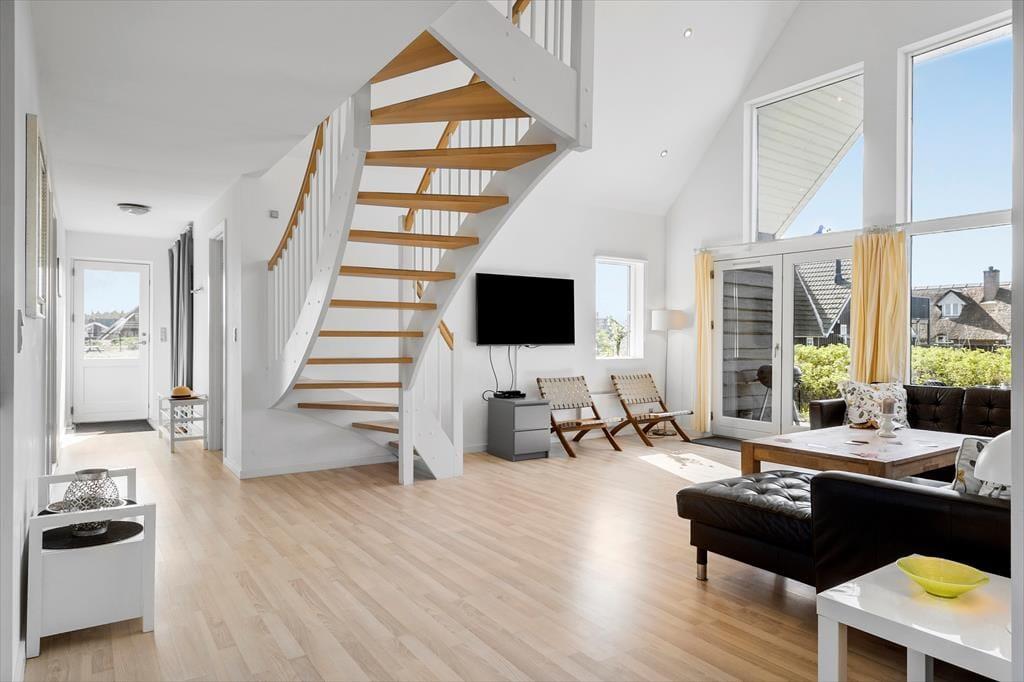 Indenfor byder sommerhuset på en lys og hyggelig atmosfære, hvor det er let at føle sig hjemme fra første øjeblik. Indretningen er venlig og imødekommende med god plads til hele familien – eller måske to familier, der rejser sammen. Når dagens oplevelser er overstået, kan du finde ro i stuens bløde sofahjørne, hvor lyset strømmer ind fra vinduerne. Efter en frisk tur til stranden kan det være ekstra skønt at synke ned i det varme vand i spabadet – eller finde ro og varme i saunaens afslappende rum. Det her er et sommerhus, hvor afslapning ikke bare er en mulighed – det er en del af hele oplevelsen.