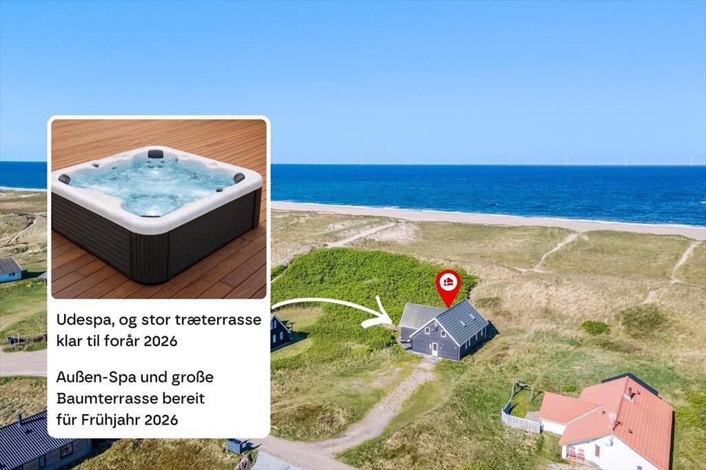 Drømmer du om at bo helt tæt på Vesterhavet – i et sommerhus med masser af plads og mulighed for velvære og afslapning? Så er Fourmivej 76 i Vrist måske lige det sted, du har ventet på. Her kan du mærke havets nærhed hver eneste dag og lade batterierne op i saunaen eller den indendørs spa, når du ikke lige sidder på terrassen med solen i ansigtet.