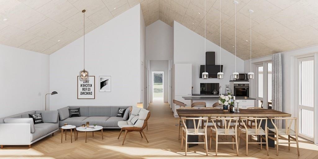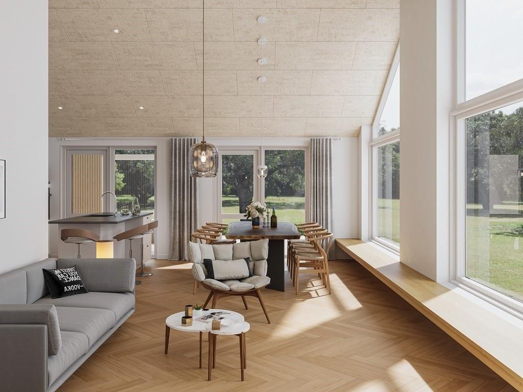 Det nye sommerhus bliver lyst og indbydende, og indretningen er gennemtænkt med henblik på at give jer de bedste rammer for ferien. Her er plads til otte personer, og der bliver to badeværelser, så I nemt kan være flere familier afsted sammen. En sauna bliver også en del af husets faciliteter – perfekt til afslapning efter en lang dag ved havet eller på opdagelse i det vestjyske landskab. Hjertet af huset bliver opholdsafdelingen med stue og køkken i åben forbindelse, hvor feriedagene kan nydes med spil, madlavning og hyggesnak. Og når der er brug for lidt ekstra underholdning, kan I trække jer tilbage til aktivitetsrummet, hvor der bliver mulighed for både airhockey og bordfodbold – et sikkert hit for både børn og voksne.