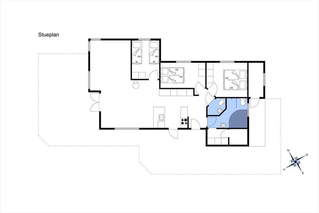 Når du træder ind ad døren til sommerhuset på Fourmivej 64, bliver du mødt af en varm og afslappet atmosfære, hvor feriestemningen hurtigt indfinder sig. Det lyse opholdsrum med store vinduespartier inviterer det naturlige lys indenfor og giver dig en helt særlig udsigt til klitterne – lige fra sofaen. Her er køkken, spiseplads og stue samlet i ét stort, åbent rum, der gør det nemt at være sammen, selv når nogle laver mad, mens andre læner sig tilbage med en bog eller et glas vin fra det praktiske vinkøleskab. Efter en frisk tur til stranden kan du forkæle dig selv med et varmt spabad og en tur i saunaen – det perfekte sted at slappe af og nyde roen, der sænker sig over området, når solen går ned bag klitterne.