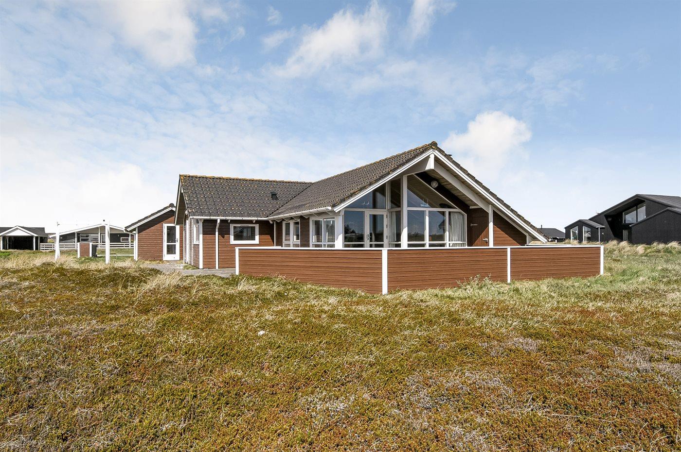 Ferieboligen er beliggende på en 1229 m² stor klitgrund. Der er 200 m til havet. Nærmeste forretning er beliggende i en afstand af 1000 m. Til ferieboligen hører åbent terrasseareal. Desuden er der overdækket terrasse. Gynge. Sandkasse. Der ligger en legeplads i en afstand af 200 m. Der er carport til rådighed. Parkering ved ferieboligen.