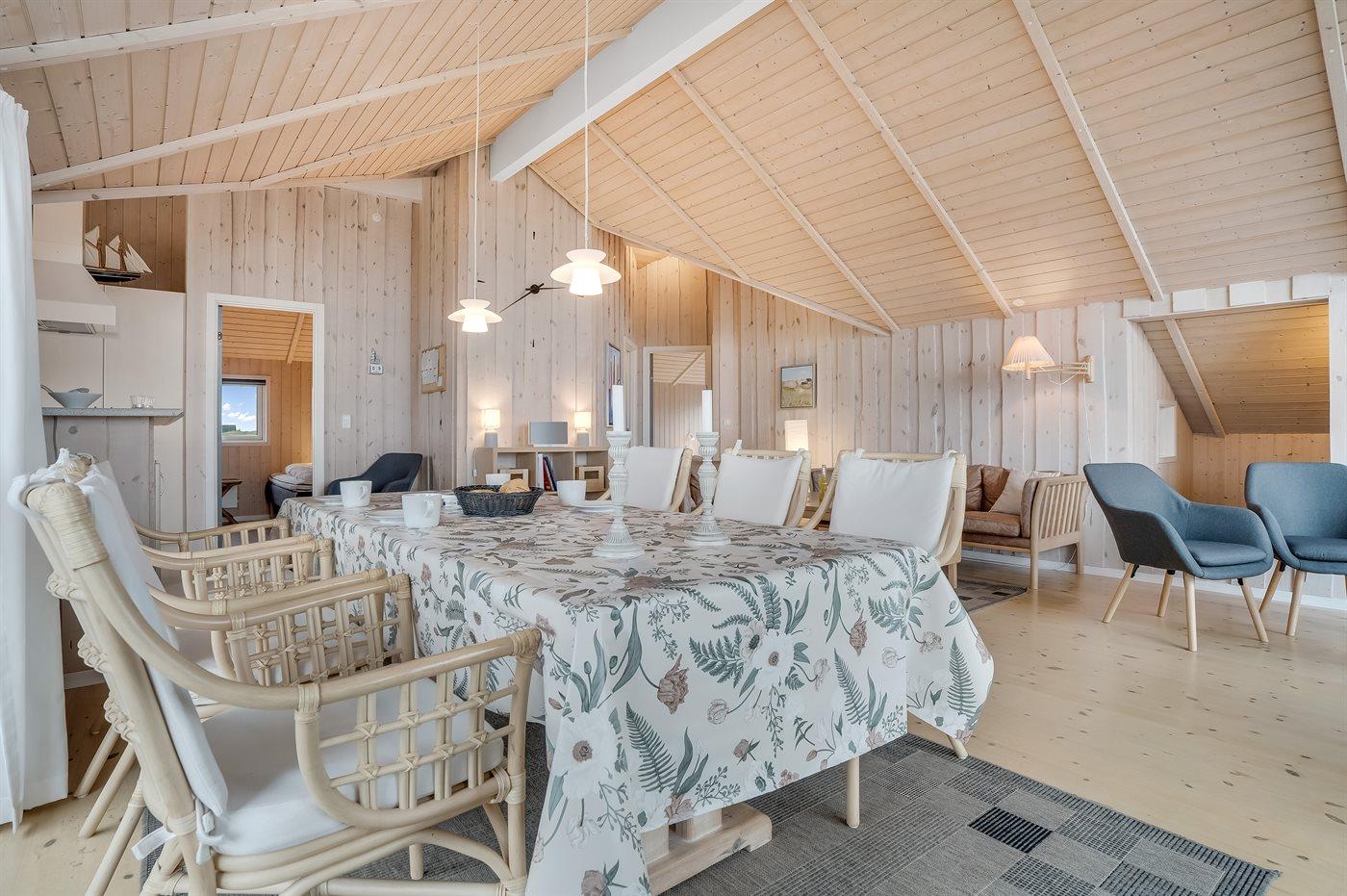 Dette dejlige sommerhus ligger i et naturskønt område kun få minutters gang fra den smukke kyst ved Vesterhavet. Indretningen og størrelsen gør det velegnet til en ferie med familien, men også til flere vennepar, som ønsker at holde en fælles ferie i dejlige omgivelser.