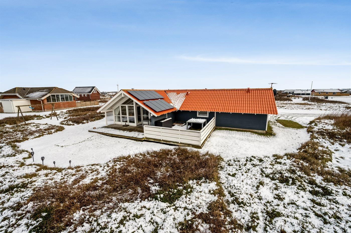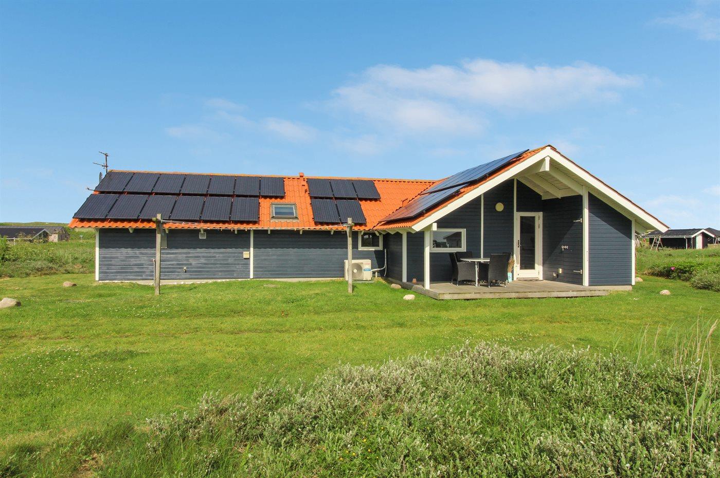Dette dejlige sommerhus, hvor der udelukkende anvendes grøn energi, er bygget 1992 og løbende renoveret, senest i 2012, ligger på en stor naturgrund, kun 150 m fra stranden. Til huset hører såvel åbent som overdækket terrasseareal med havemøbler. Indvendigt er der nye trægulve. Hvidmalede trævægge og lofter. Stort, lækkert sparum med 4- pers. spa, bruseniche og direkte adgang til husets sauna. Skønt badeværelse med opvarmet flisegulv og bruseniche. Gæstetoilet med gulvvarme. Det veludstyrede køkken er kombineret med spise-/opholdsstuen og indeholder bl.a. mikrobølgeovn, opvaskemaskine og fryser. Opholdsstuen er indrettet med brændeovn, DVD-afspiller, TV med parabol (digital) og stereoanlæg med CD-afspiller. Husets sovepladser fordeler sig på 4 rummelige værelser, 3 med dobbeltseng og 1 med 2 køjesenge. Til de mindste feriegæster er der barneseng, høj barnestol og sandkasse. Desuden gratis, trådløs internetforbindelse (computer skal medbringes), vaskemaskine og tørretumbler til rådighed. Et skønt sommerhus uanset årstiden.
