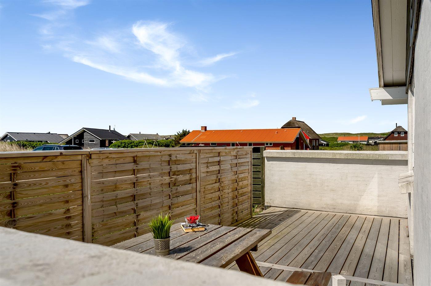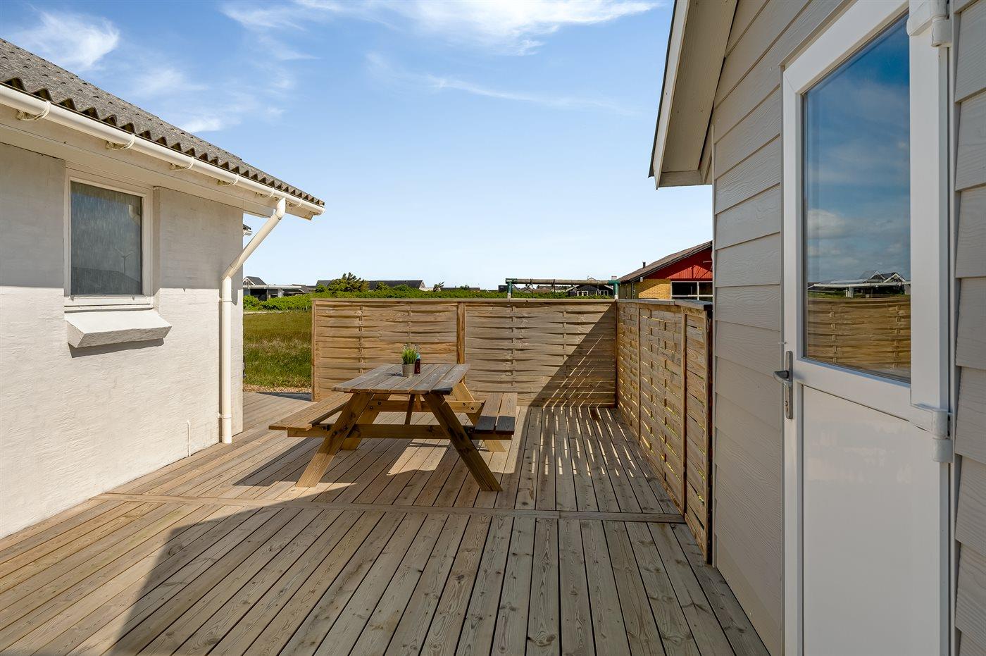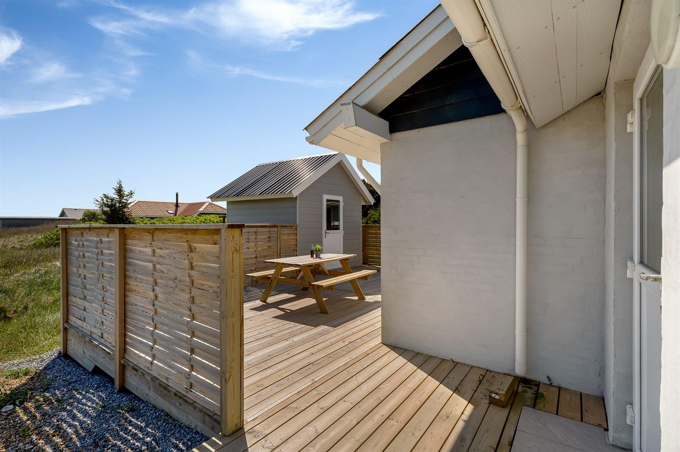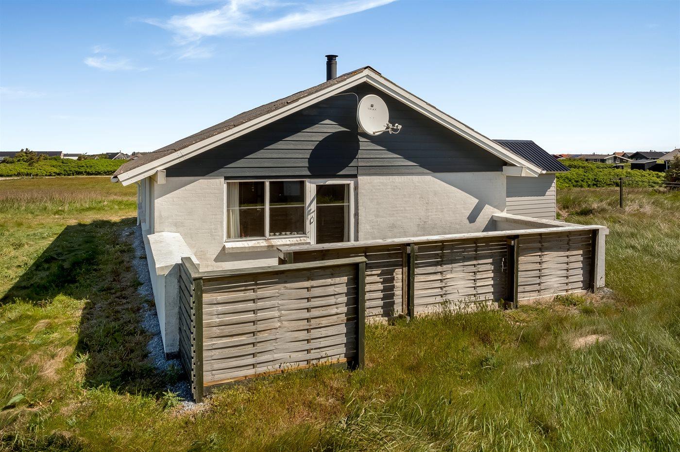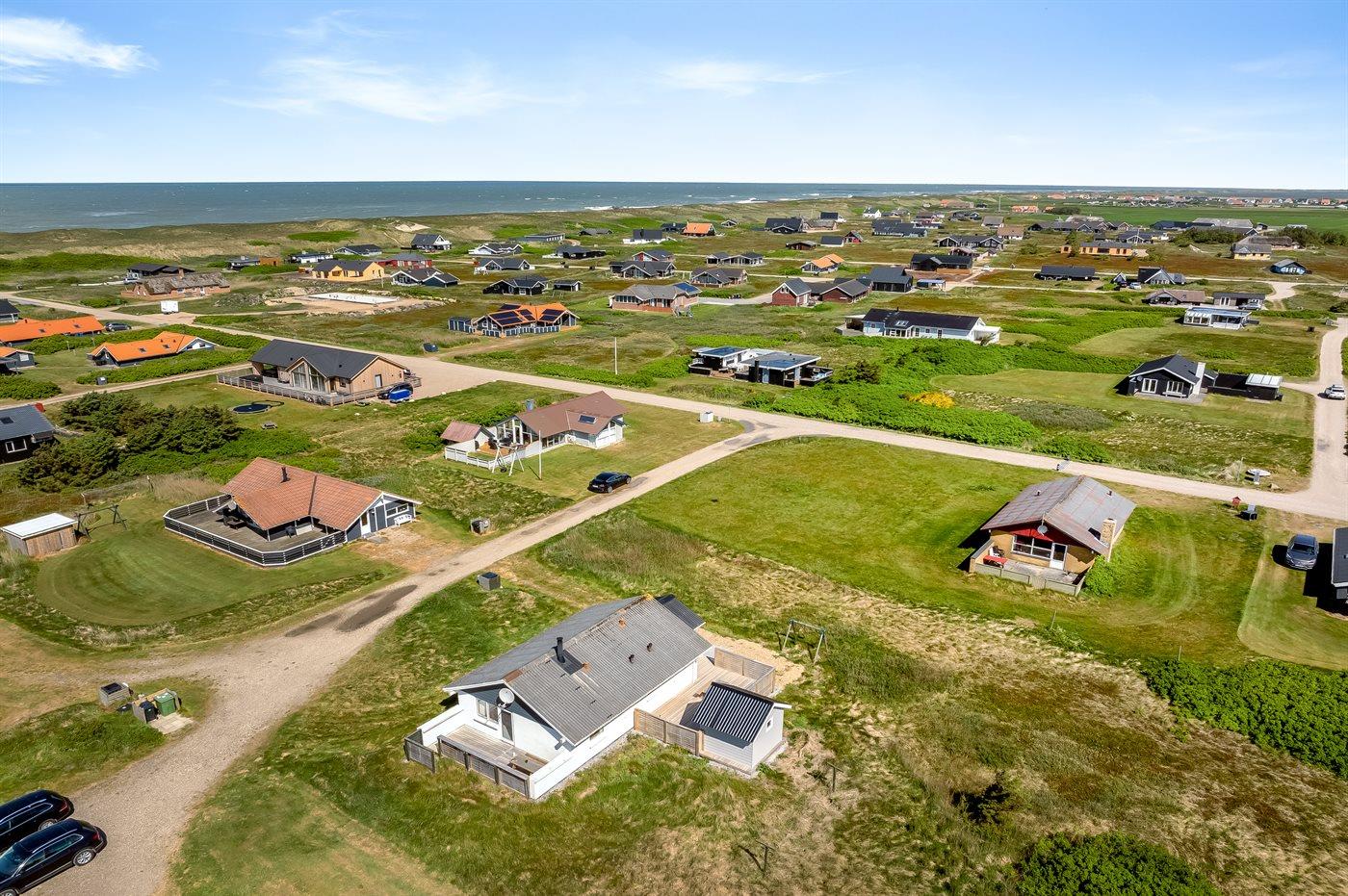 Ferieboligen er beliggende på en 1287 m² stor klitgrund. Der er 350 m til havet. Nærmeste forretning er beliggende i en afstand af 1500 m. Til ferieboligen hører åbent terrasseareal. Gynge. Der ligger en legeplads i en afstand af 250 m. Parkering ved ferieboligen.