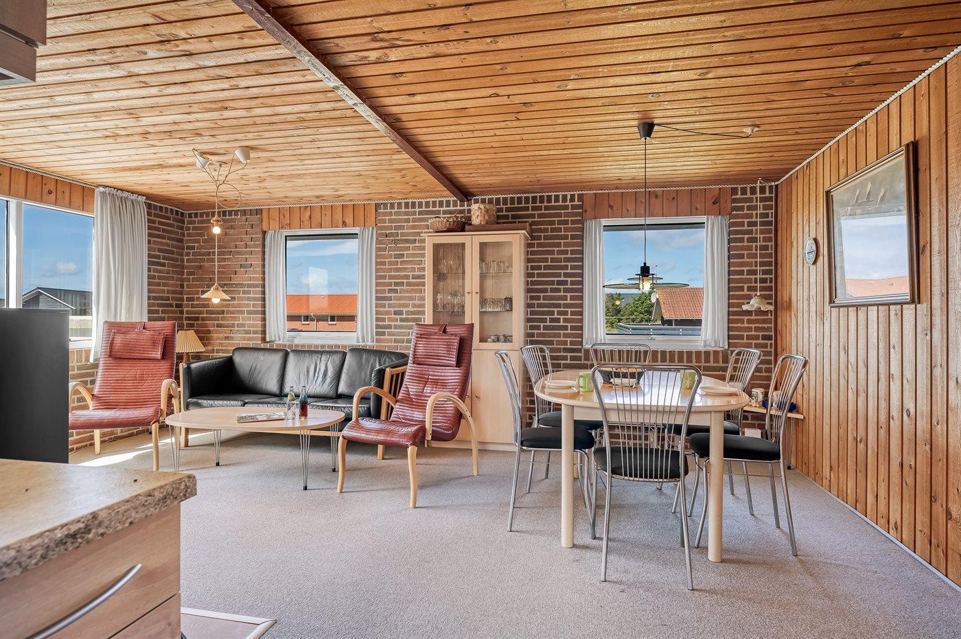 Dette sommerhus ligger i gåafstand til klitter og strand, og skal man en tur til Lemvig eller Thyborøn, kan man fordel tage områdets autentiske jernbane VLTJ, der kører i regn og blæst.