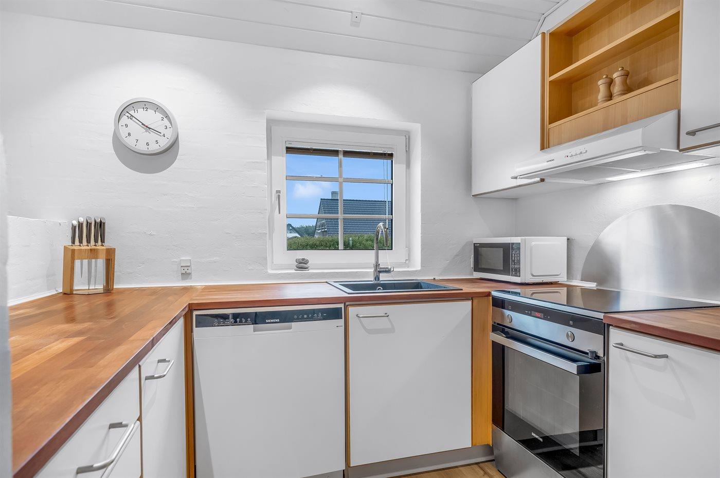 Køkkenet er udstyret med 1 køleskab. Der er 4 induktionskogeplader, varmluftovn, mikrobølgeovn samt opvaskemaskine Der er gulvvarme i køkkenet.