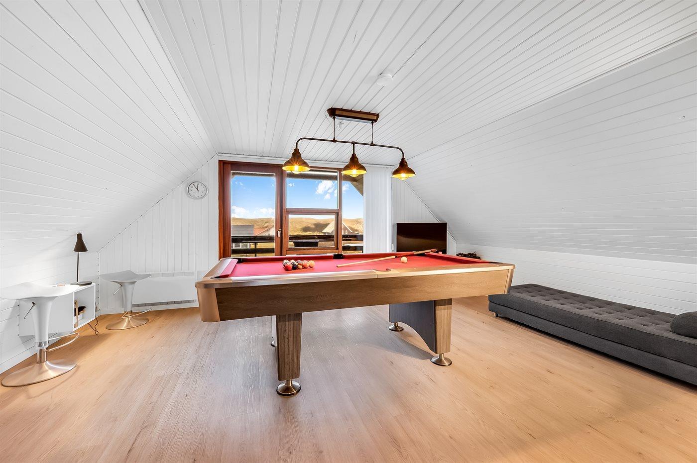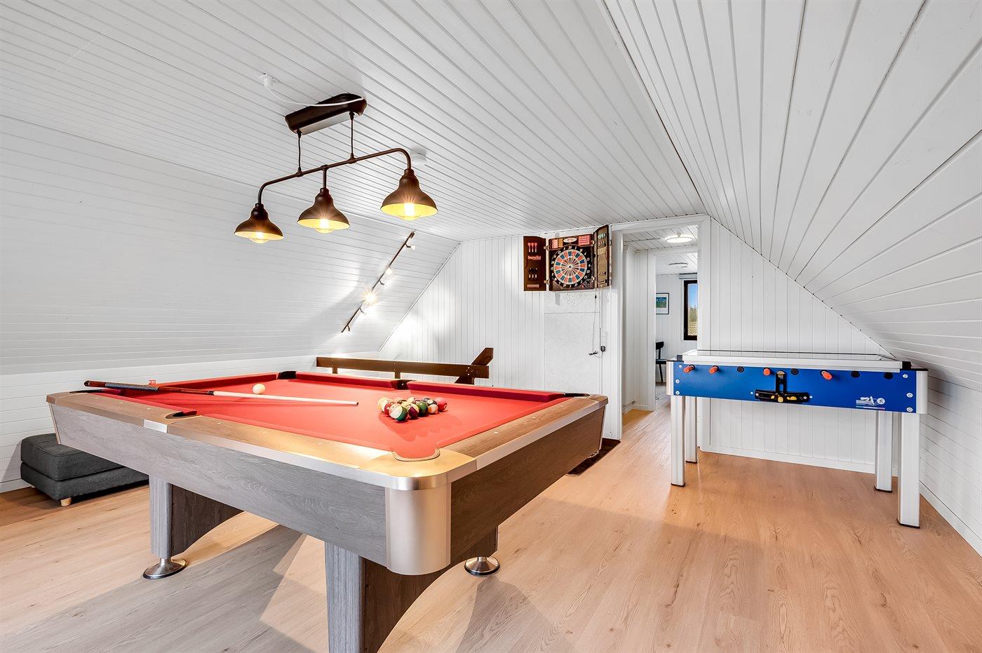I aktivitetsrummet er der følgende udstyr: Poolbord. Dart. Bordfodbold.