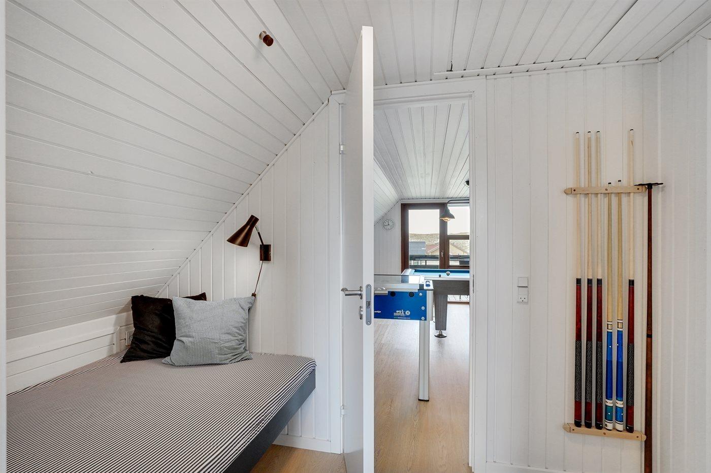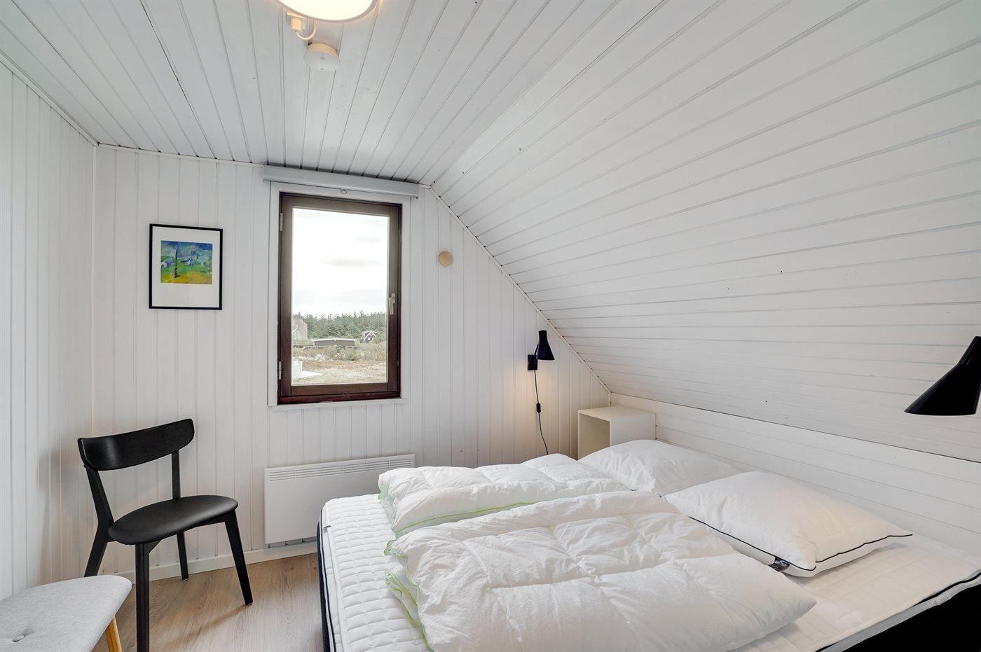 Der er i alt 3 soveværelser. Sovepladserne fordeler sig på: 4 sovepladser i dobbeltsenge. 2 sovepladser i enkeltsenge.