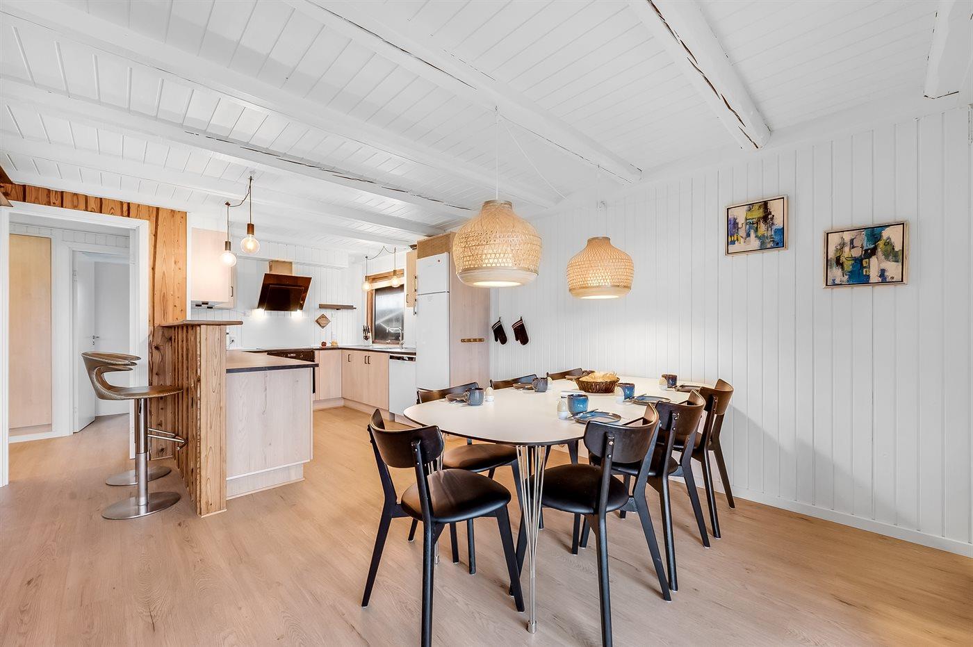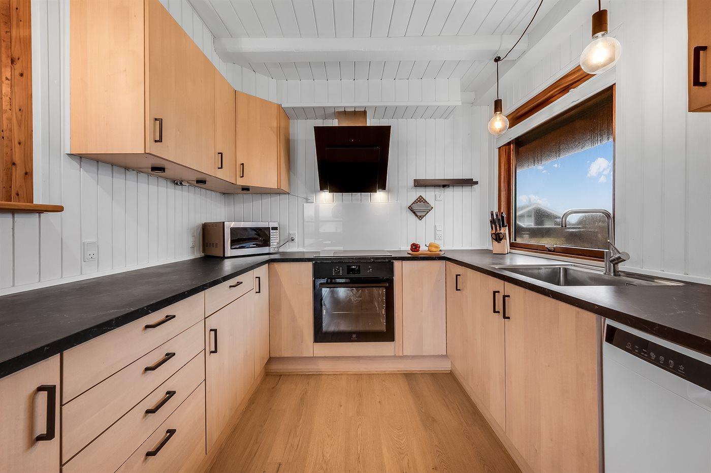 Køkkenet er udstyret med 1 køleskab. Der er 4 induktionskogeplader, varmluftovn, mikrobølgeovn samt opvaskemaskine.