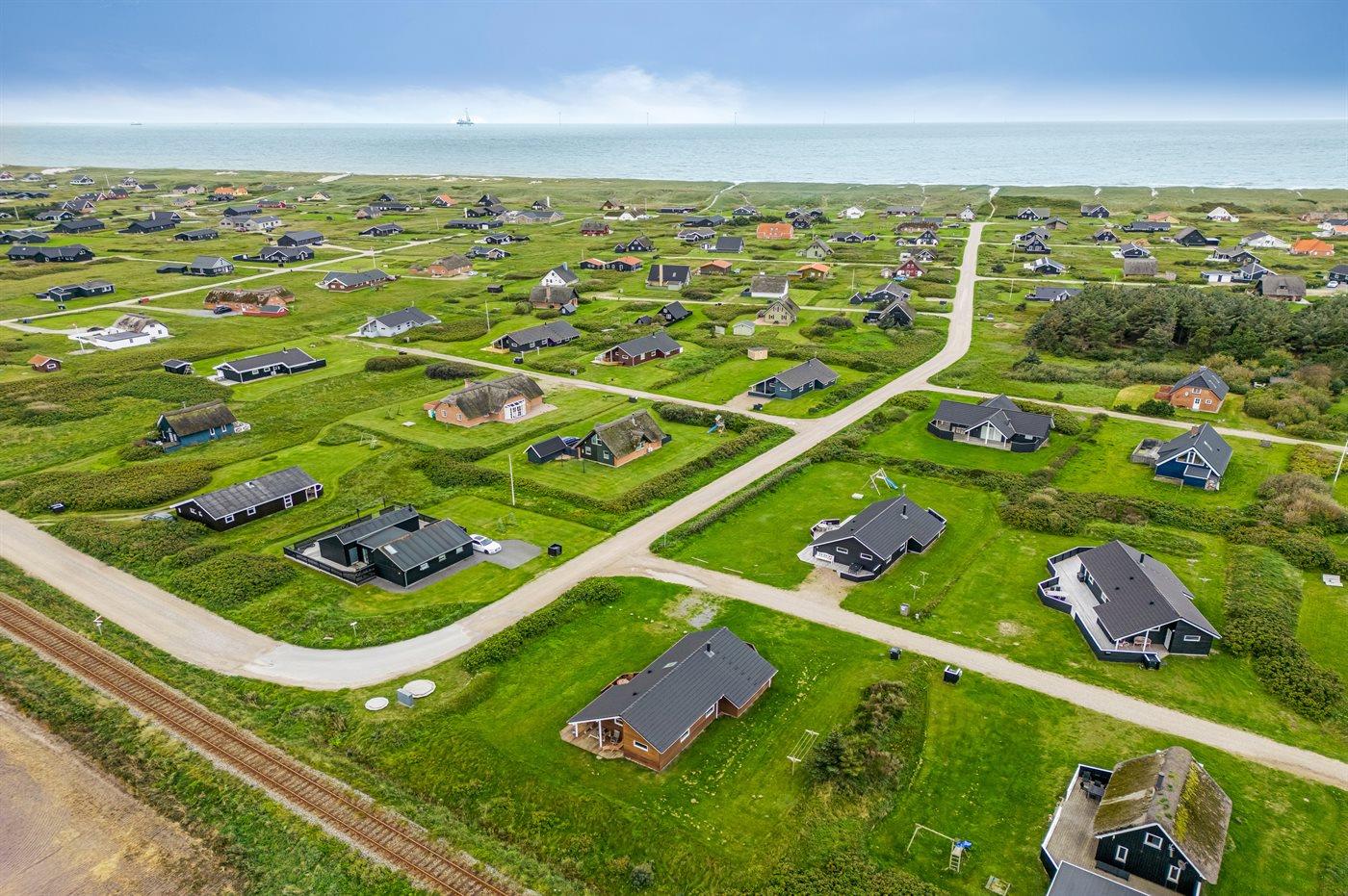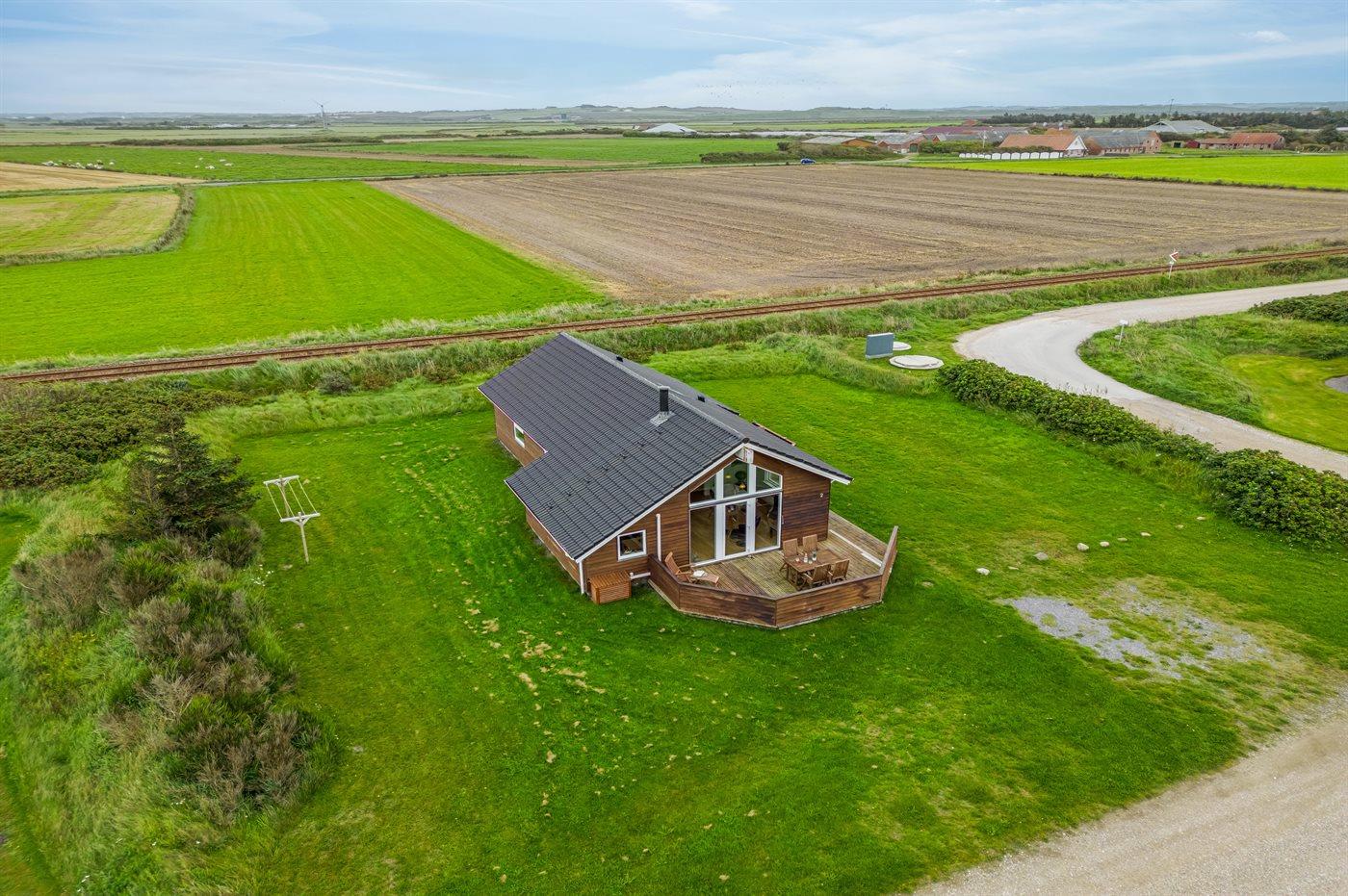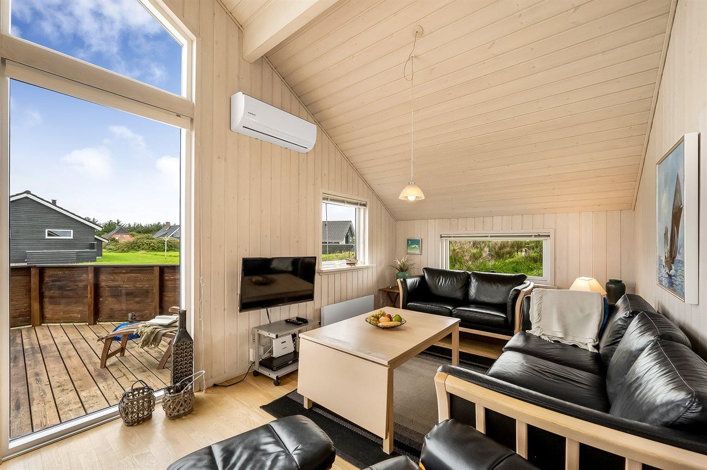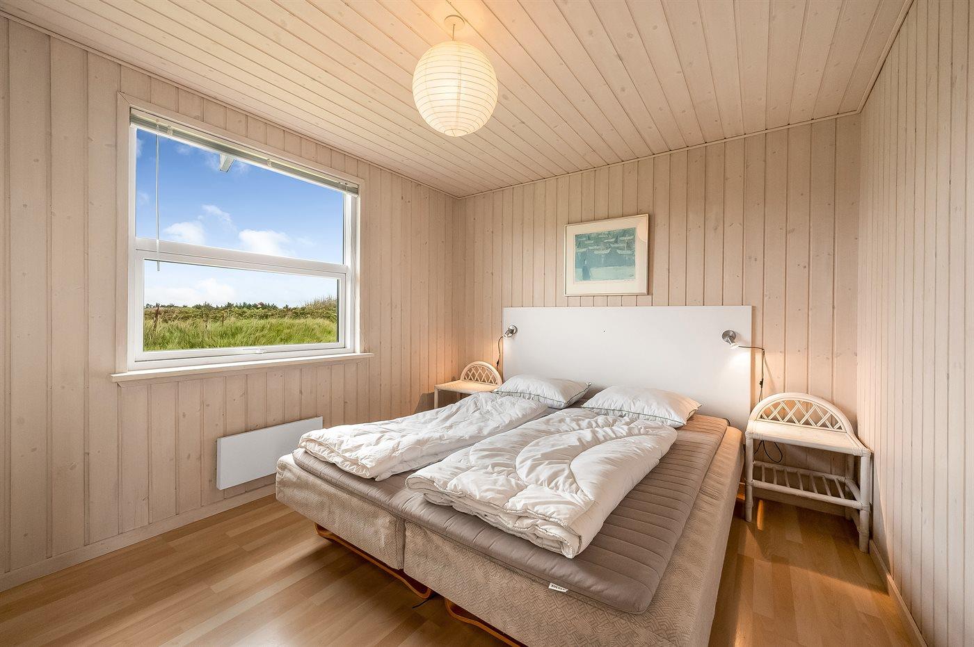 Yderst velholdt spahus kun 10 min. gang fra Vesterhavet, der uanset årstiden er en oplevelse i sig selv. Huset er funktionelt og moderne indrettet med dejligt stort køkken/alrum. Over køkkenet er der hems, der for børnene vil være en hyggelig hule, hvor man kan sove og være sig selv. I det store badeværelse med gulvvarme er der 2-pers. spabad og direkte adgang til saunaen. Køkkenet er velfungerende med bl.a. opvaskemaskine, varmluftovn og komfur med keramiske kogeplader. I stuen er der TV med parabol (digital), DVD-afspiller, CD-afspiller, brændeovn samt udgang til en stor træterrasse. Husets sovepladser fordeler sig på 2 soveværelser med dobbeltseng og 1 værelse med 2 enkeltsenge. Desuden hems med 2 sovepladser. Værelserne har gode senge og rummelige skabe til opbevaring af tøj, etc. Gratis, trådløs internetforbindelse (egen computer skal medbringes). I umiddelbar nærhed af huset findes gode indkøbsmuligheder, lysestøbere, hvor man selv kan fremstille sine stearinlys. Alt i alt en god base for en vellykket ferie, hvor afslapning og oplevelser er sat i højsædet.