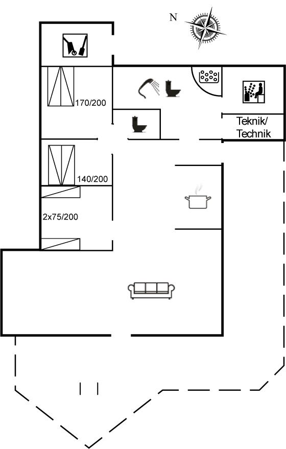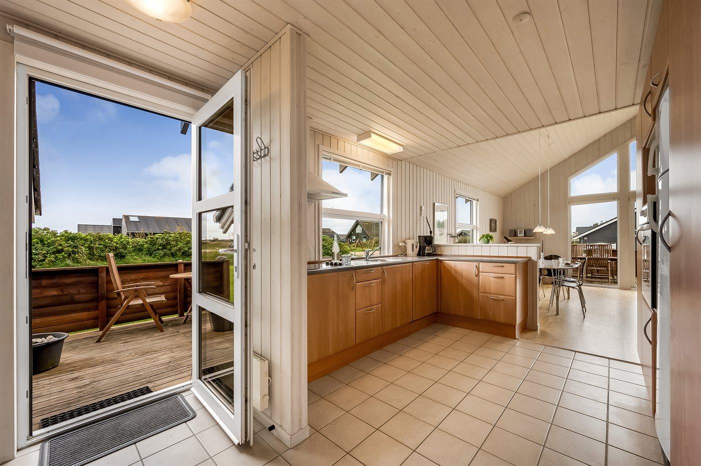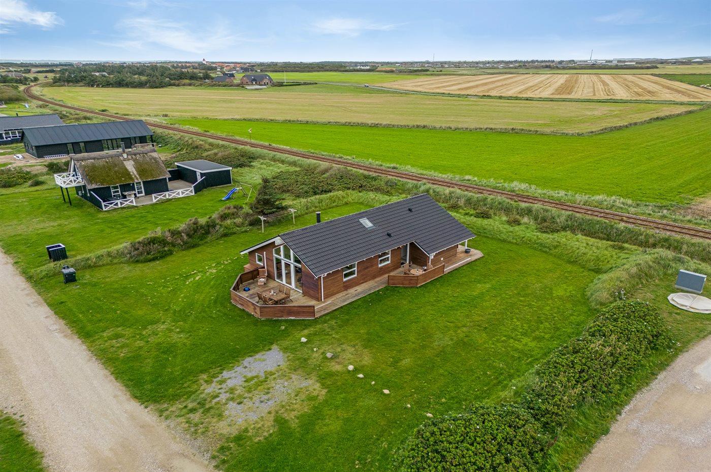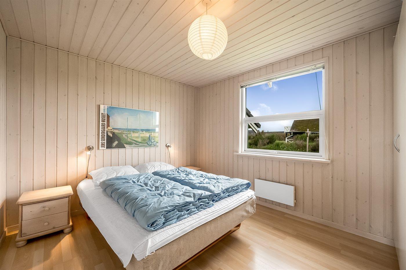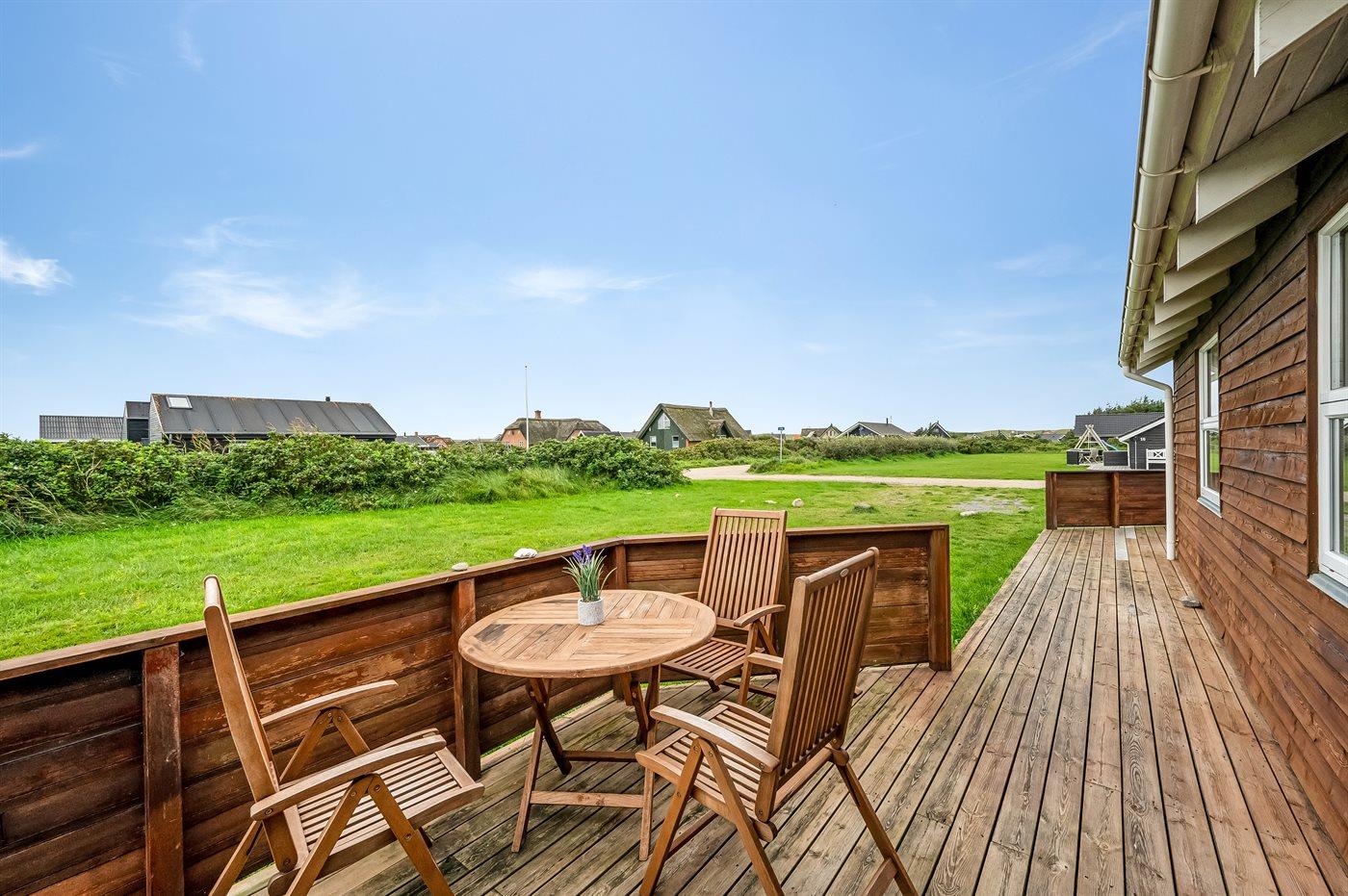 Yderst velholdt spahus kun 10 min. gang fra Vesterhavet, der uanset årstiden er en oplevelse i sig selv. Huset er funktionelt og moderne indrettet med dejligt stort køkken/alrum. Over køkkenet er der hems, der for børnene vil være en hyggelig hule, hvor man kan sove og være sig selv. I det store badeværelse med gulvvarme er der 2-pers. spabad og direkte adgang til saunaen. Køkkenet er velfungerende med bl.a. opvaskemaskine, varmluftovn og komfur med keramiske kogeplader. I stuen er der TV med parabol (digital), DVD-afspiller, CD-afspiller, brændeovn samt udgang til en stor træterrasse. Husets sovepladser fordeler sig på 2 soveværelser med dobbeltseng og 1 værelse med 2 enkeltsenge. Desuden hems med 2 sovepladser. Værelserne har gode senge og rummelige skabe til opbevaring af tøj, etc. Gratis, trådløs internetforbindelse (egen computer skal medbringes). I umiddelbar nærhed af huset findes gode indkøbsmuligheder, lysestøbere, hvor man selv kan fremstille sine stearinlys. Alt i alt en god base for en vellykket ferie, hvor afslapning og oplevelser er sat i højsædet.