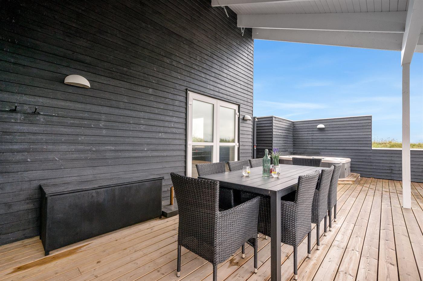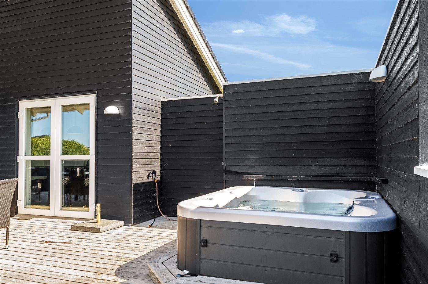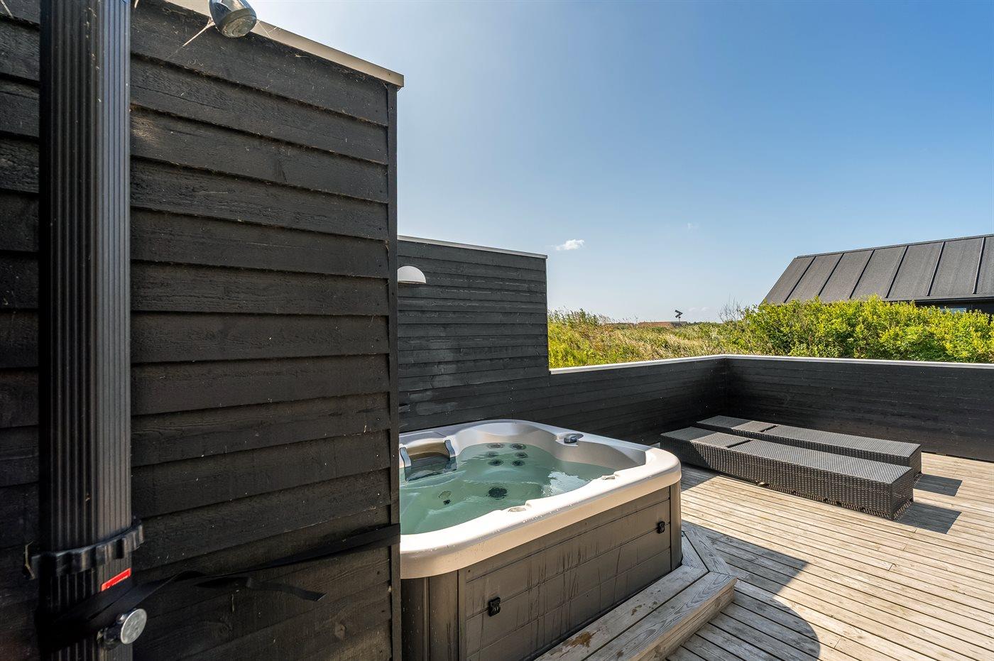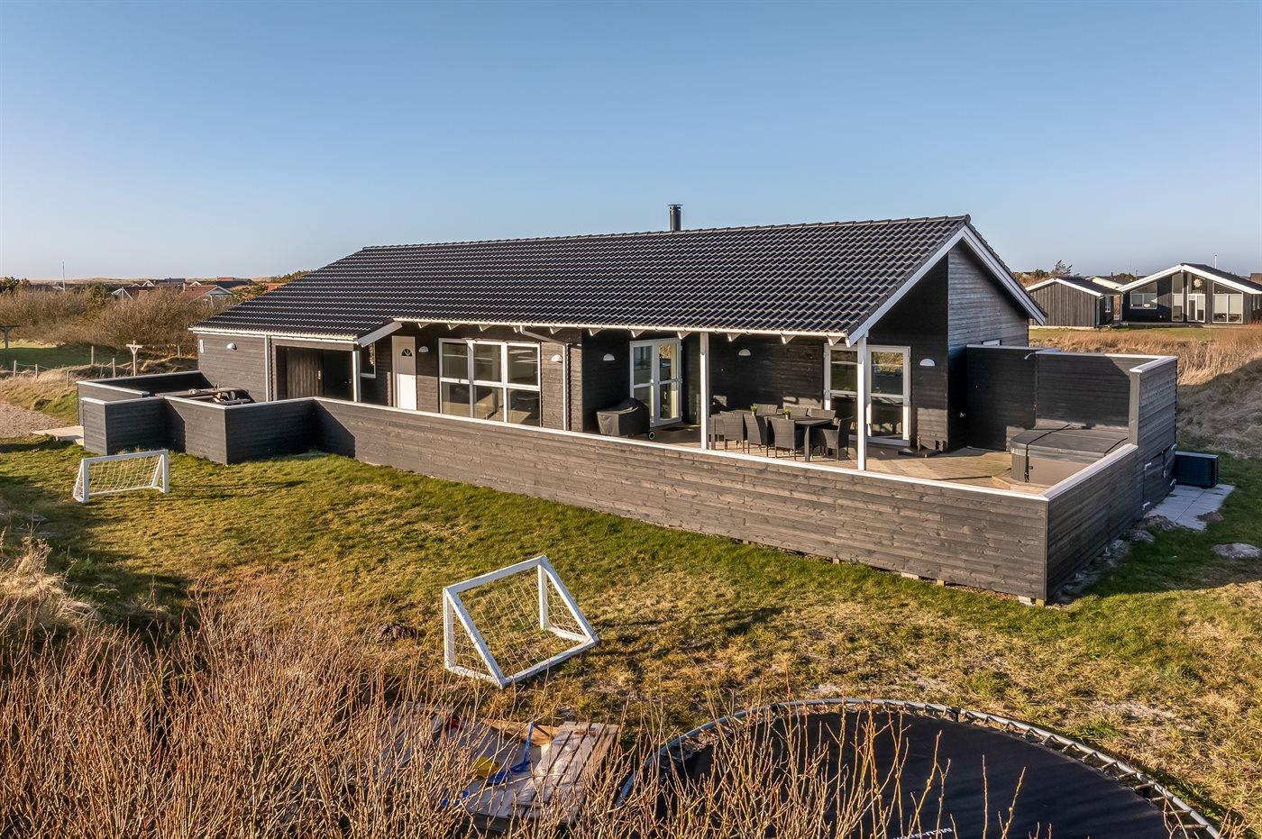 Moderne sommerhus fra 2021 nær havet med spa, aktivitetsrum og stor terrasse i Vrist, perfekt til familieferie.