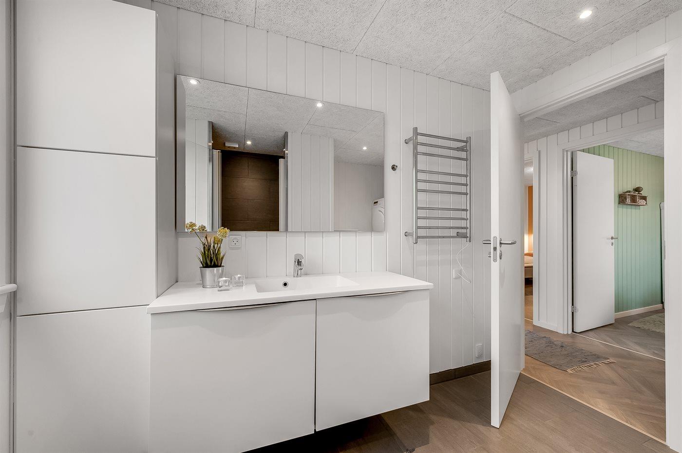 Der er 1 badeværelse med bruseniche og 2 toiletter, heraf 1 gæstetoilet. Der er gulvvarme på 1 badeværelse. Der er gulvvarme på gæstetoilettet.