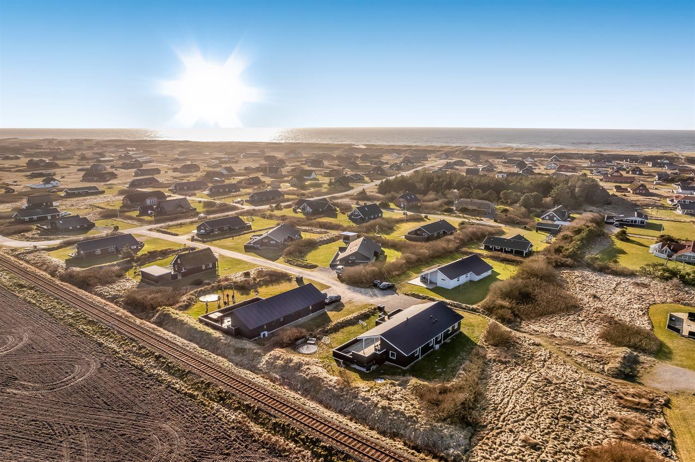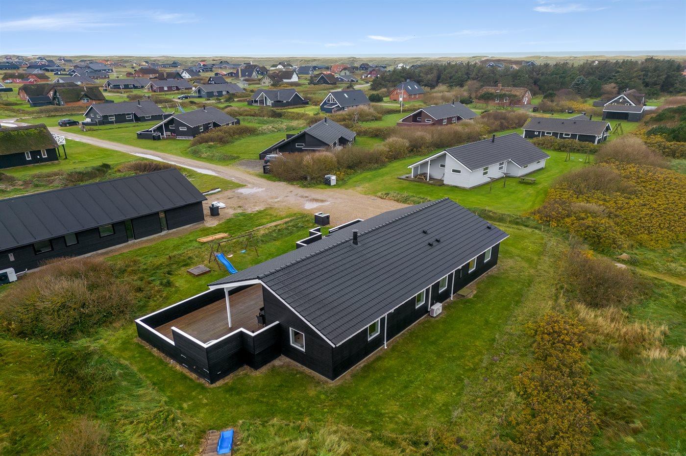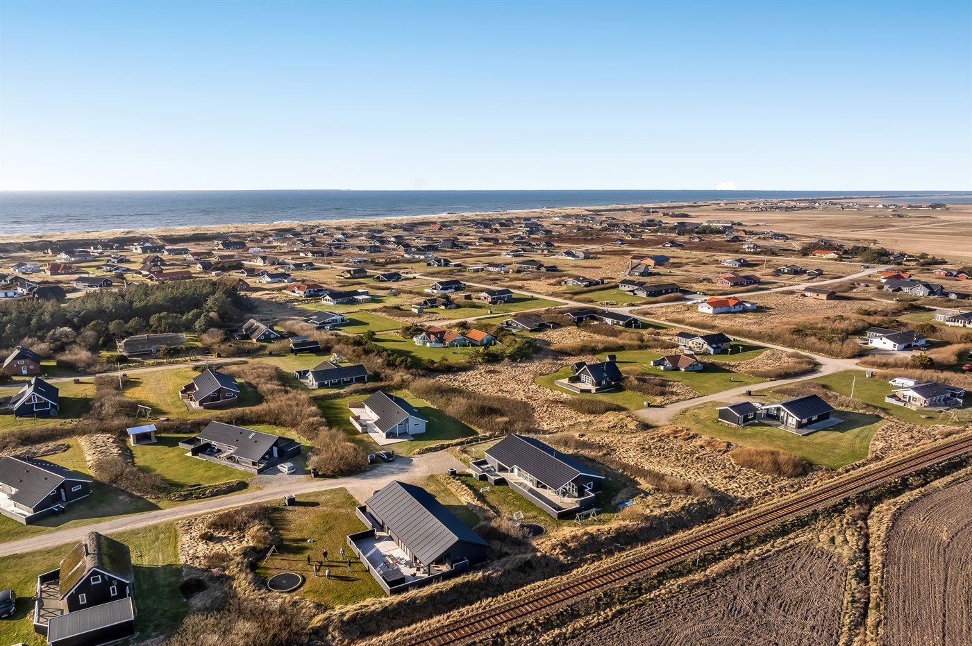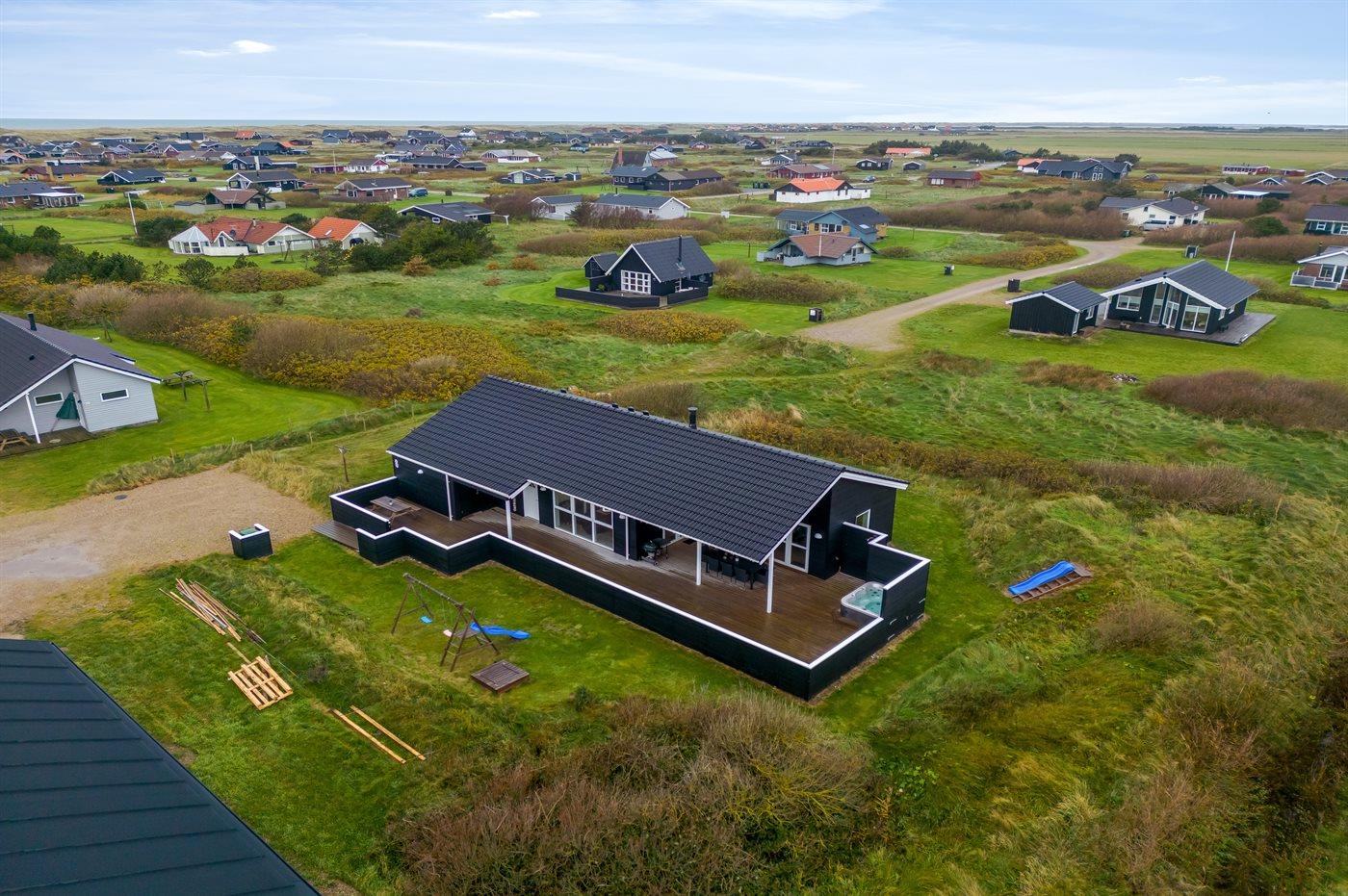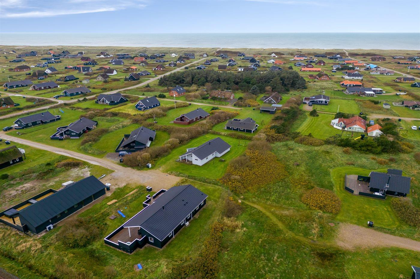 Ferieboligen er beliggende på en 1206 m² stor klitgrund. Der er 400 m til havet. Nærmeste forretning er beliggende i en afstand af 1000 m. Til ferieboligen hører 110 m² terrasseareal. Desuden er der 20 m² overdækket terrasse. Heraf i alt 110 m² lukket terrasse. Gynge. Sandkasse. Rutchebane. Udendørs bruser. Der er installeret stik til opladning af elbil. Parkering ved ferieboligen.