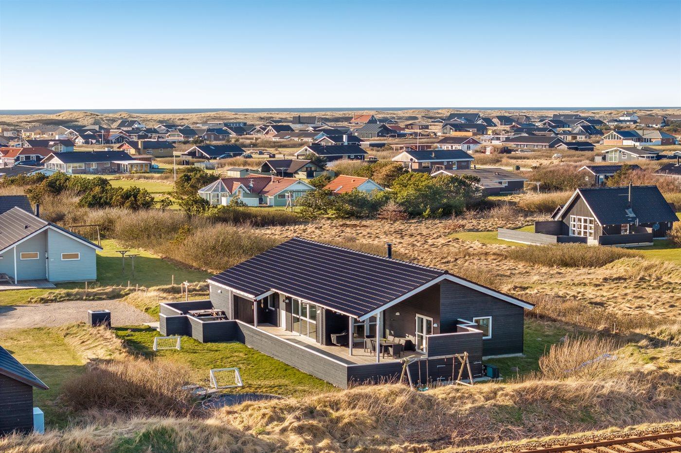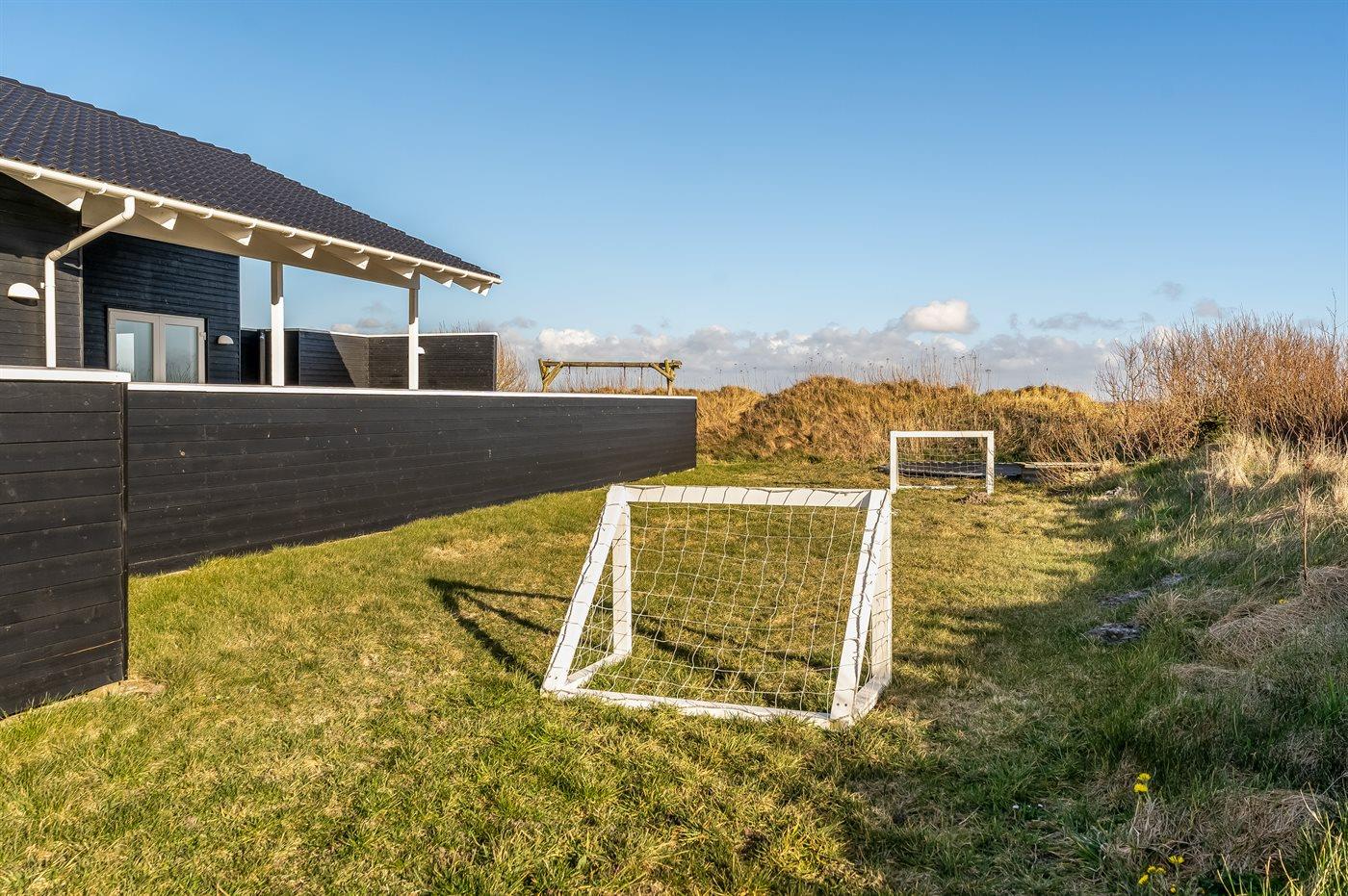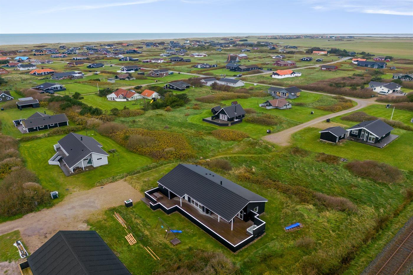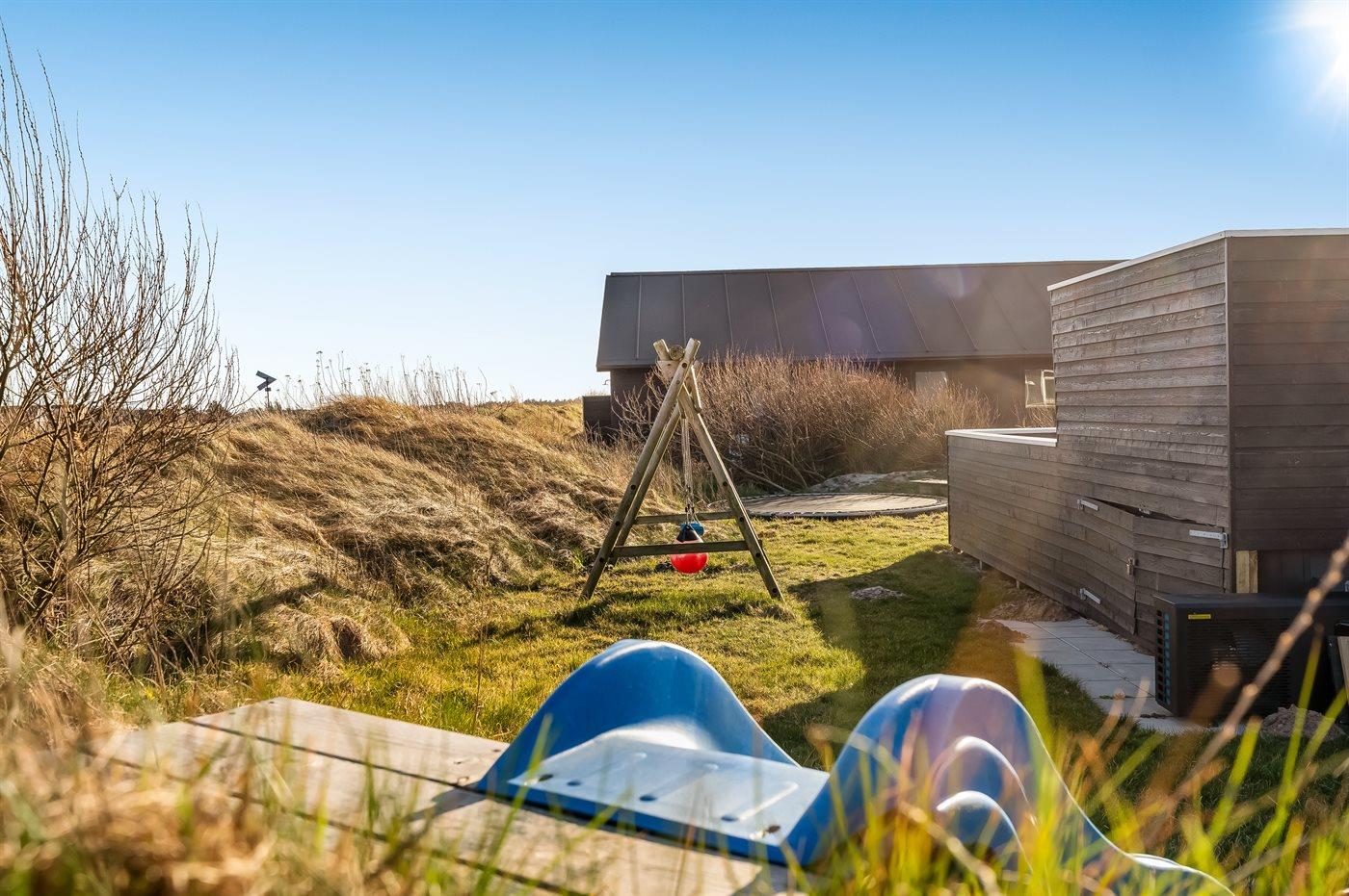 Ferieboligen er beliggende på en 1206 m² stor klitgrund. Der er 400 m til havet. Nærmeste forretning er beliggende i en afstand af 1000 m. Til ferieboligen hører 110 m² terrasseareal. Desuden er der 20 m² overdækket terrasse. Heraf i alt 110 m² lukket terrasse. Gynge. Sandkasse. Rutchebane. Udendørs bruser. Der er installeret stik til opladning af elbil. Parkering ved ferieboligen.