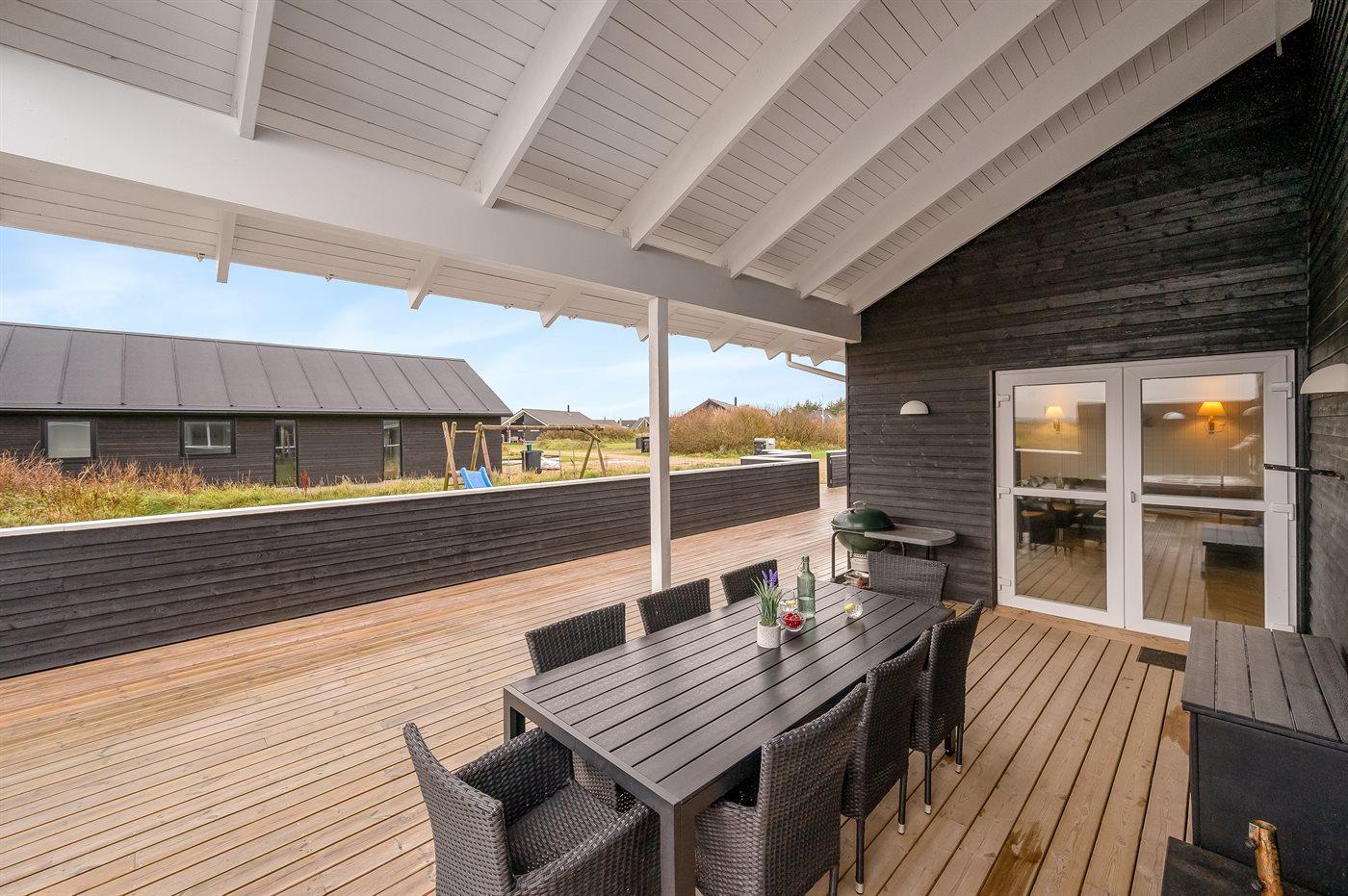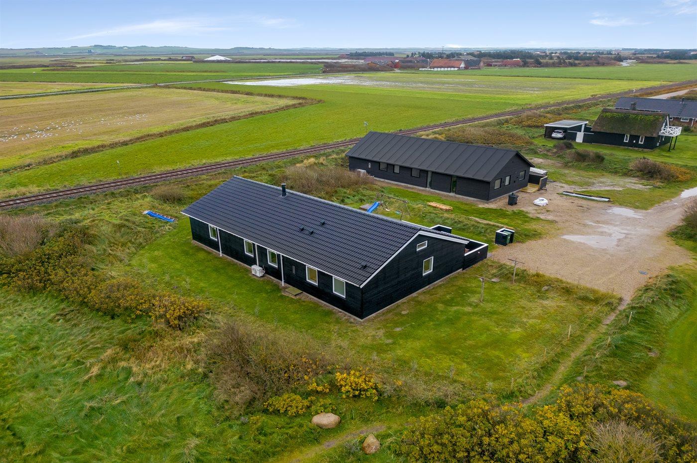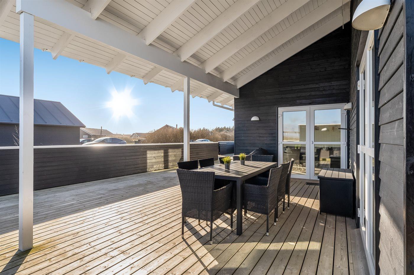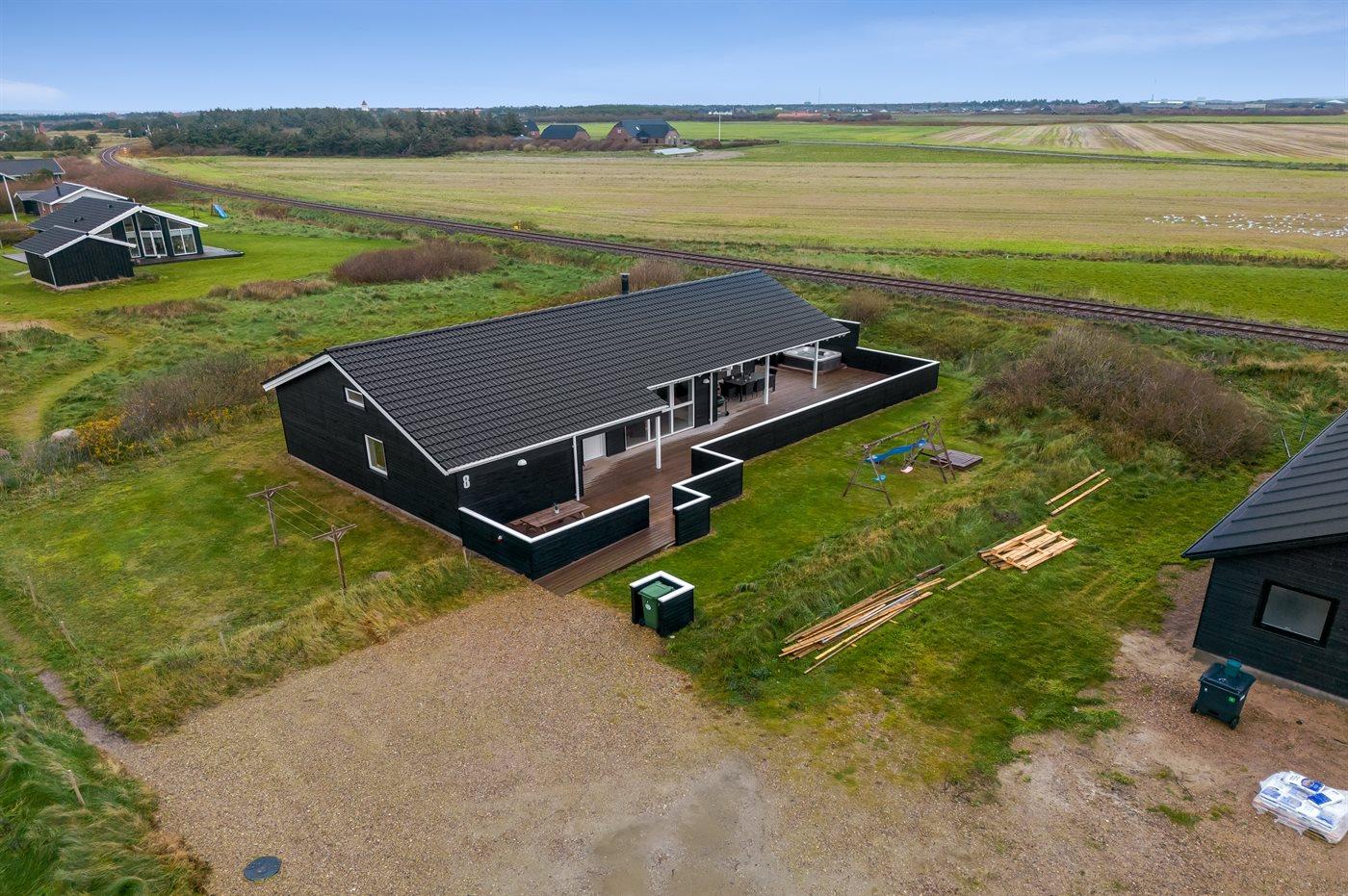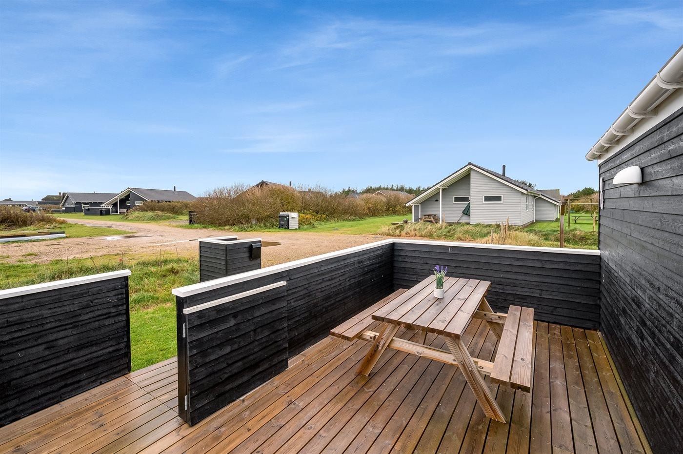 Ferieboligen er beliggende på en 1206 m² stor klitgrund. Der er 400 m til havet. Nærmeste forretning er beliggende i en afstand af 1000 m. Til ferieboligen hører 110 m² terrasseareal. Desuden er der 20 m² overdækket terrasse. Heraf i alt 110 m² lukket terrasse. Gynge. Sandkasse. Rutchebane. Udendørs bruser. Der er installeret stik til opladning af elbil. Parkering ved ferieboligen.