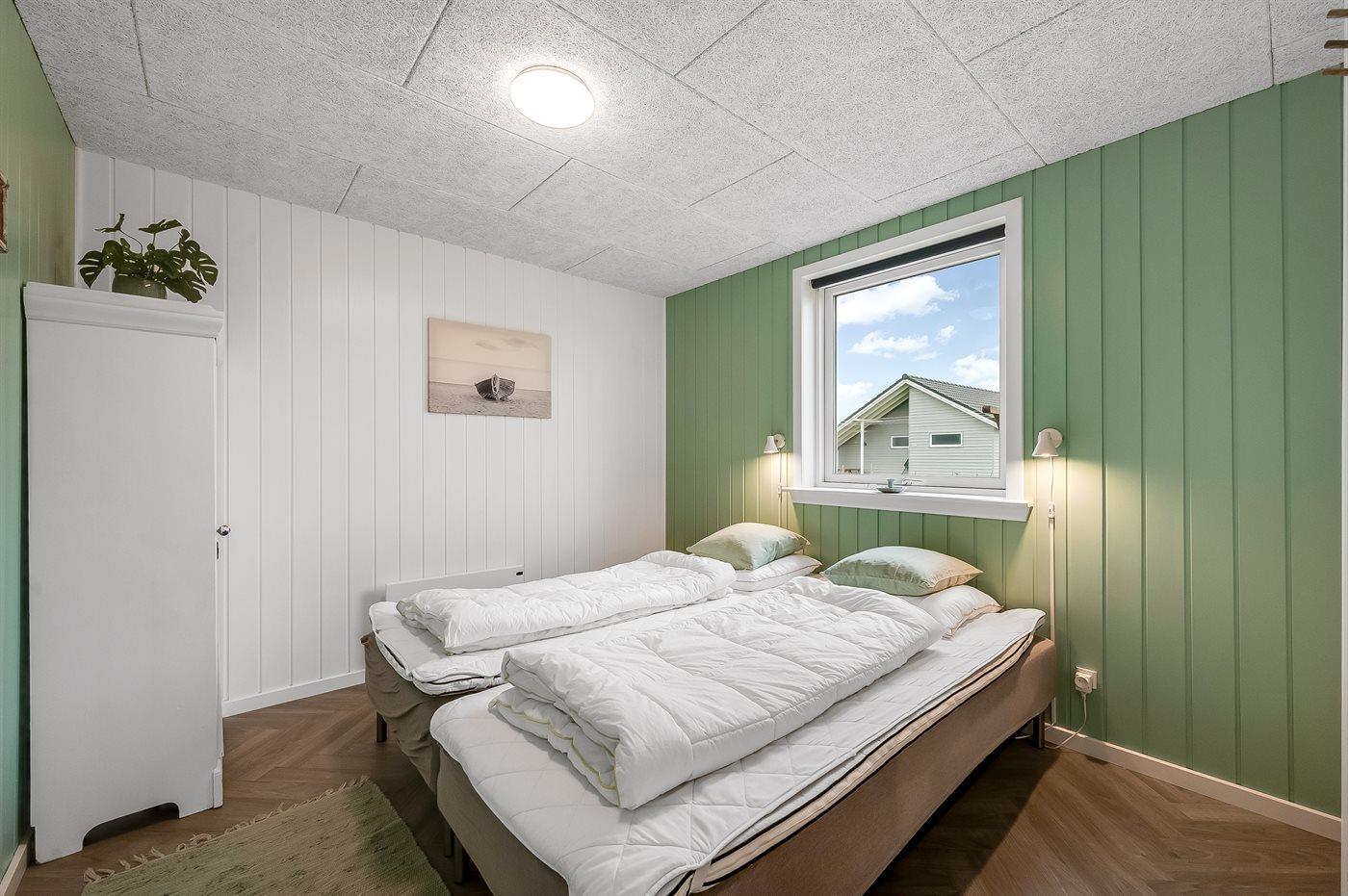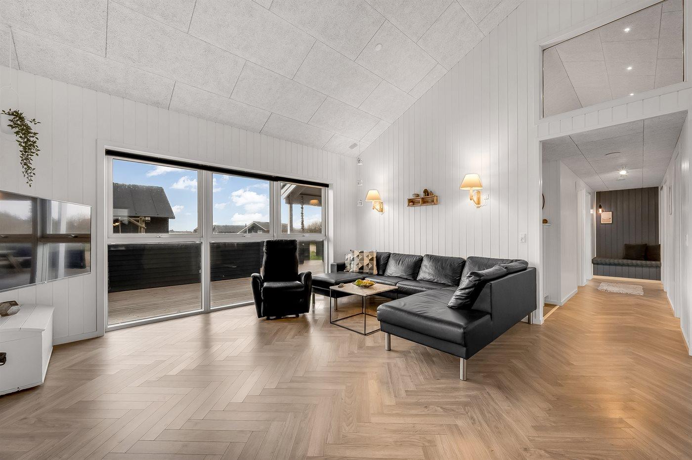 Helt nyt og rummeligt sommerhus fra 2021 beliggende for enden af lukket vej i et sommerhusområde mellem hav og fjord ved Harboøre.