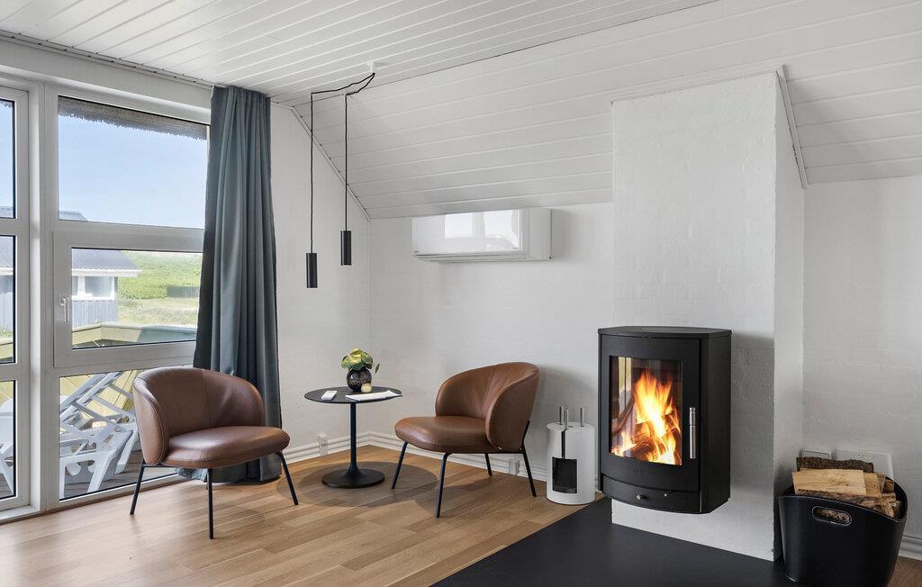 Oplev dette rummelige og smagfuldt renoverede feriehus, som tilbyder moderne komfort i traditionelle omgivelser. Rummene er åbne og skaber en indbydende atmosfære med masser af lys og rene linjer. Lav mad sammen i det moderne køkken med træbordplade og nyd dagens måltider ved det elegante spisebord. Læn jer tilbage i de behagelige sofaer eller sæt jer godt til rette ved brændeovnen. Spabadet og saunaen sørger for ekstra afslapning efter en aktiv dag.