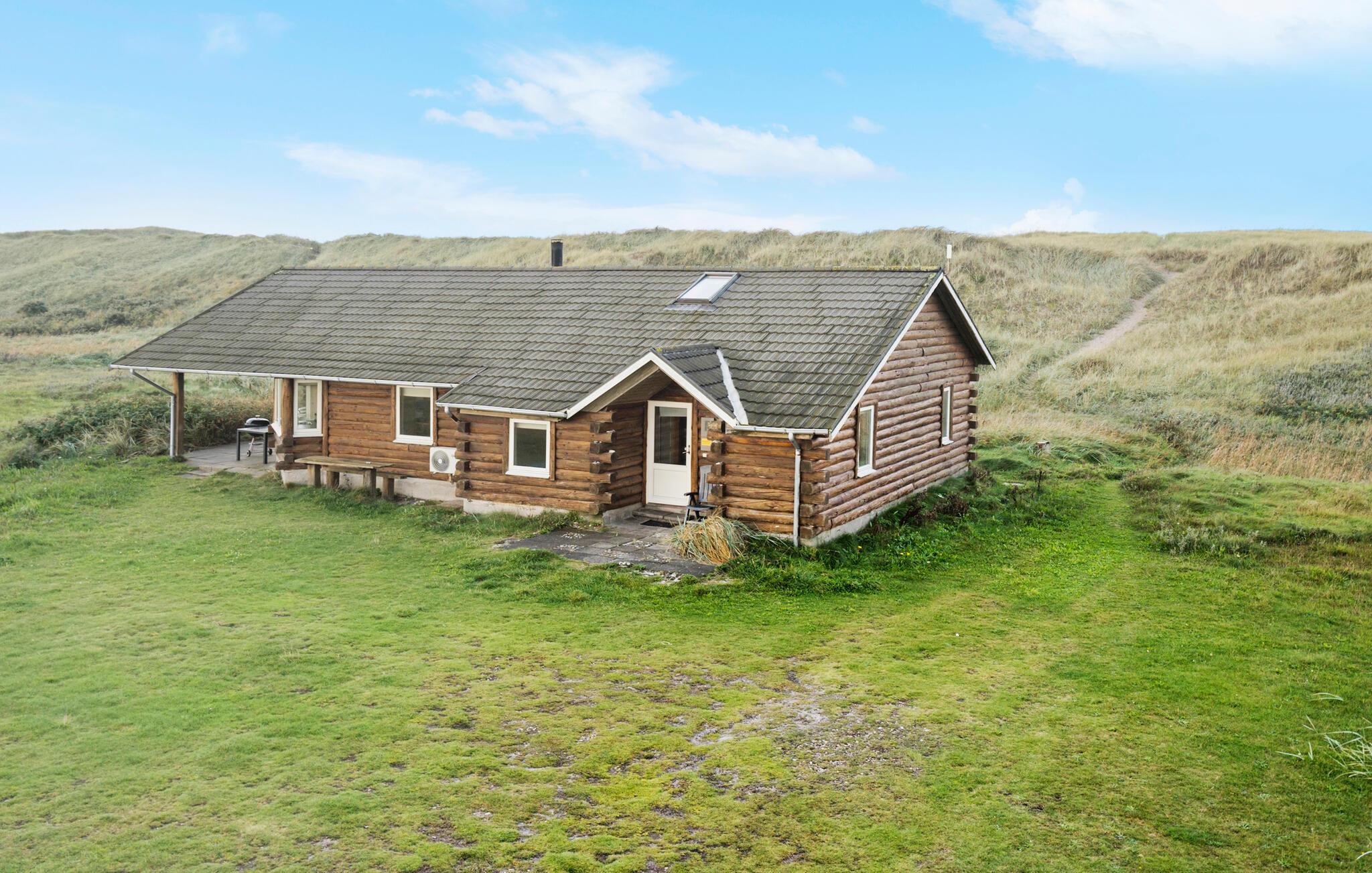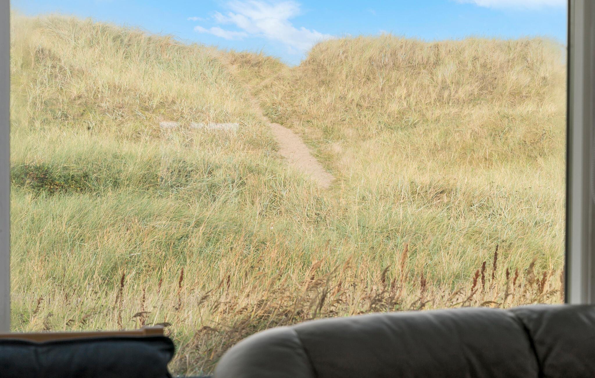 Hyggeligt feriehus i klitterne ved Vrist Strand med sauna, spabad og skøn udsigt.