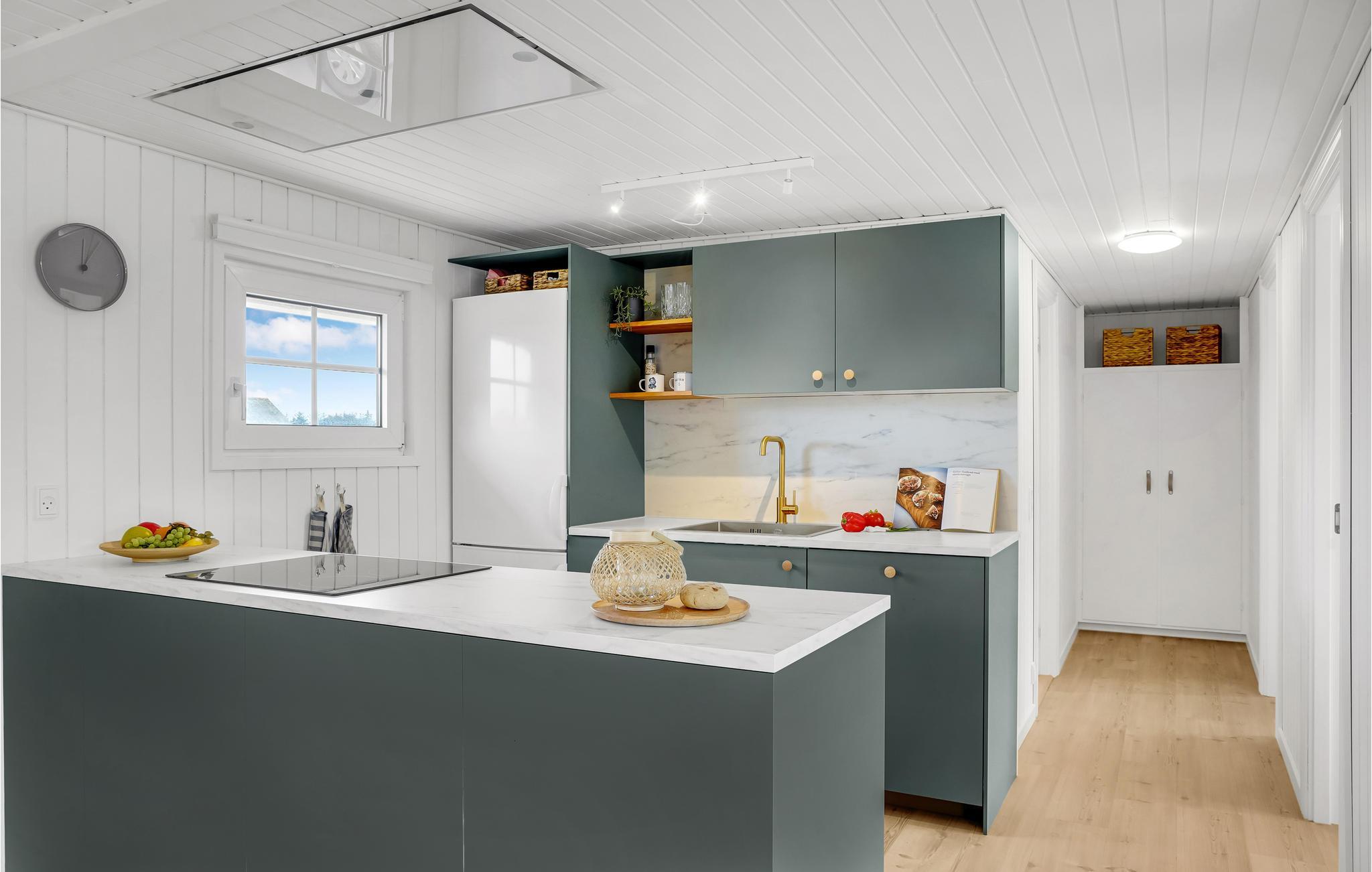 Det store køkken-alrum fører direkte ud til en sydvendt terrasse. På den overdækkede del kan I dække op til dagens måltider i den friske luft eller afslutte dagen med en grillmiddag.