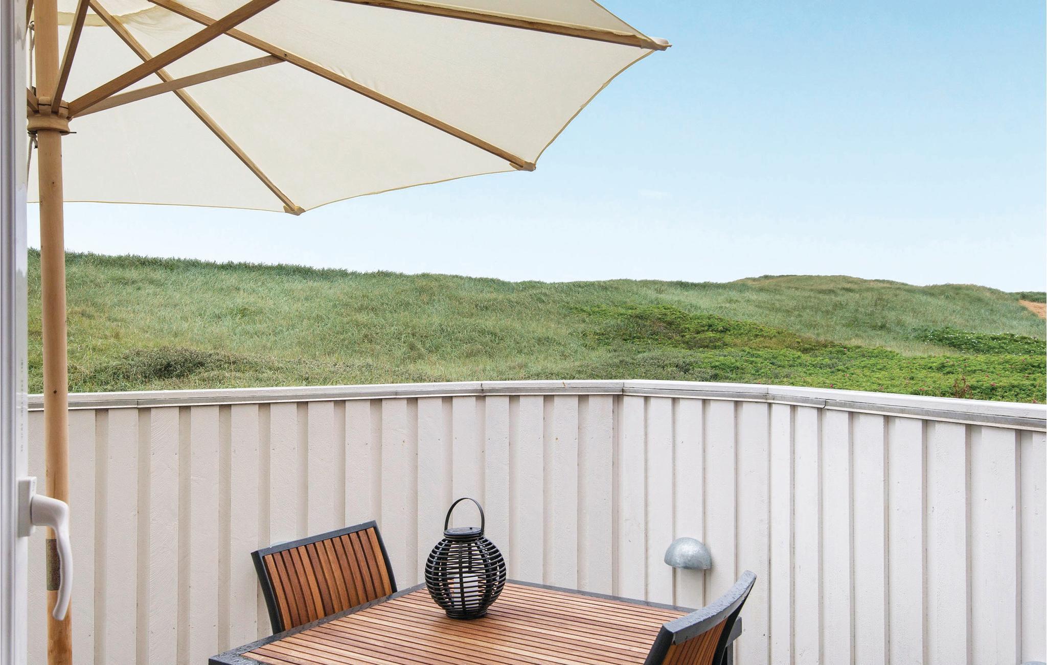 I det smukke klitlandskab ligger dette skønne, velindrettede stråtækte feriehus beliggende i 1. række til vandet. Udendørs kan I nyde ferien på en af terrasserne med udsigt til klitlandskabet, lyden af Vesterhavet og den skønne friske luft. Huset er dejligt lyst indrettet med en flot stue der ligger i forbindelse med det veludstyrede køkken. Rundt om spisebordet er der plads til jer alle, og om aftenen kan I sidde og spille kort eller brætspil. De tre soveværelser har komfortable senge, og afstemte interiørfarver fra værelse til værelse. Efter en hel dag ved stranden, er det skønt at hoppe en tur i spabadet og få blid undervandsmassage.