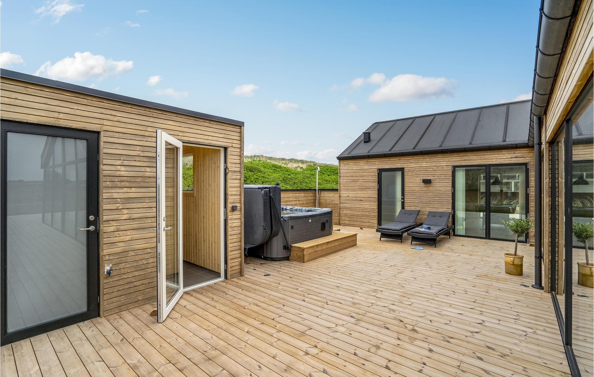 Nyd et luksuriøst aktivitetshus ved Nordsøens klitter med spa, sauna og fantastisk udsigt.