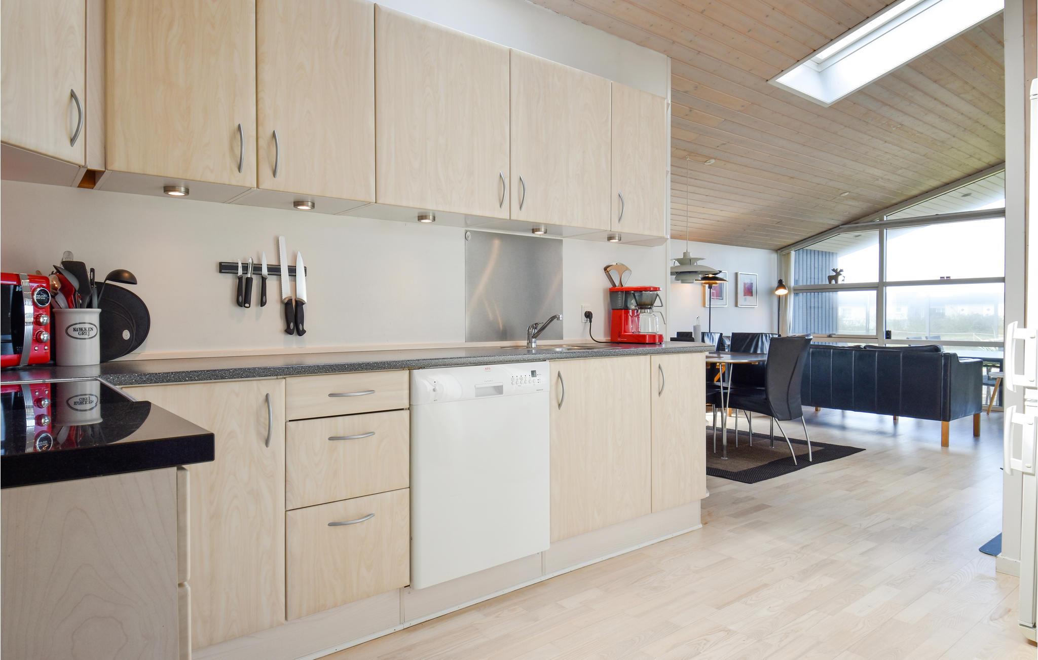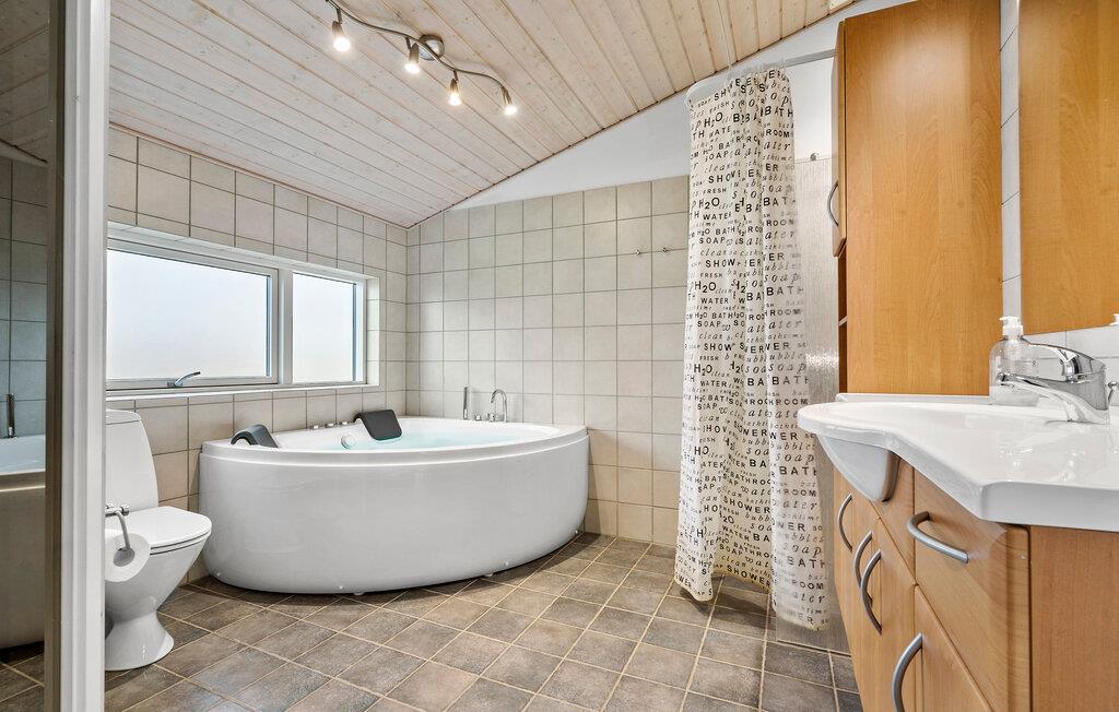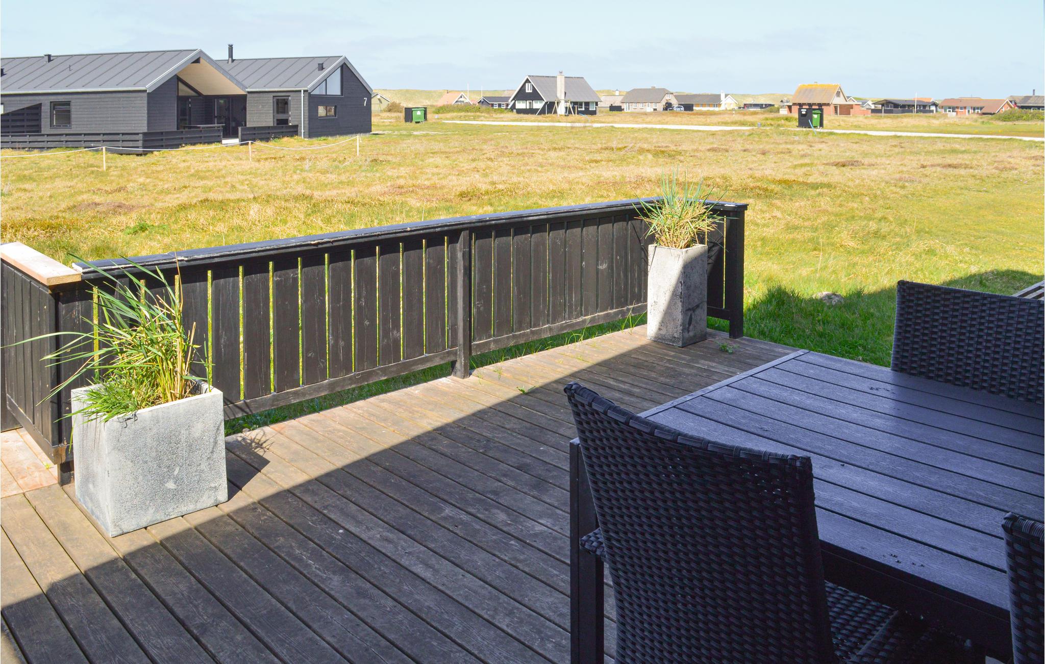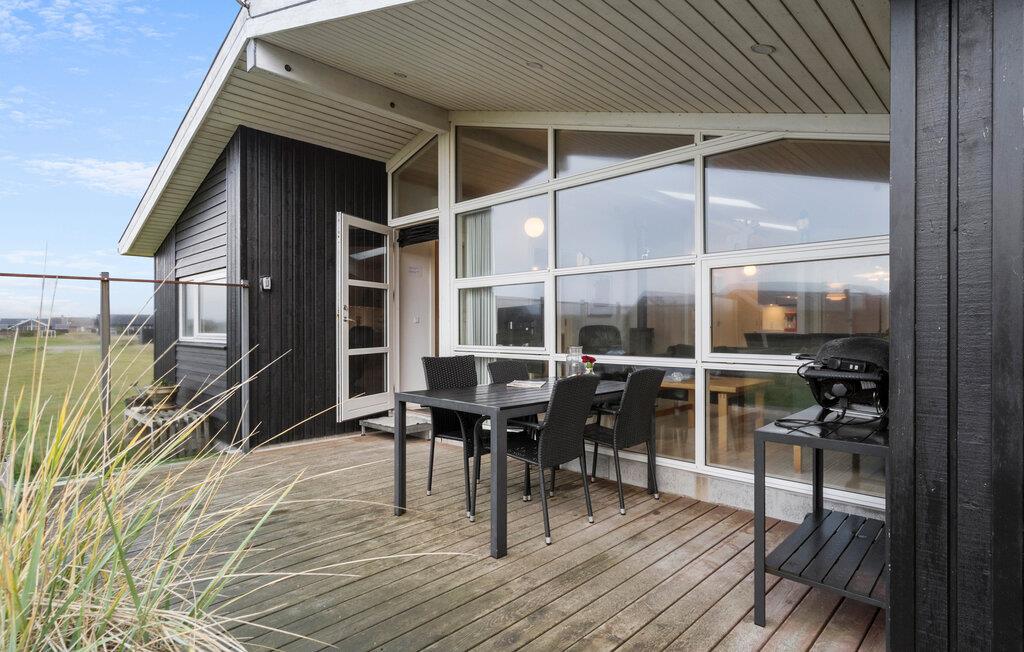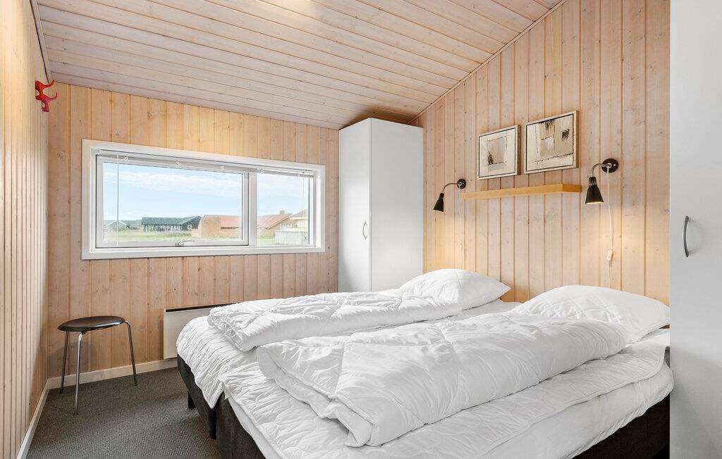 Dette velholdte sommerhus er godt indrettet til 6 personer. Huset ligger kun 5 minutters gang fra det brusende Vesterhav, og har flere lækre terrasser, så I kan nyde både morgen-, middag- og aftensolen. Huset er godt indrettet med 3 soveværelser - 2 med en dobbeltseng og det sidste med 2 enkeltsenge. I det store badeværelse findes både spabad og sauna, så I kan blive varmet godt igennem efter en dejlig gåtur ved Vesterhavet. Her findes yderligere et badeværelse med bruser. Køkkenet, spiseområdet og stuen ligger i åben forbindelse, og her sørger en brændeovn for hurtig opvarmning og god atmosfærre i huset, specielt på kølige aftener.