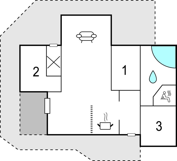 Badeværelse 9m2 (nr. 1) - WC. Varmt og koldt vand. Bruser