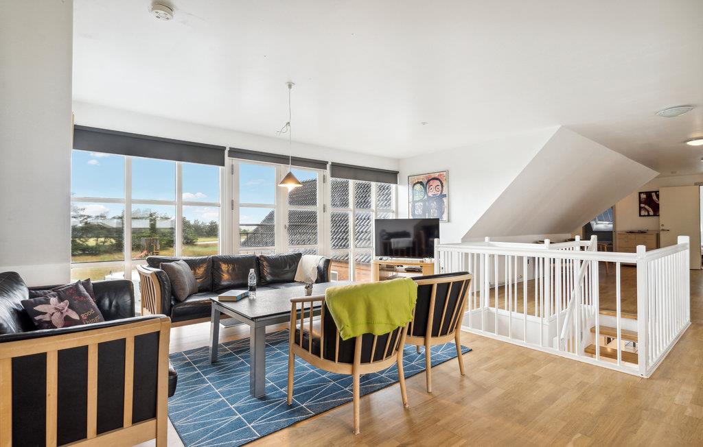Som noget helt specielt er huset indrettet med en indendørs altan, hvorfra I har udsyn til de badende i poolrummet. Alle soveværelser har god plads, og er udstyret med dobbeltsenge og eget fladskærms-TV. De fleste af værelserne har egen udgang til terrasse eller balkon, hvor I kan nyde den utroligt smukke udsigt til klitterne og landskabet. Køkkenet er meget veludstyret og dimensioneret til husets størrelse med bl.a. 2 komfurer og opvaskemaskine. I de velindrettede og indbydende stuer er der opsat store fladskærms-TV, og parabolen sørger for både skandinaviske og tyske kanaler, bl.a. Viasat til de sportsinteresserede. Der er naturligvis også gratis internet, ligesom der er mulighed for at benytte husets AV-udstyr til eventuelle præsentationer.