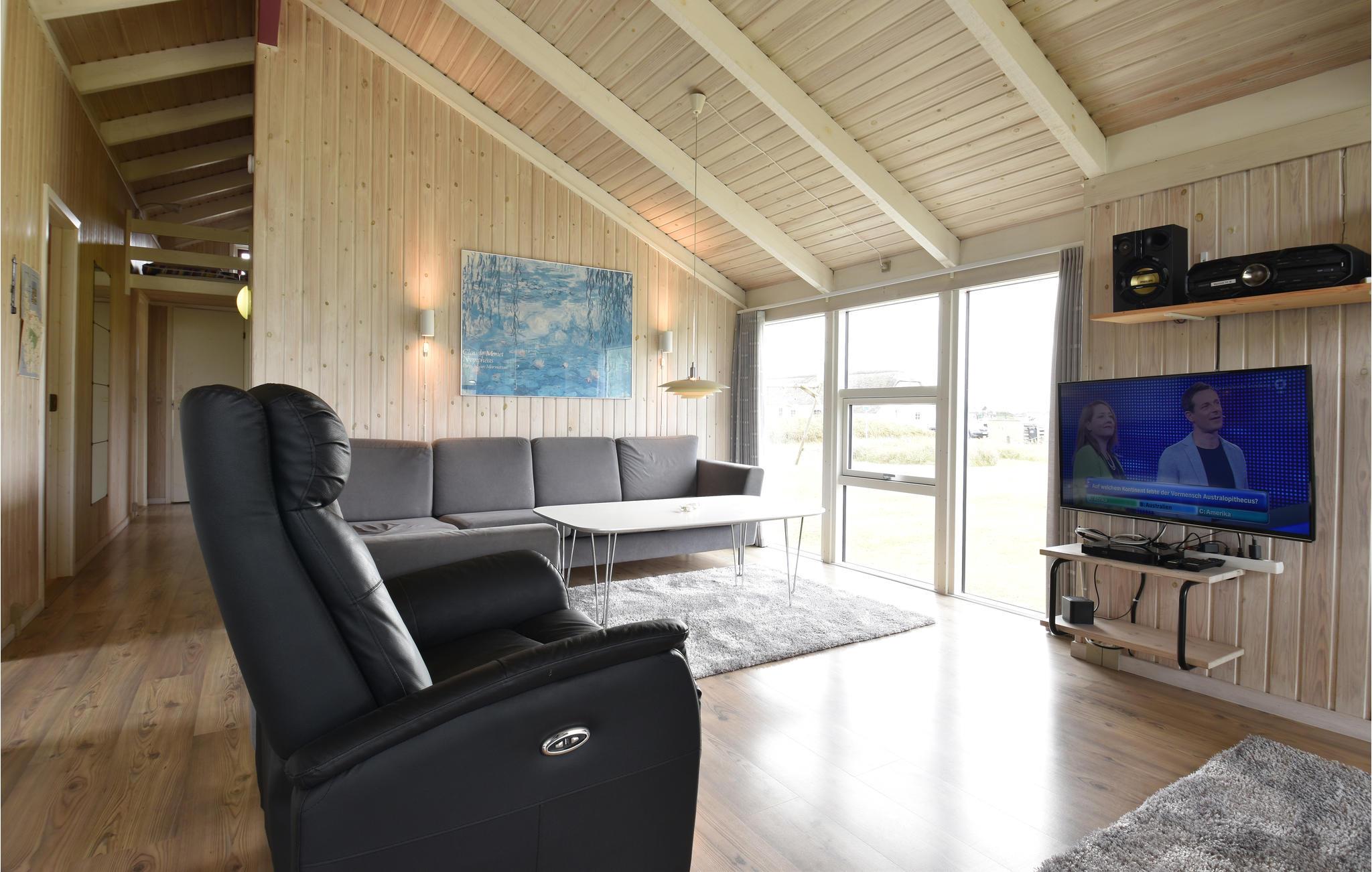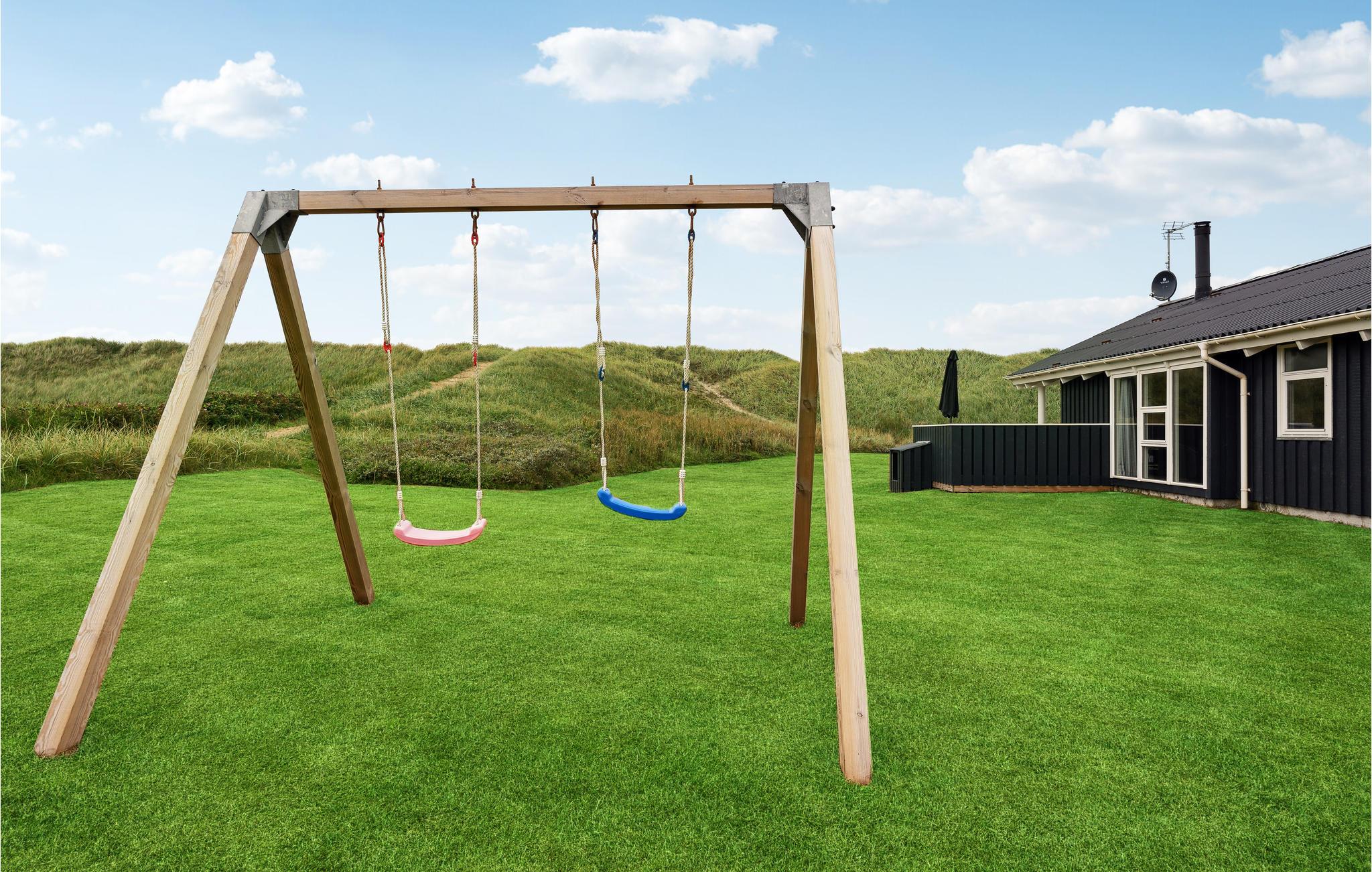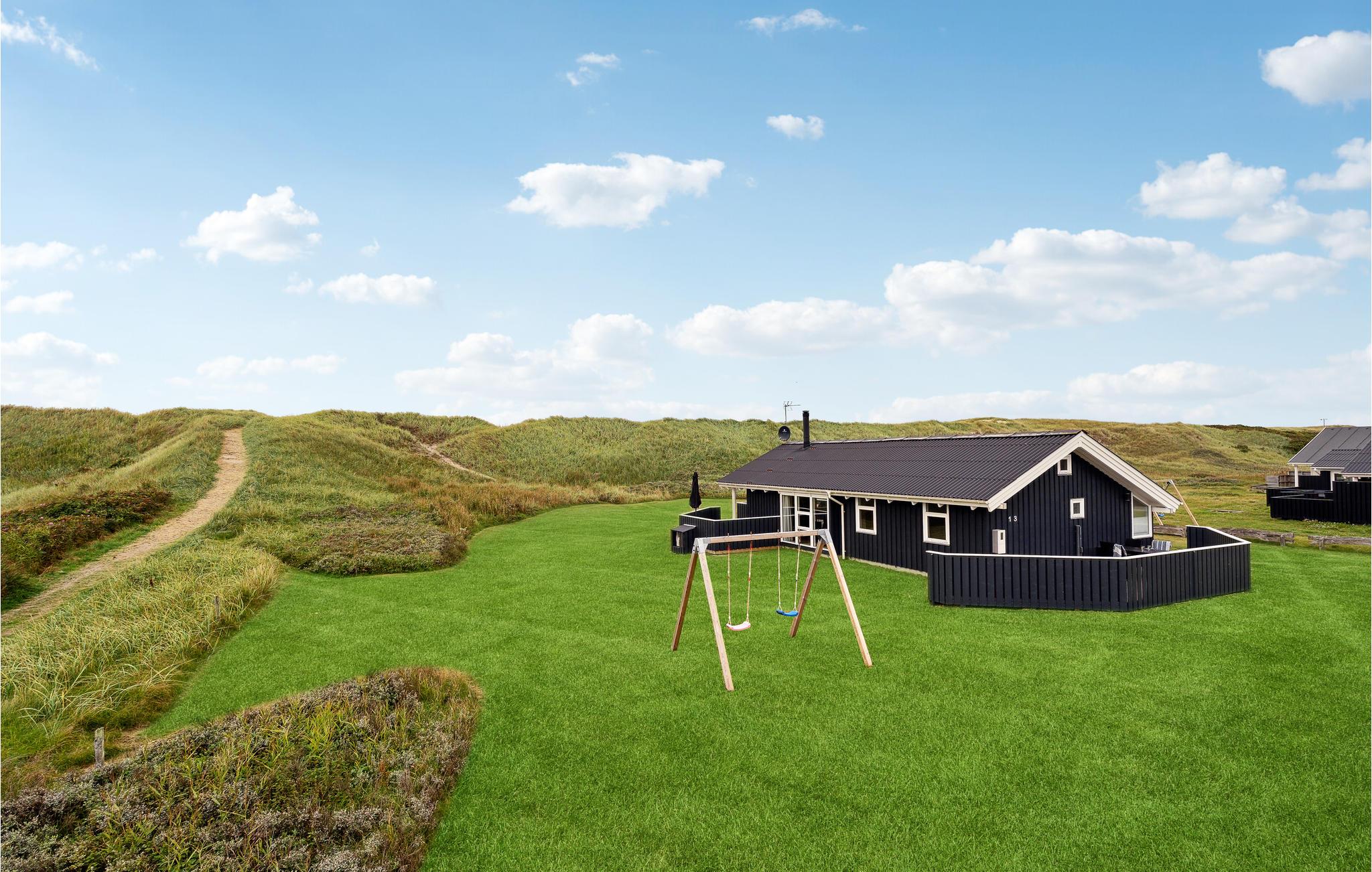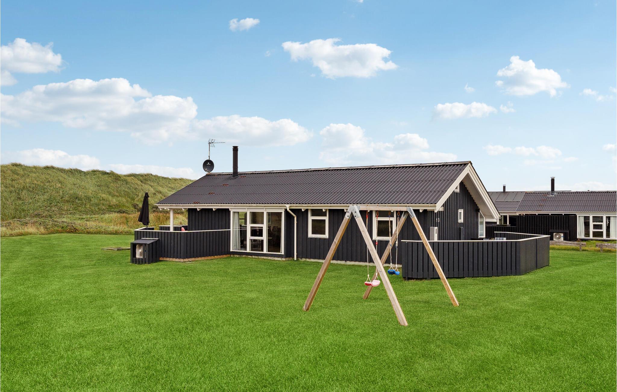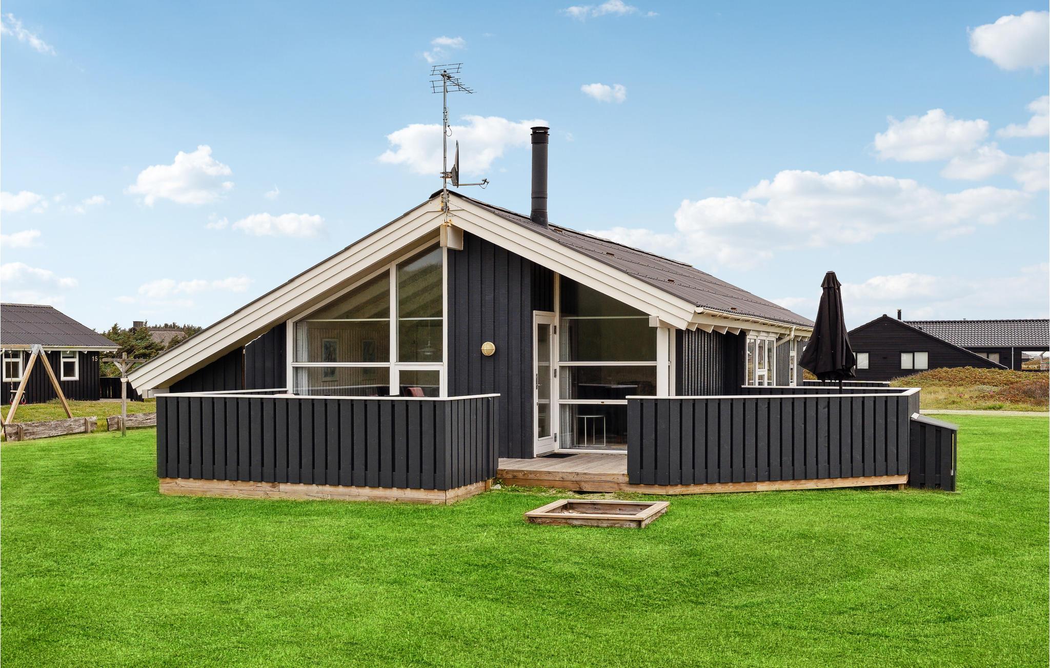 Her har man virkelig mulighed for at komme væk fra hverdagens stress og jag - og bare nyde ferien samt naturen. Huset er placeret på en kuperet klitgrund og har flere terrasser, så man kan nyde solen hele dagen. Huset er indrettet med 4 soveværelser, hvoraf de 2 er med dobbeltseng, det ene med 2 enkeltsenge, mens det sidste værelse har både 2 køjesenge med i alt 4 sovepladser - fra dette værelse er der en stige op til hemsen, hvor der er ydeligere 2 madrasser, som dog ikke er egnet til voksne. Huset har 2 badeværelser, hvoraf det ene er med bruser, og det andet med både bruser, spabad og sauna. Stuen ligger i åben forbindelse med spiseområdet og det lækre lyse køkken. Her er både brændeovn og varmepumpe som ekstra varmekilde. Så når I har været en gåtur nede ved det vindblæste Vesterhav, kan I nyde en tur i spaen og blive varmet godt igennem foran brændeovnen.