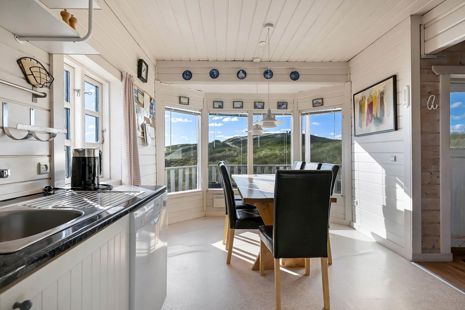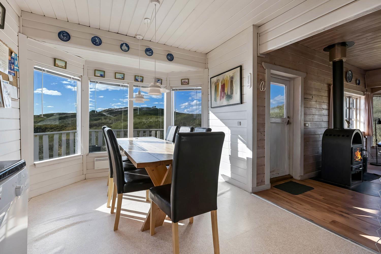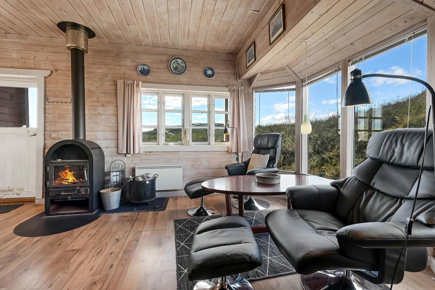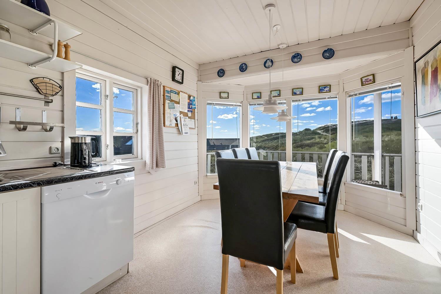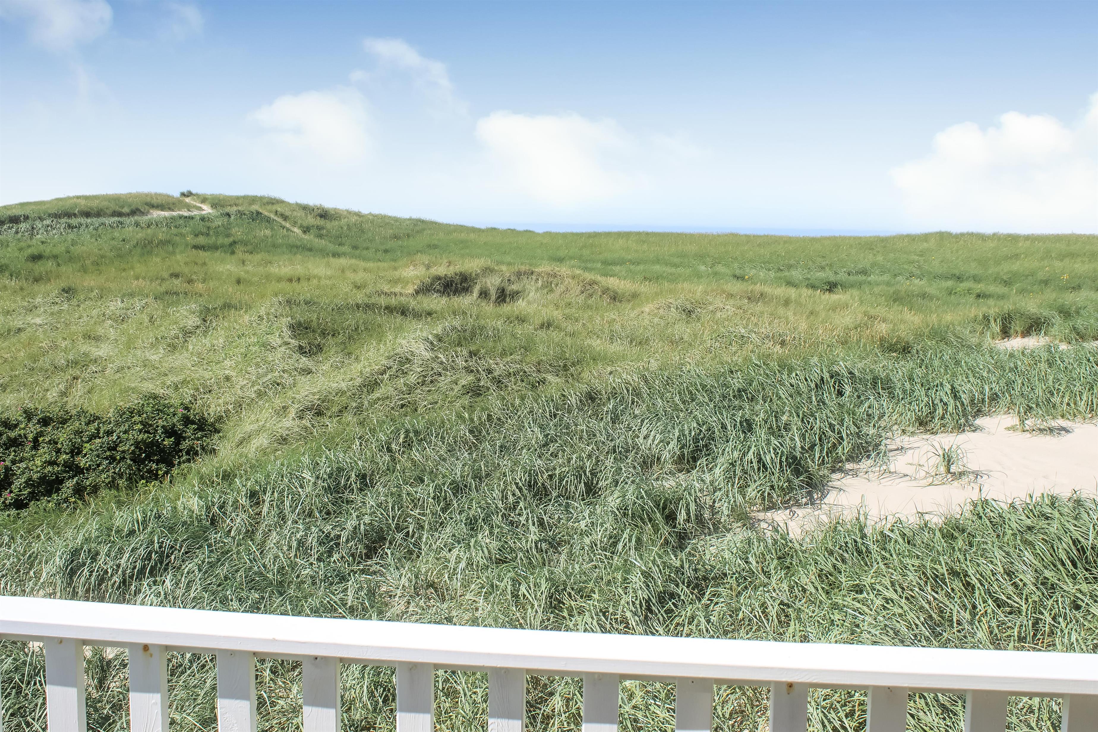 Fra 1. sal kan du nyde en vidunderlig udsigt over klitterne og området. Den sydvendte terrasse på 1. sal giver mulighed for at følge solnedgangen over havet og nyde stille aftener i lækre omgivelser. Haven er udstyret med havemøbler og grill, perfekt til udendørs hygge.