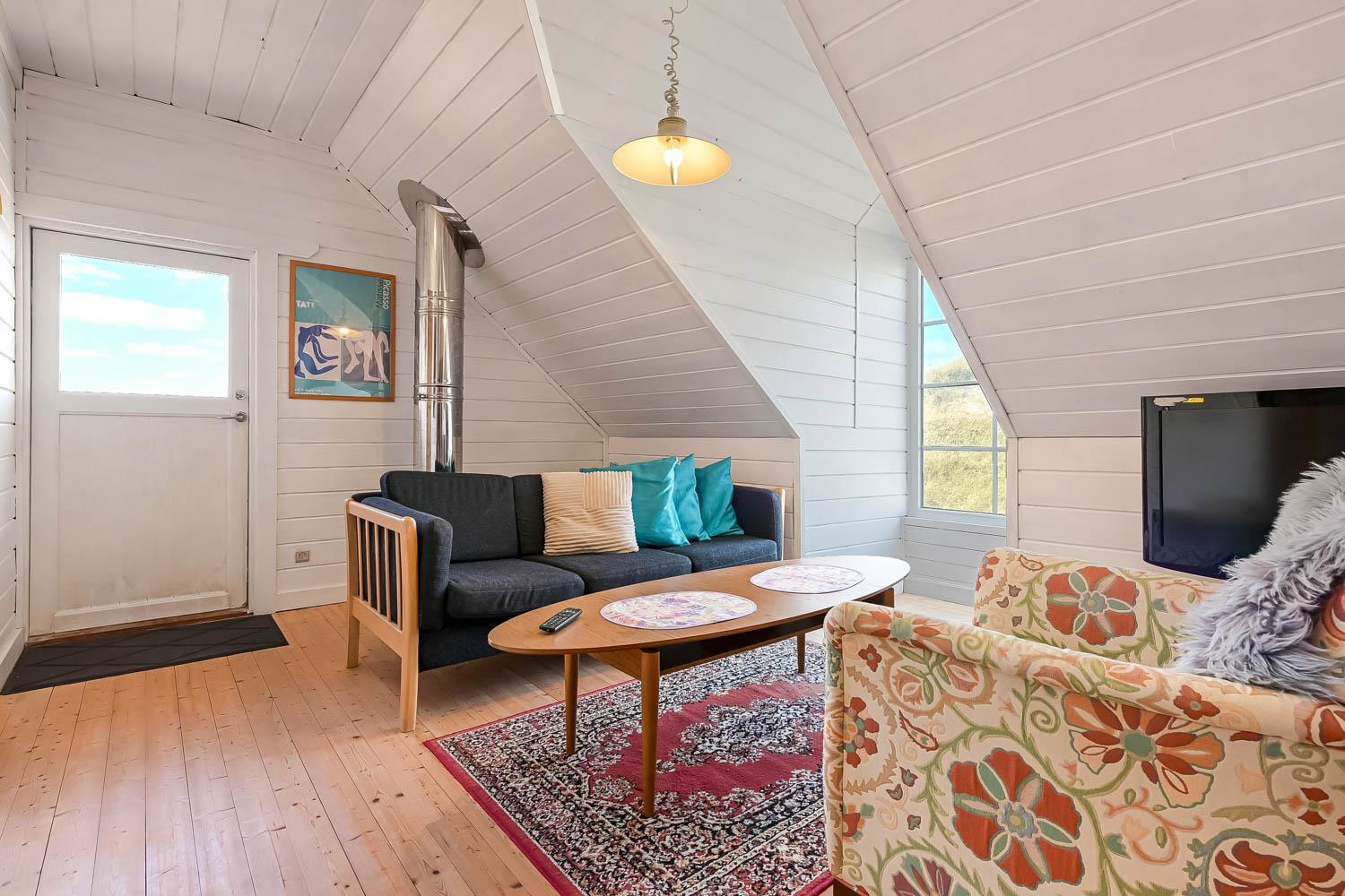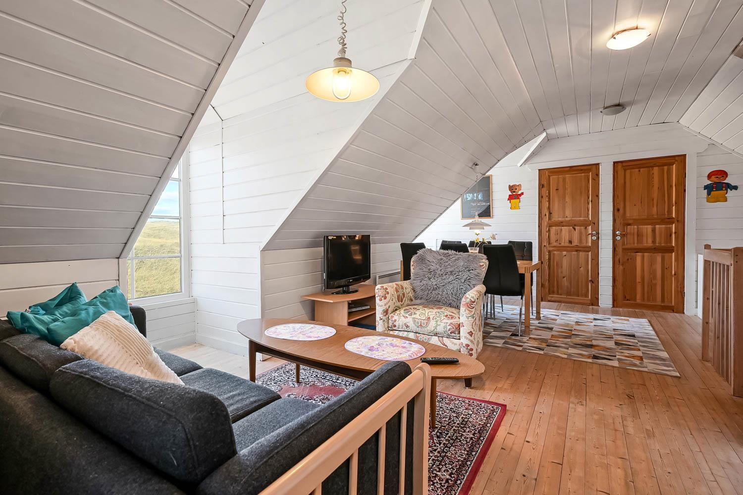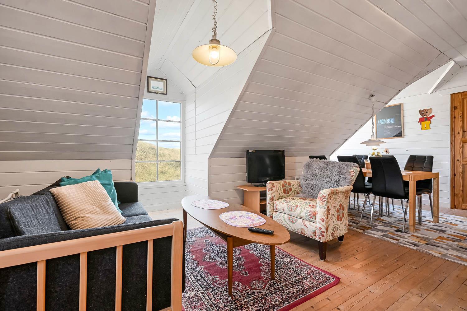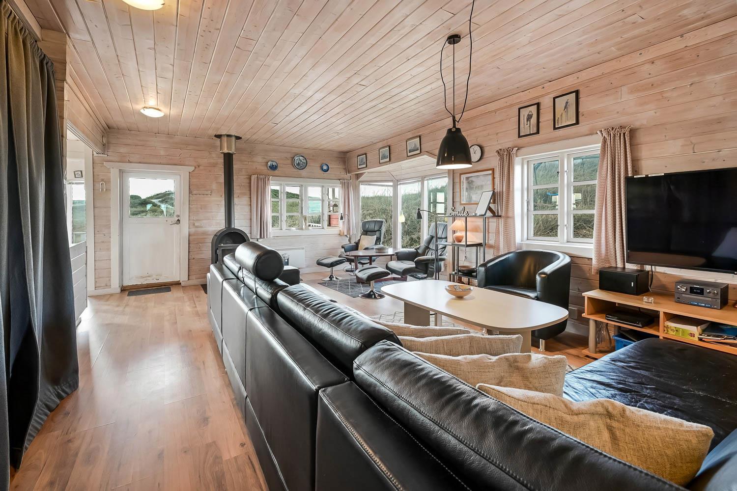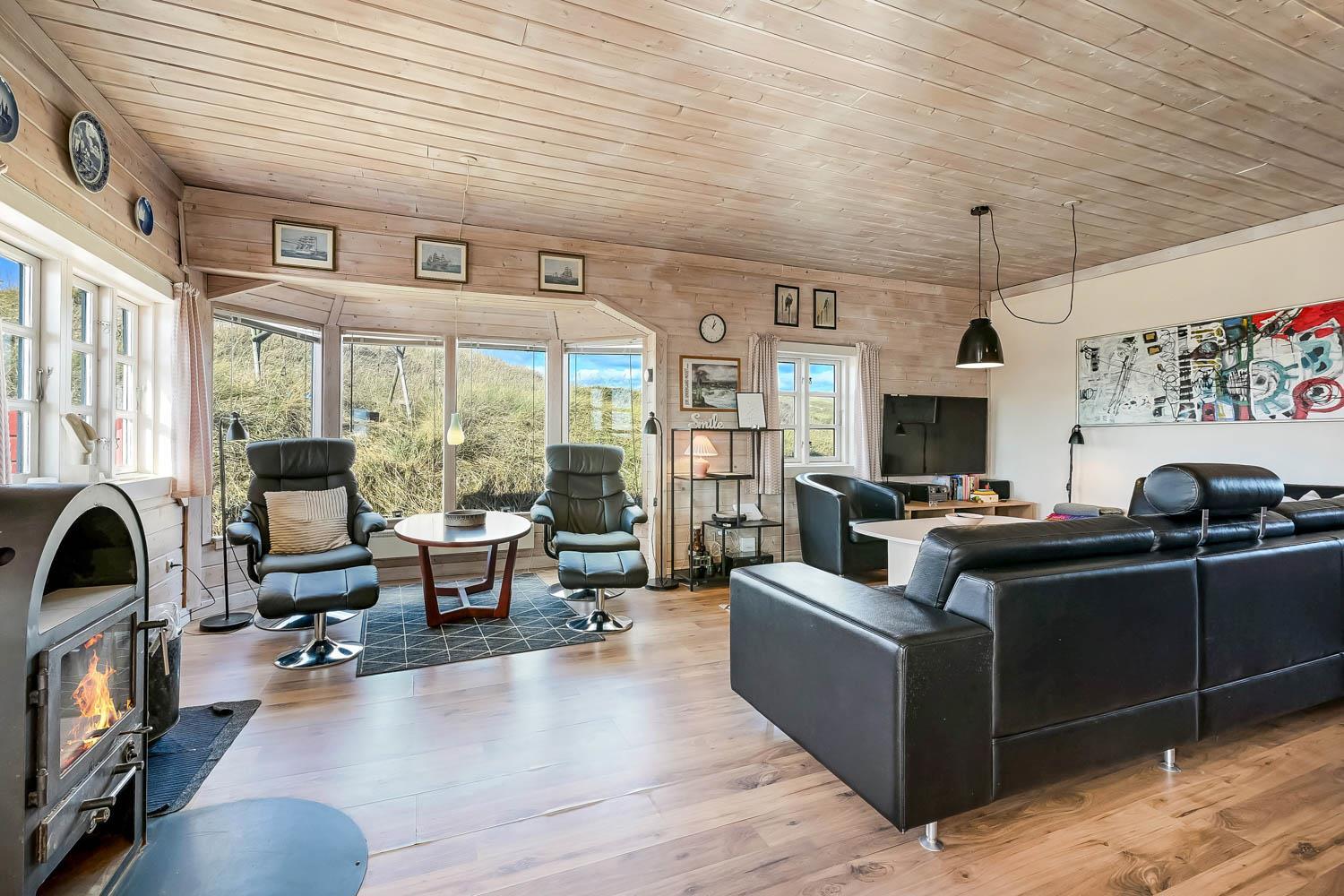 Fra 1. sal kan du nyde en vidunderlig udsigt over klitterne og området. Den sydvendte terrasse på 1. sal giver mulighed for at følge solnedgangen over havet og nyde stille aftener i lækre omgivelser. Haven er udstyret med havemøbler og grill, perfekt til udendørs hygge.