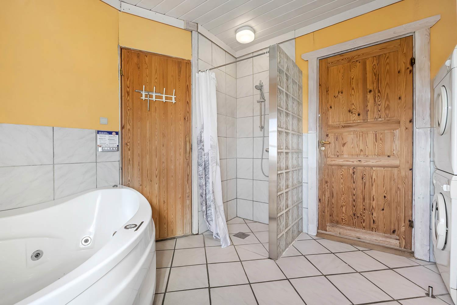 Der er fire komfortable soveværelser: ét med dobbeltseng og tre med enkeltsenge, ideelt til både børn og voksne. Badeværelset byder på gulvvarme, bruser, spa til 2 personer og sauna, mens et ekstra gæstetoilet giver ekstra komfort. Huset har også vaskemaskine, tørretumbler og klimaanlæg.
