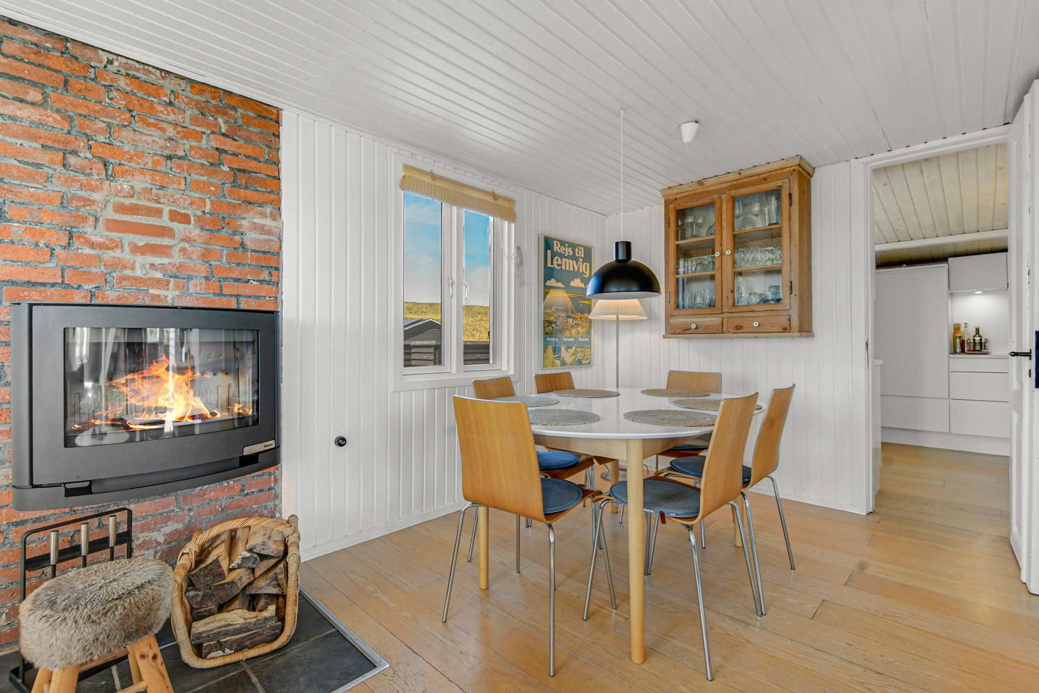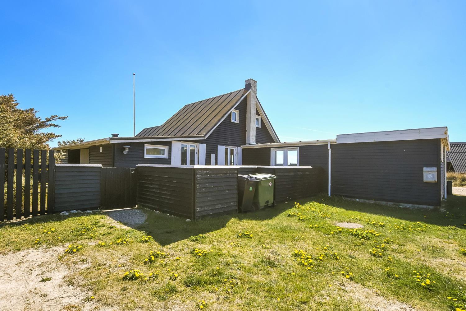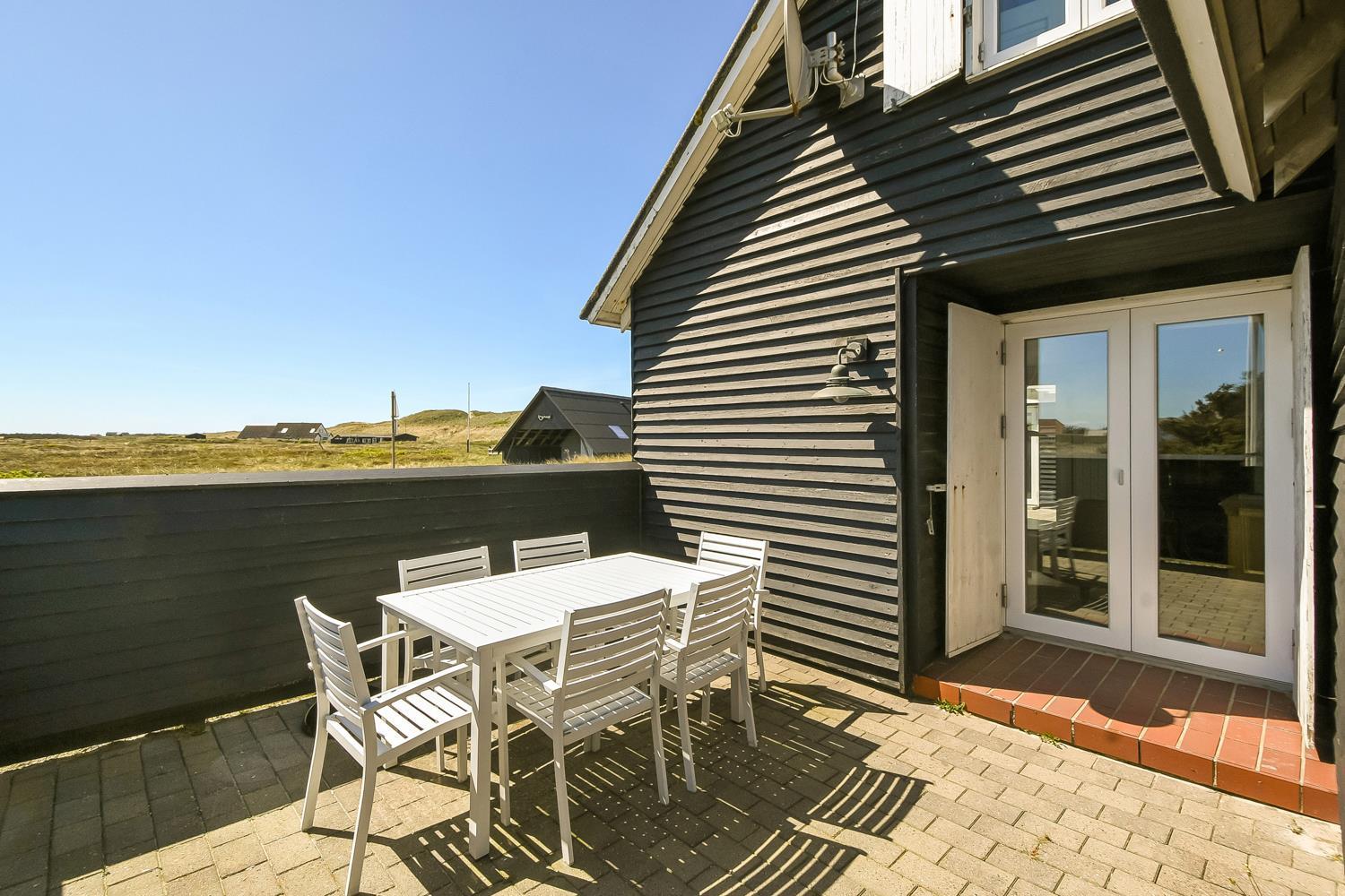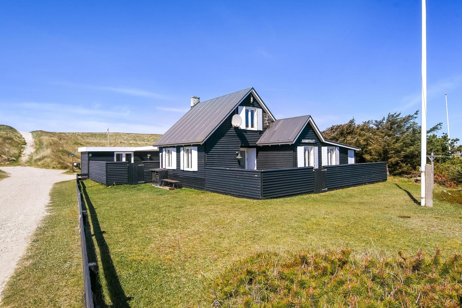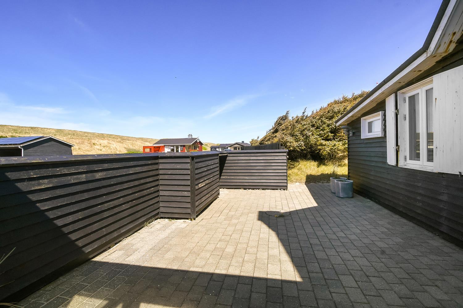 Huset ligger meget tæt på Vesterhavet - kun 100 meter fra stranden på en 1042 m2 klitgrund. Der er flere gode terrasser, både åbne og en delvis overdækket og indhegnet med havemøbler, solvogne og gasgrill. Husets beliggenhed i gåafstand til stranden er helt unikt. Vesterhavet er hver dag et besøg værd. Her er der flere muligheder for at udfolde sig, enten bade, samle rav, fiske eller vandre en tur langs vandkanten. Ønsker man noget andet i ferien eller en afveksling så besøg den gamle handelsby Lemvig som har flere specialforretninger og en dejlig havnepromenade med en legeplads til børnene. Huset er beliggende i nærheden af Vejlby Klit Torv hvor der er en købmandsforretning som har sæsonåbnet samt en lille Cafe som ligeledes har åbent i sæsonen. Et rigtig hyggeligt feriehus med en fantastisk beliggenhed.